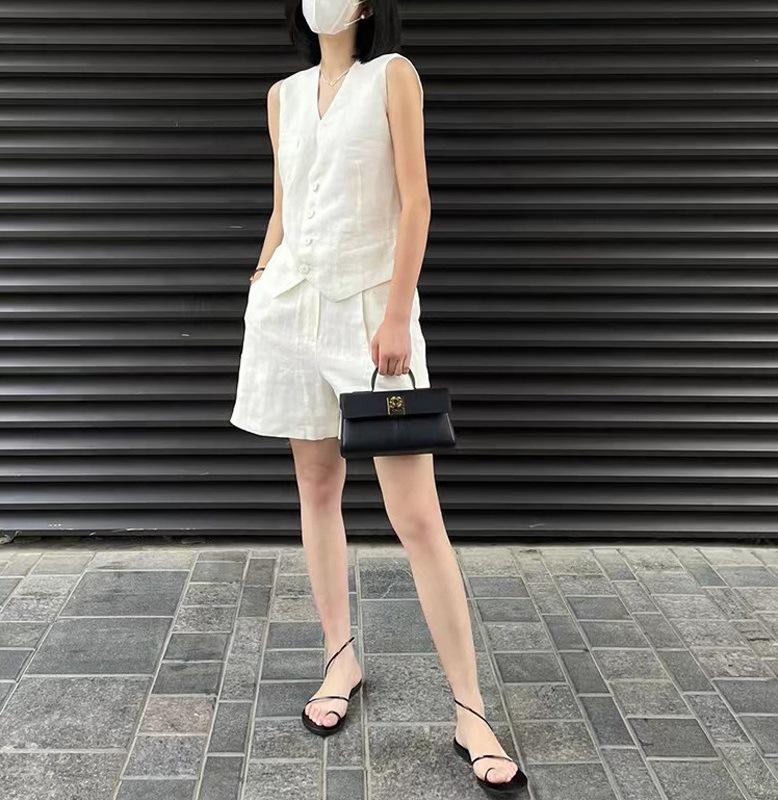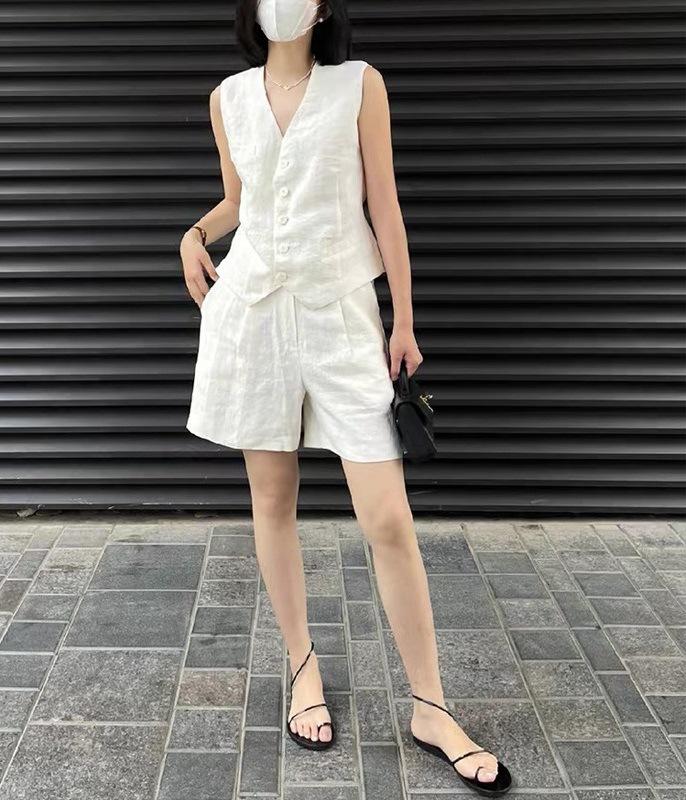 Elegante traje de lino y algodón de moda de verano nuevo de alta gama estilo occidental chaleco ajustado top pantalones cortos casuales conjunto de dos piezas