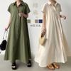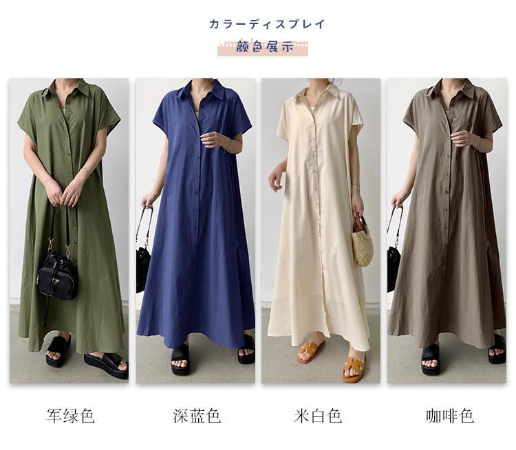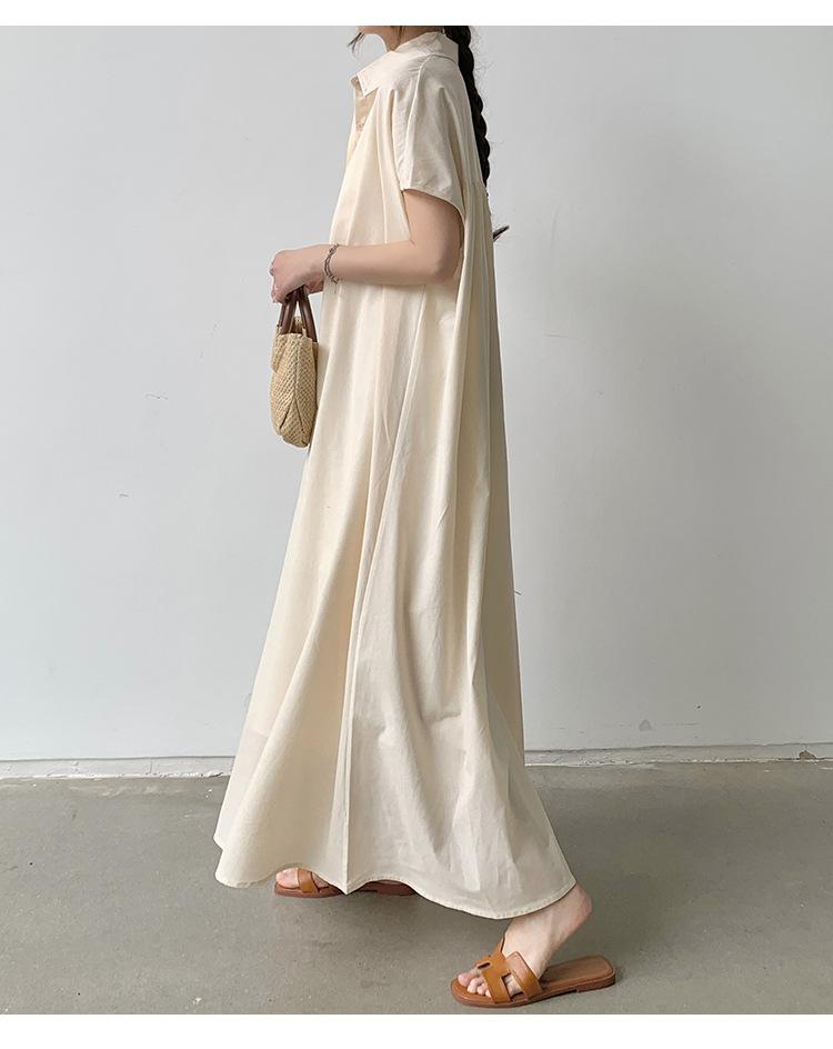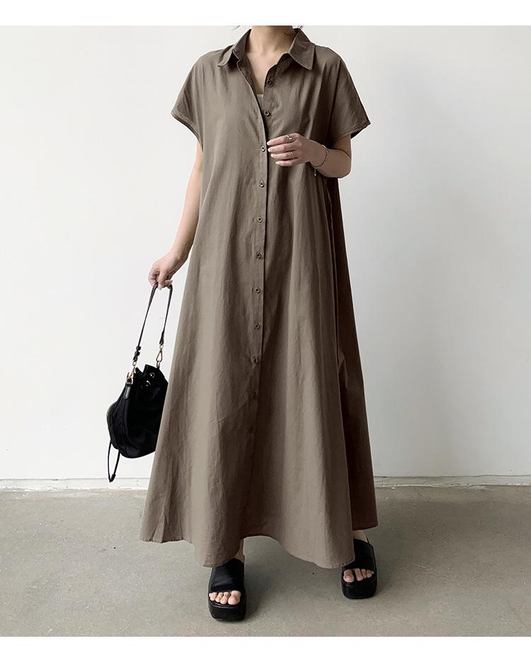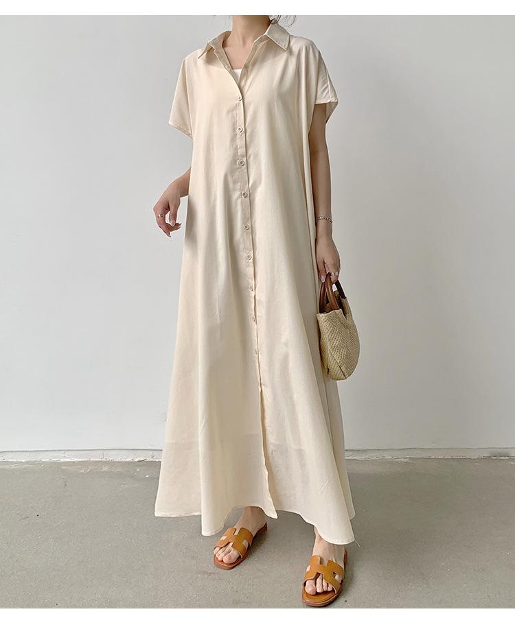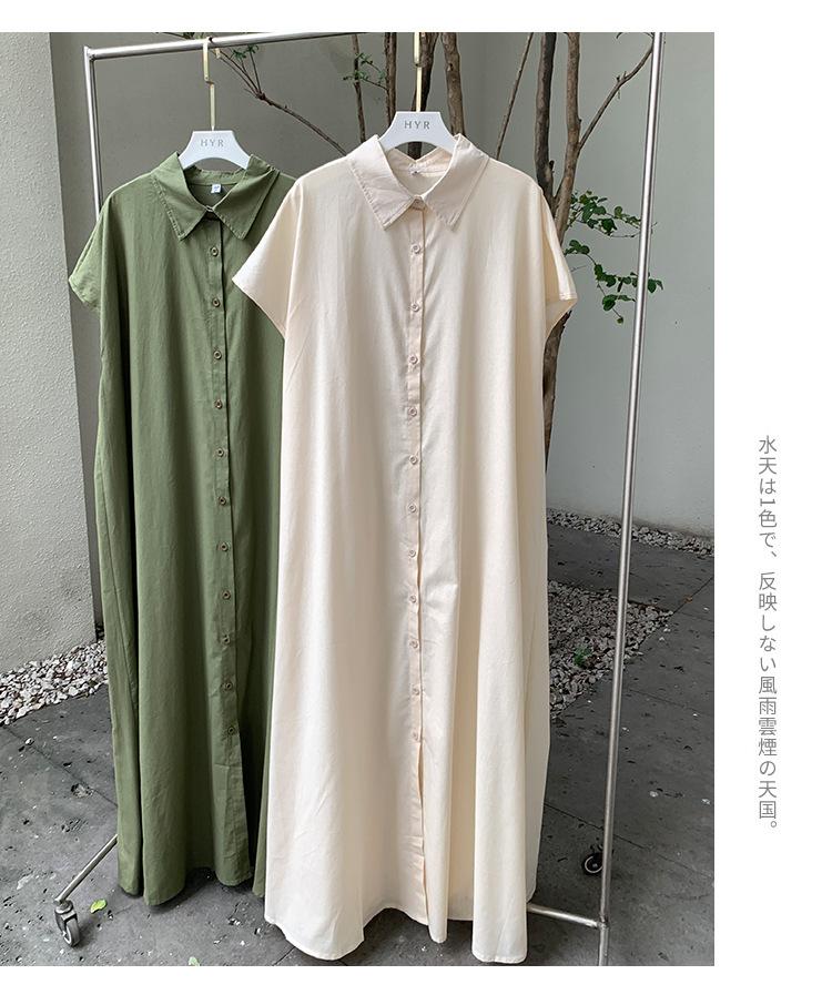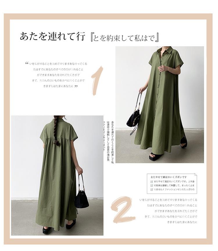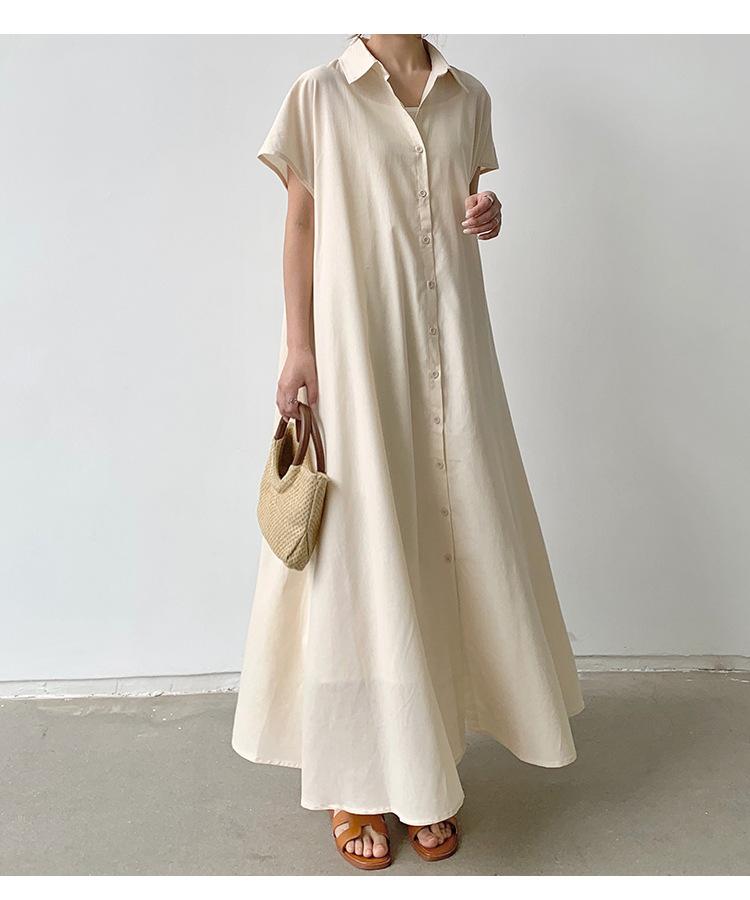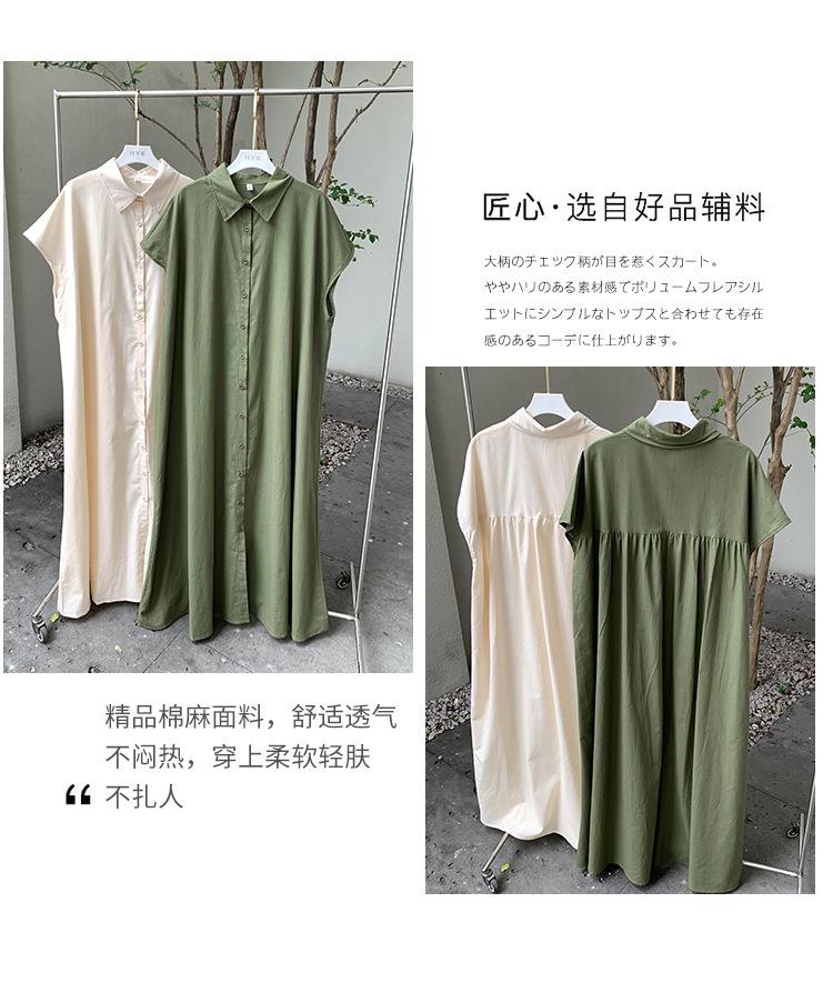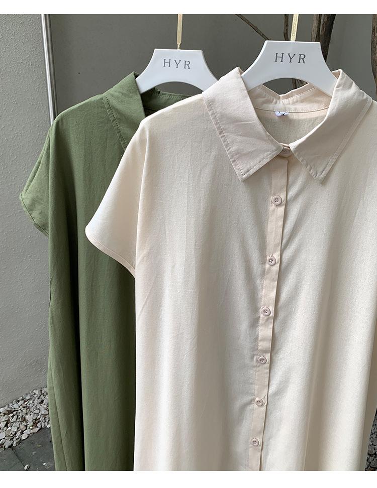 Lotte Japonés Pulóver Coreano Manga Corta Algodón Lino Vestido de Mujer Suelto Solapa Casual Camisero