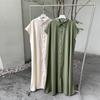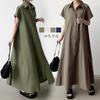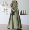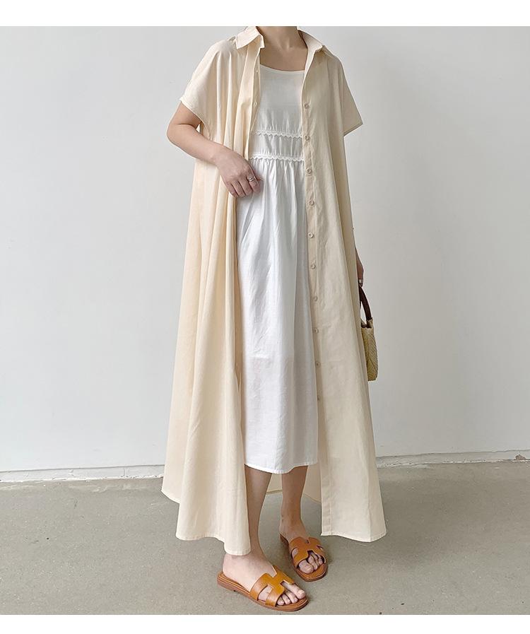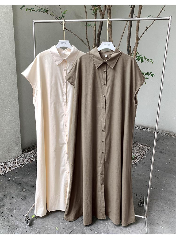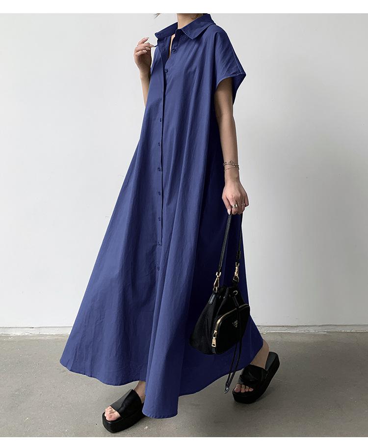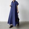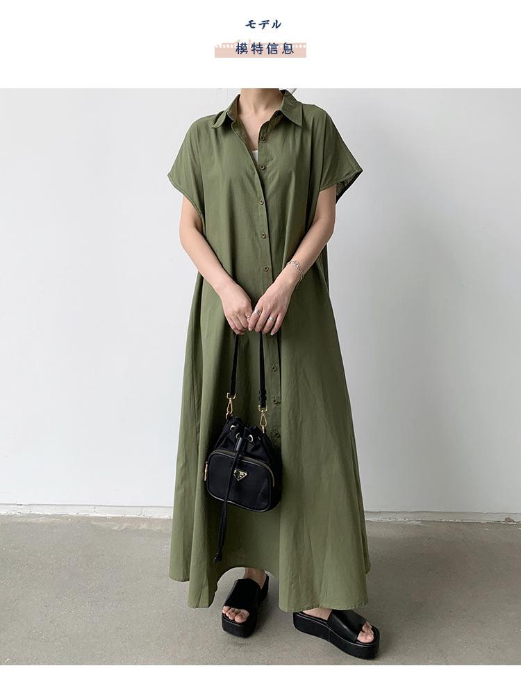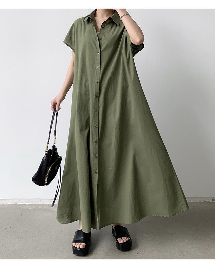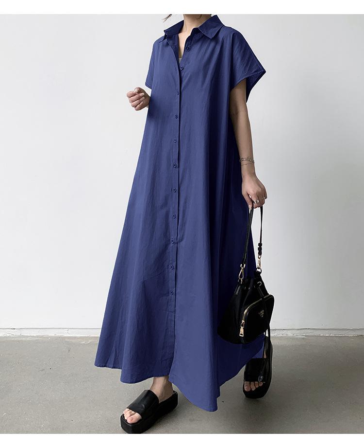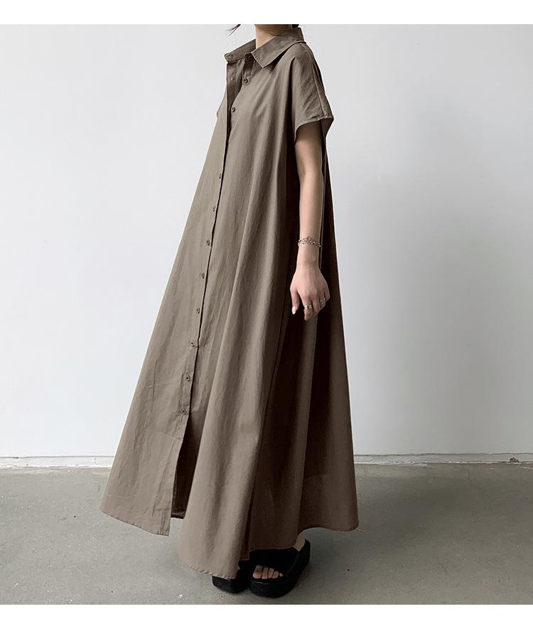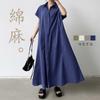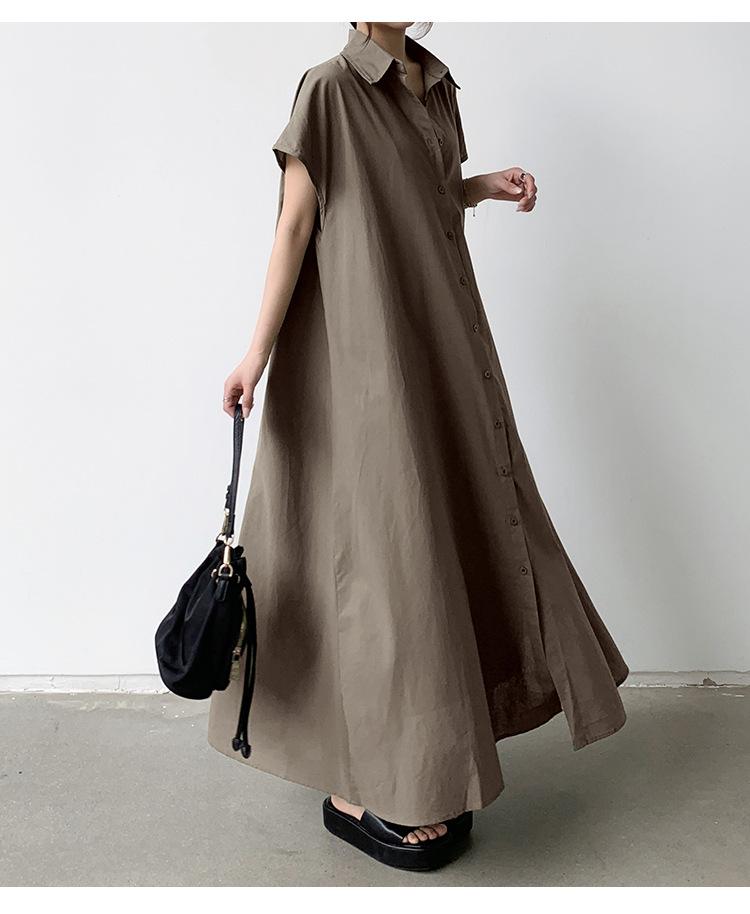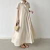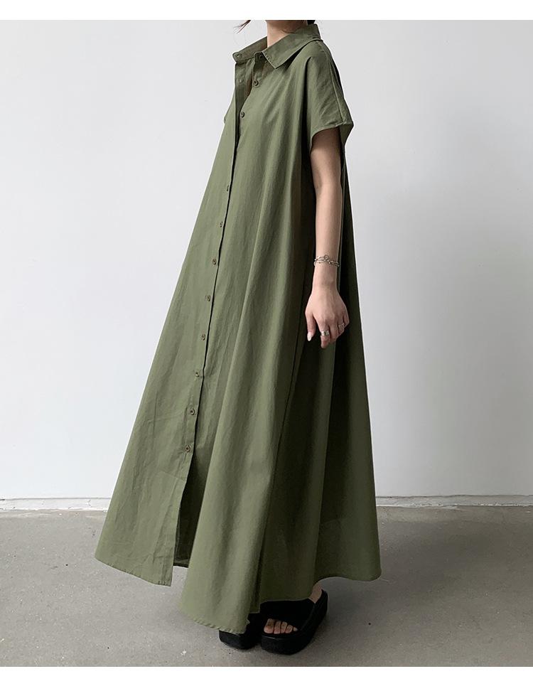 Lotte Japonés Pulóver Coreano Manga Corta Algodón Lino Vestido de Mujer Suelto Solapa Casual Camisero