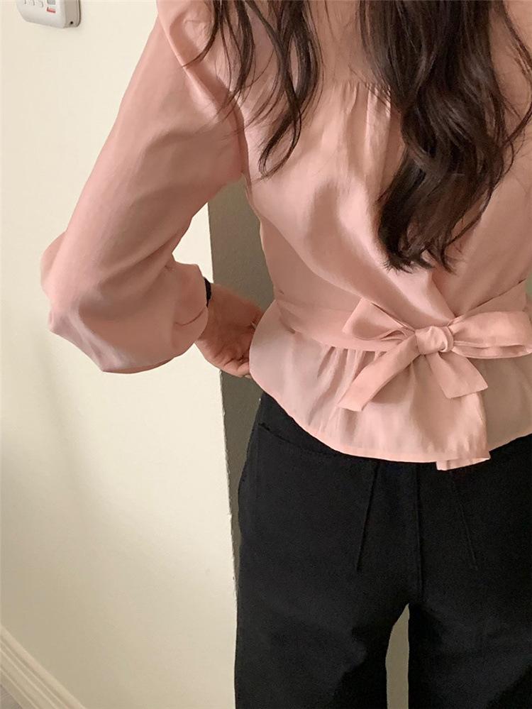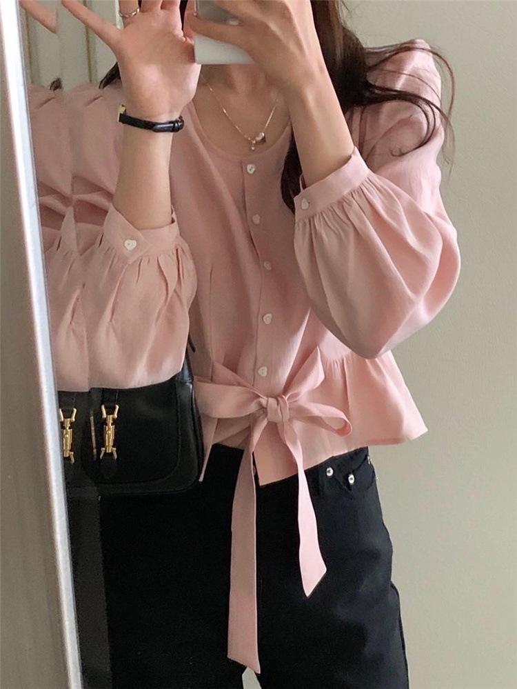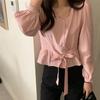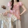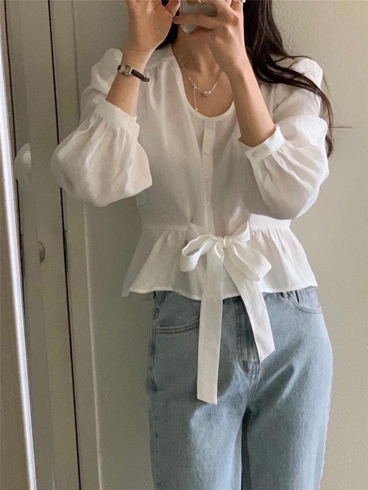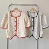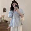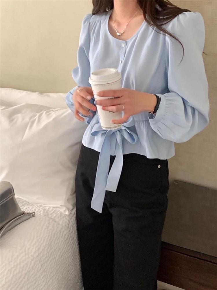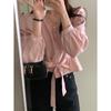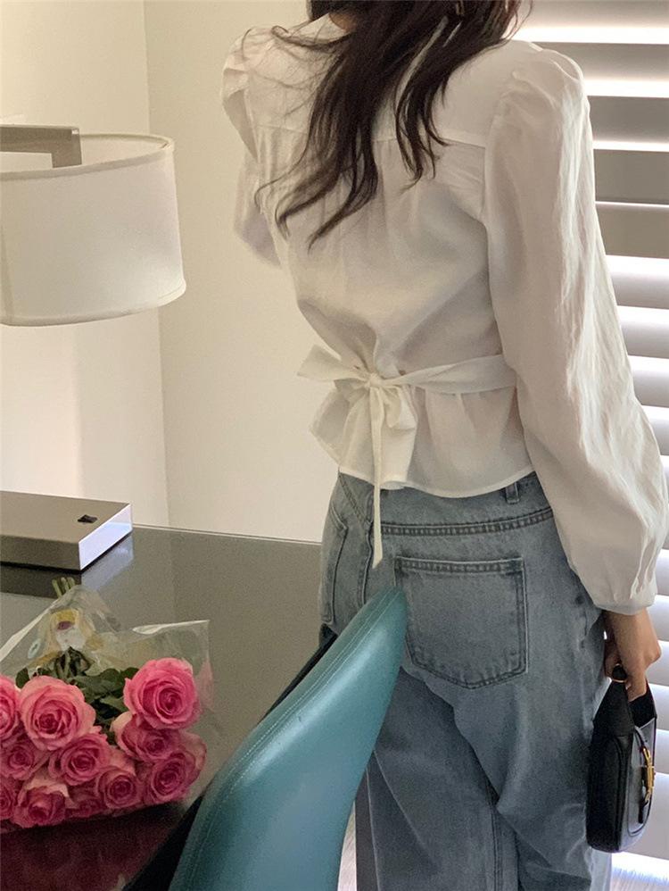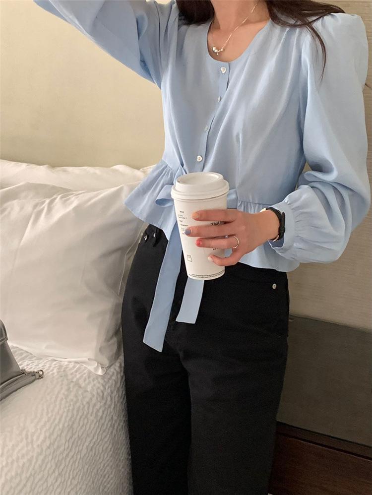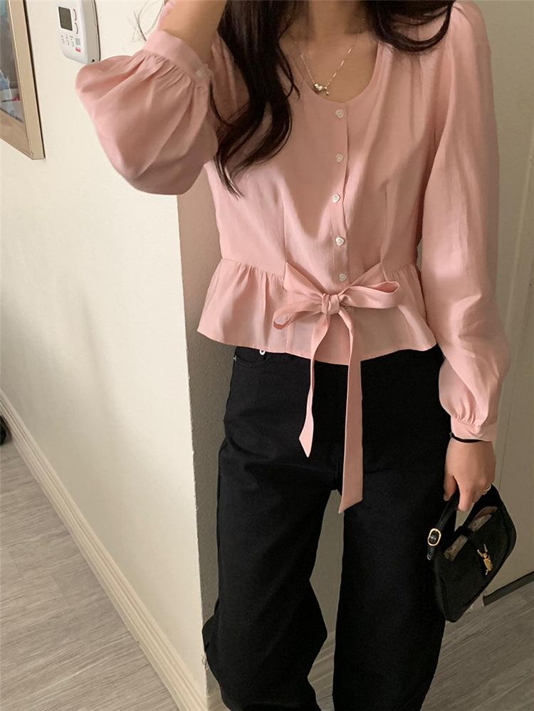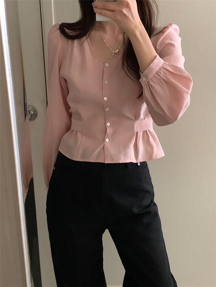 Camisa corta con cuello redondo y cintura alta, nueva primavera 2023, con mangas abullonadas y lazo, fresca y dulce, combinable con todo.