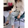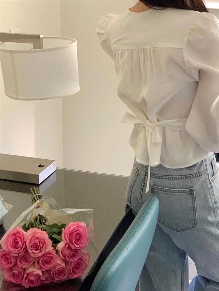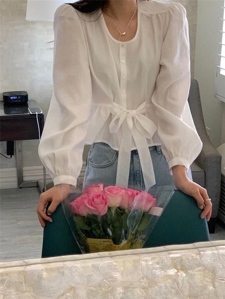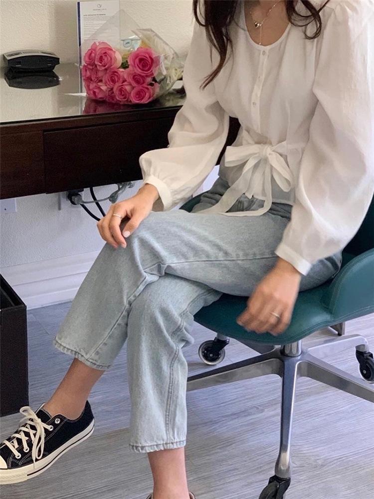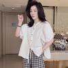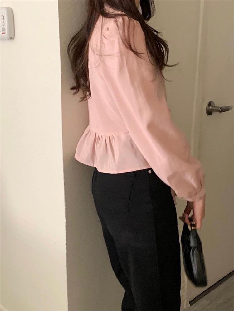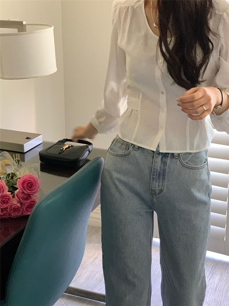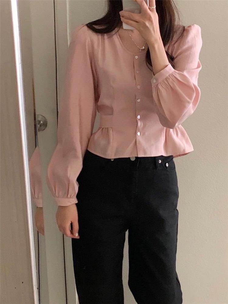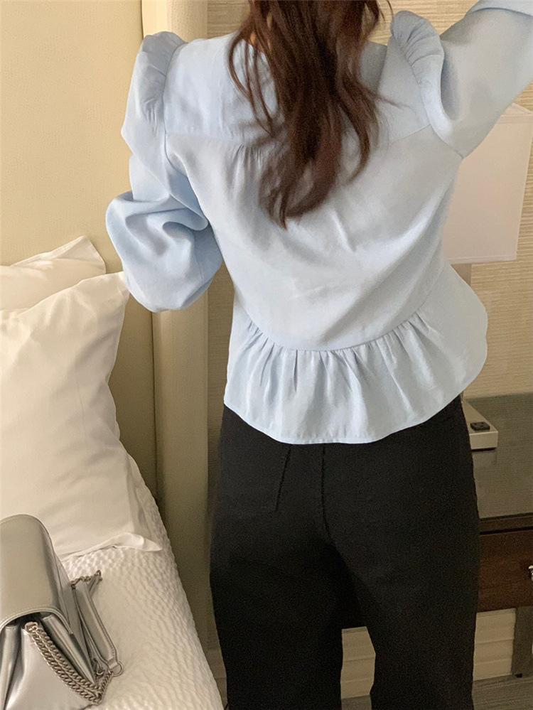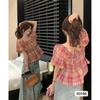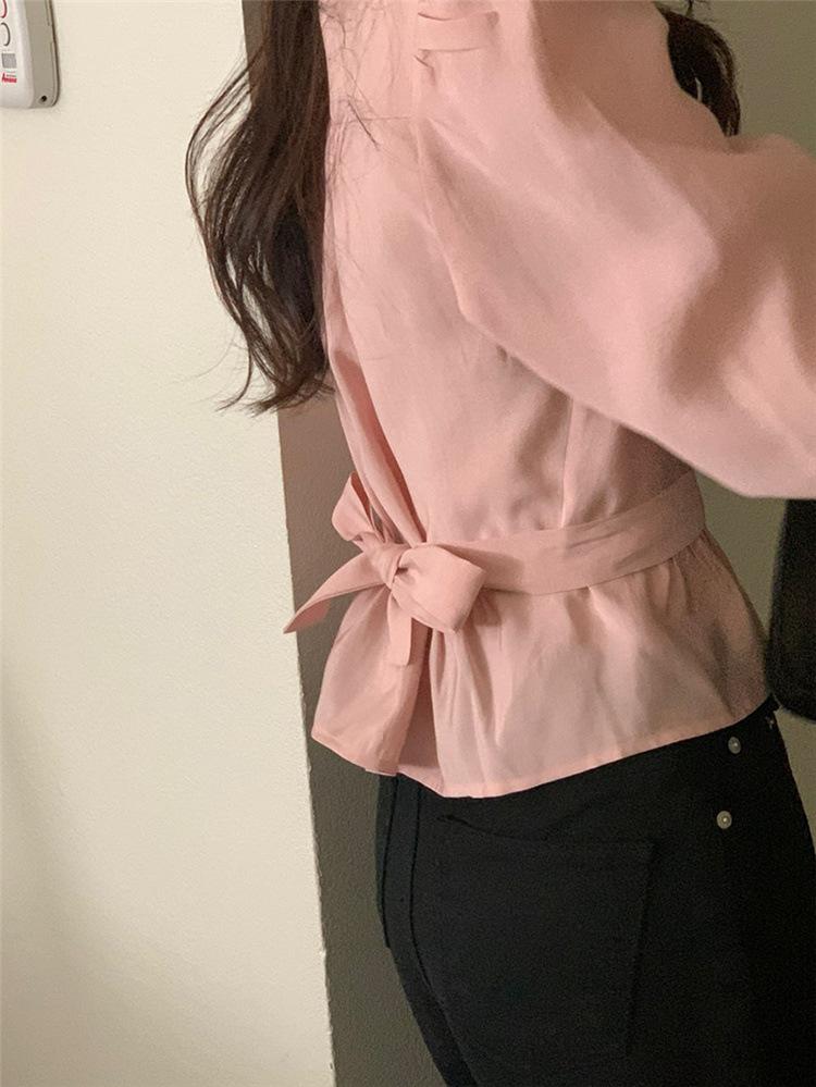 Camisa corta con cuello redondo y cintura alta, nueva primavera 2023, con mangas abullonadas y lazo, fresca y dulce, combinable con todo.