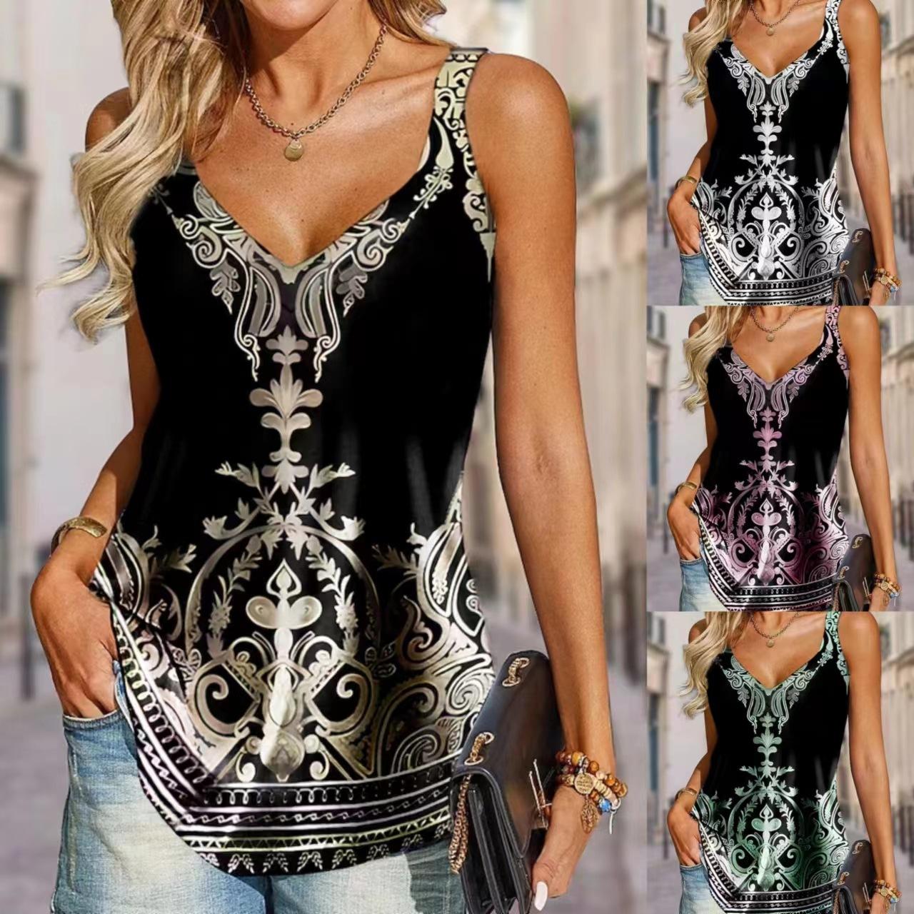 Ropa de mujer europea y americana 2024 comercio exterior transfronterizo Amazon estación independiente verano nuevo cuello en V temperamento sexy chaleco camiseta