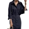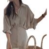 Vestido retro francés de algodón y lino con falda larga por encima de la rodilla con camisa holgada y adelgazante con cordones para mujer, primavera y verano 2023