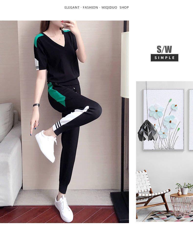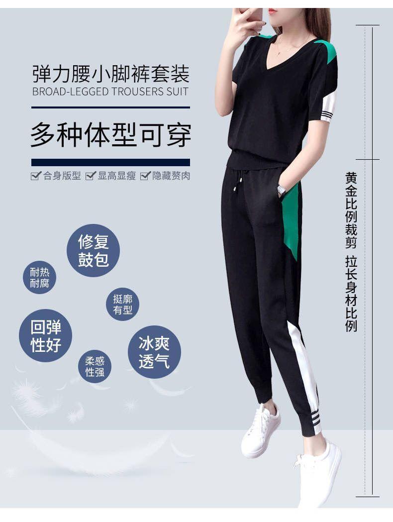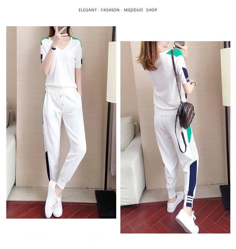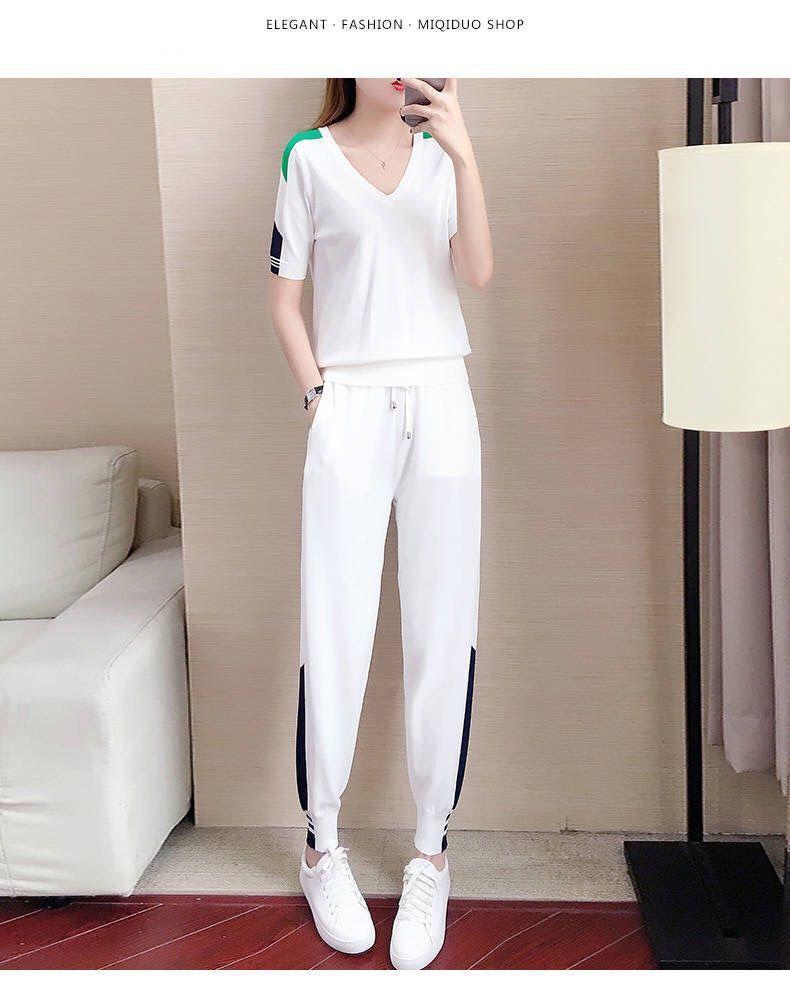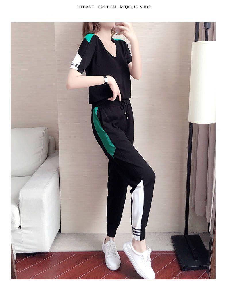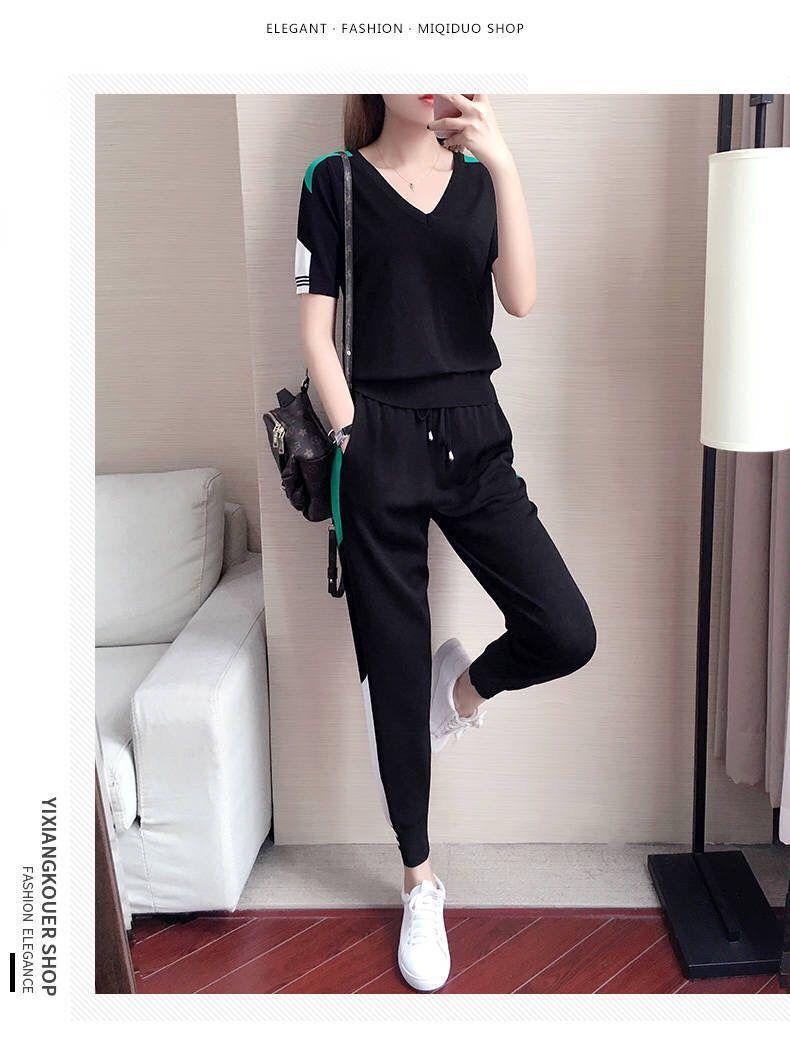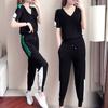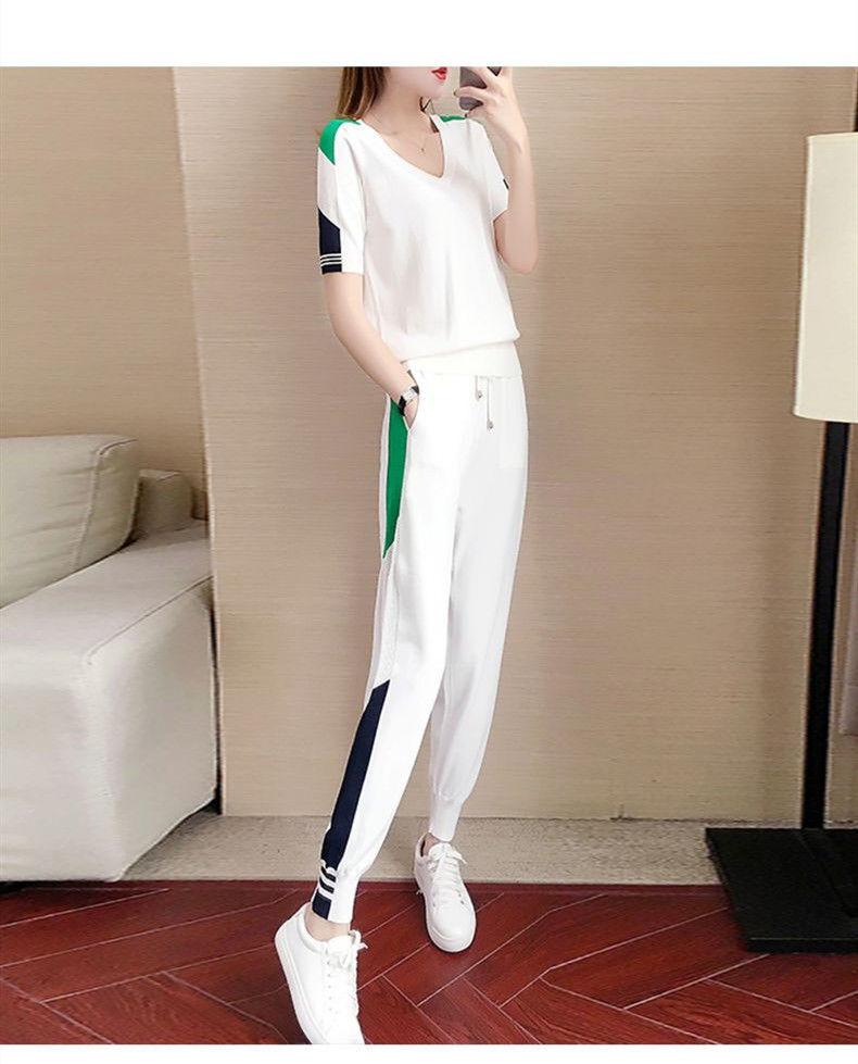 Traje Deportivo de Verano para Mujer Transfronterizo 2025 Popular Nuevo Camiseta de Manga Corta Pantalones Harem Conjunto de Dos Piezas a la Moda