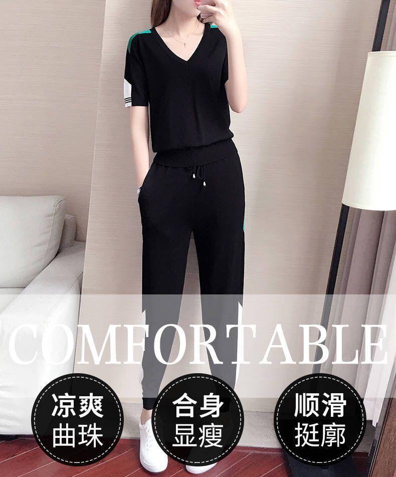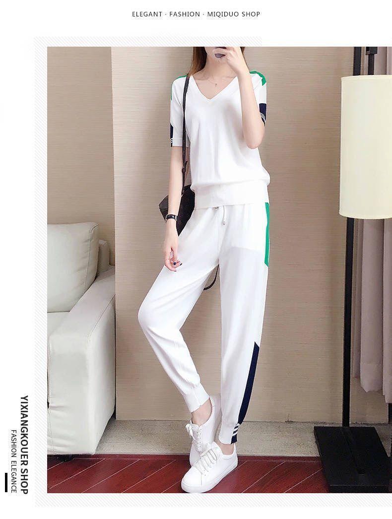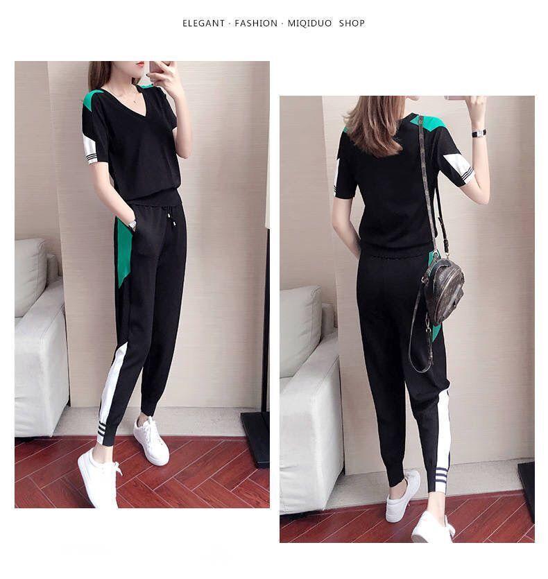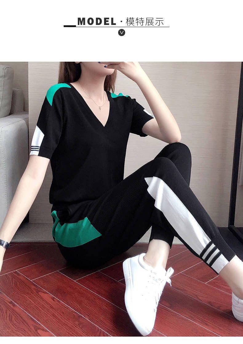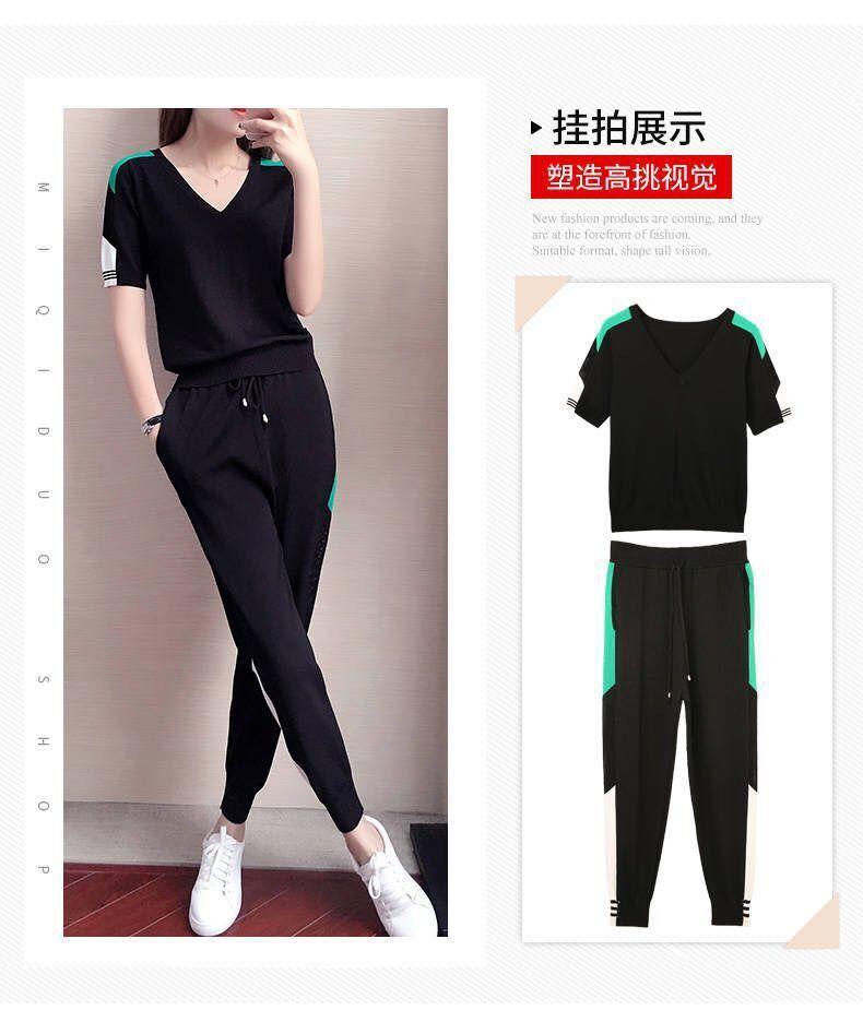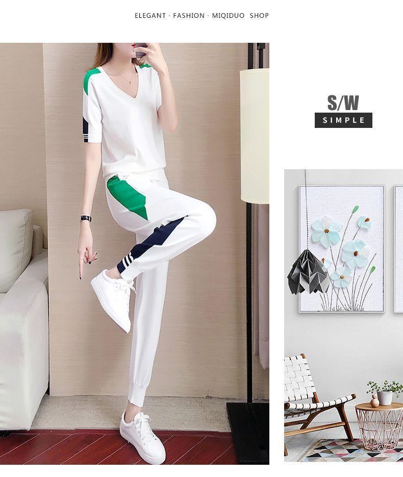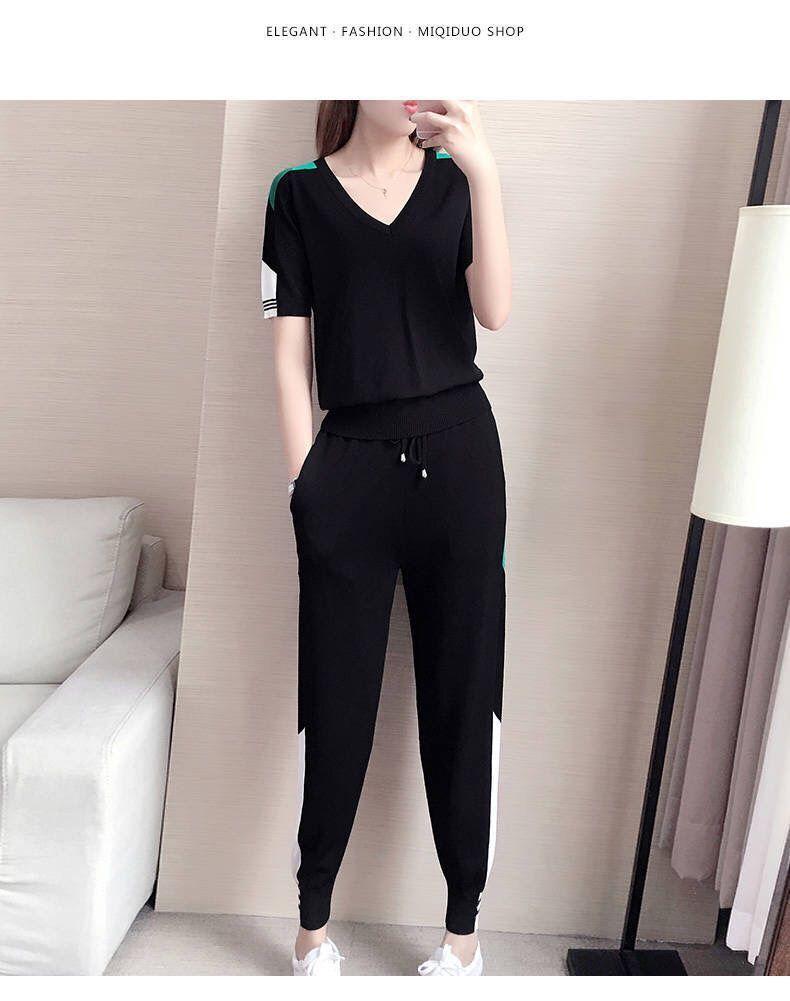 Traje Deportivo de Verano para Mujer Transfronterizo 2025 Popular Nuevo Camiseta de Manga Corta Pantalones Harem Conjunto de Dos Piezas a la Moda