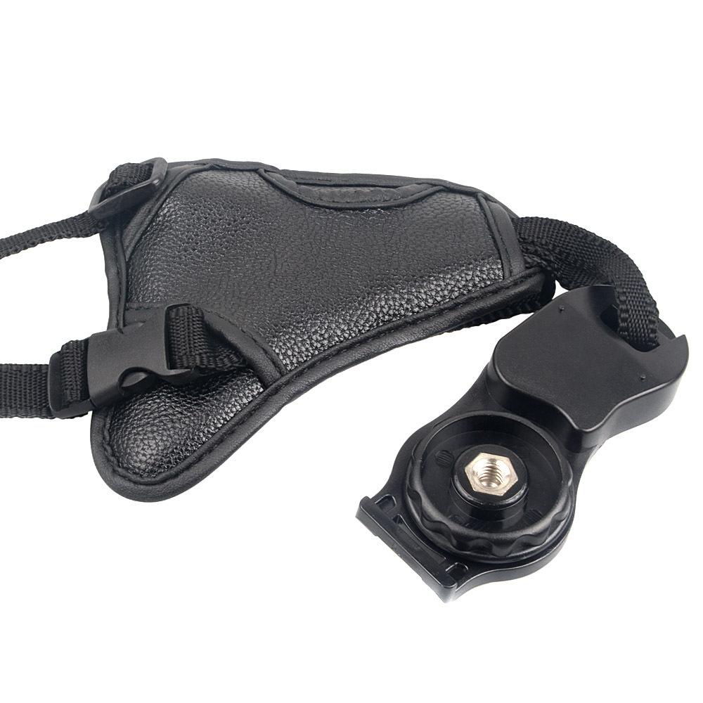 La correa de muñeca es ideal para cámaras réflex profesionales. Además, incluye un puerto de rosca que no afecta la fijación de la cámara al trípode.