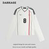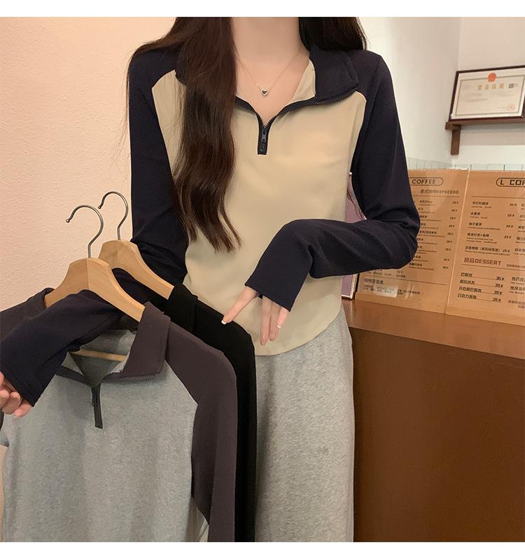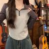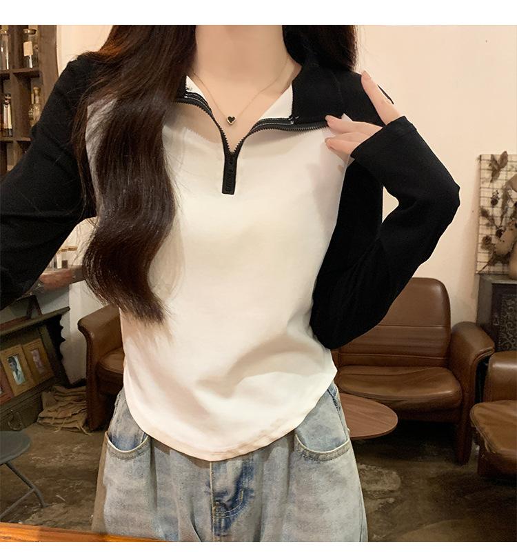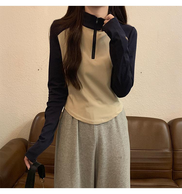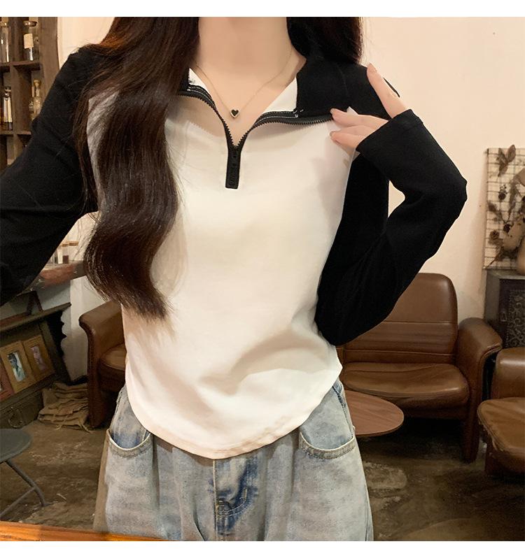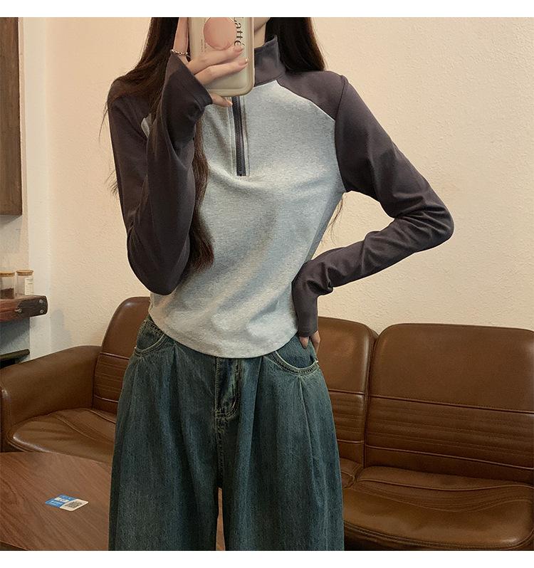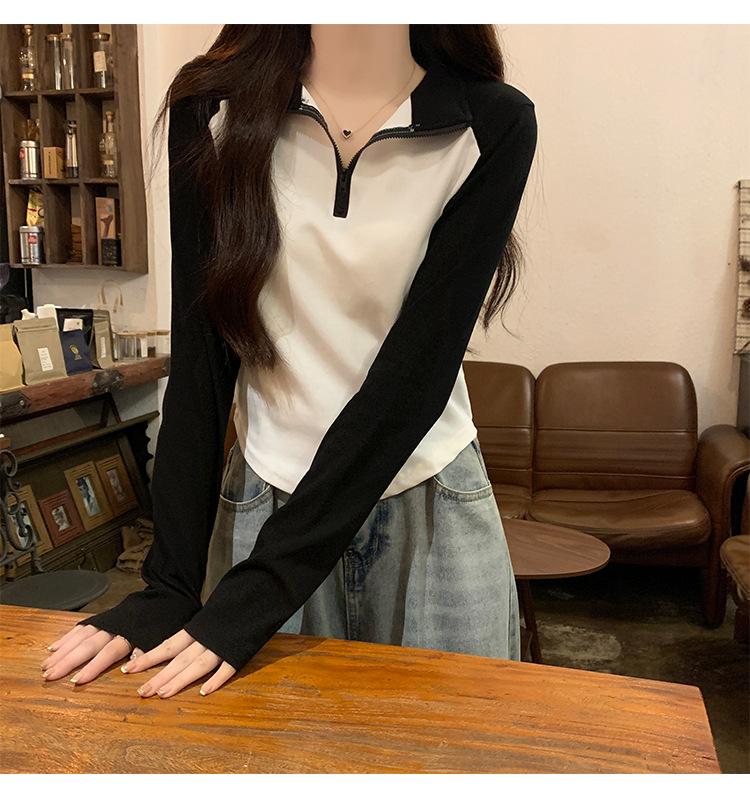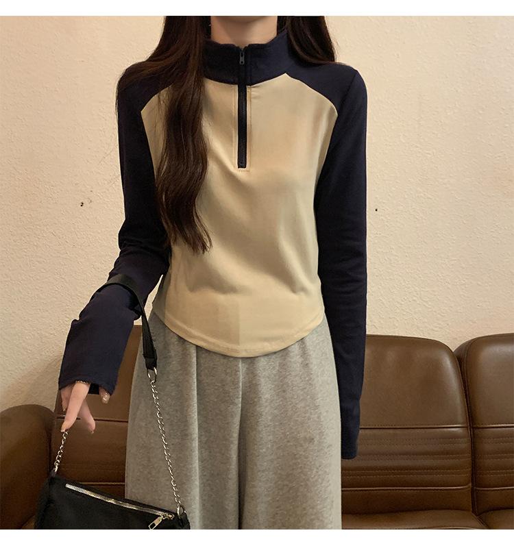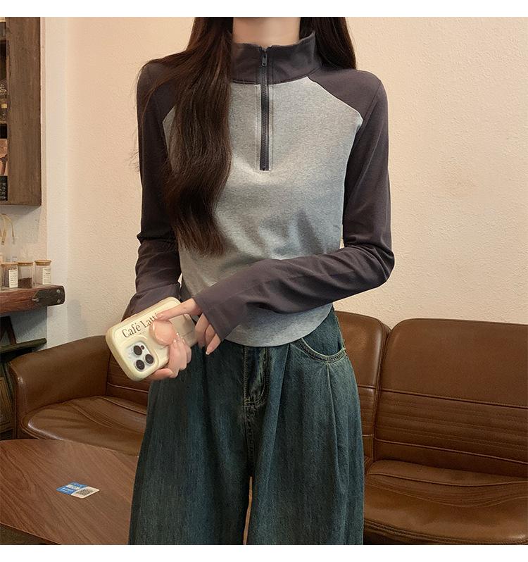 Top retro de manga raglán estilo americano con costuras de color contrastante para mujer 2023 nuevo ajuste ceñido versátil camiseta corta estampada de manga larga