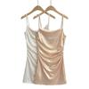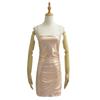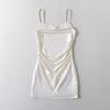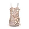 Vestido de tirantes de metal brillante para mujer, novedad de verano 2024, falda plisada con cuello oscilante sexy para chica sexy