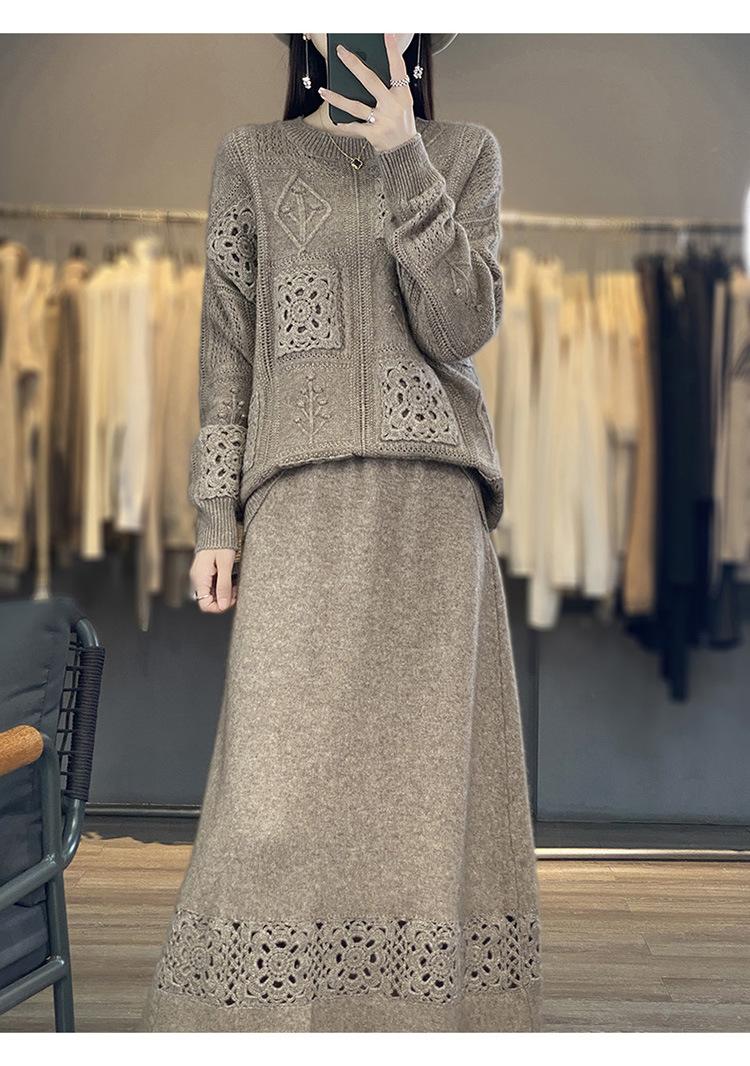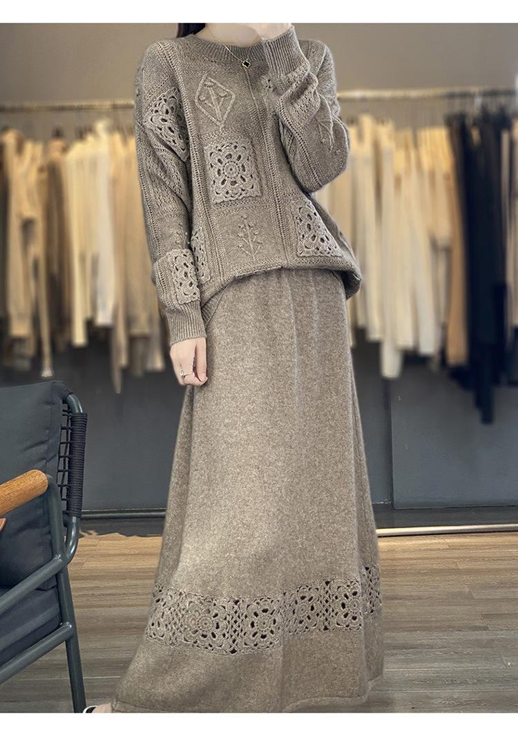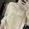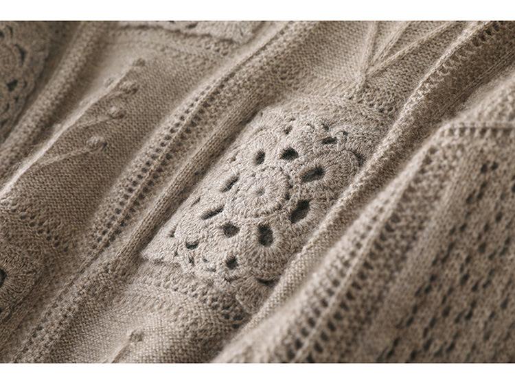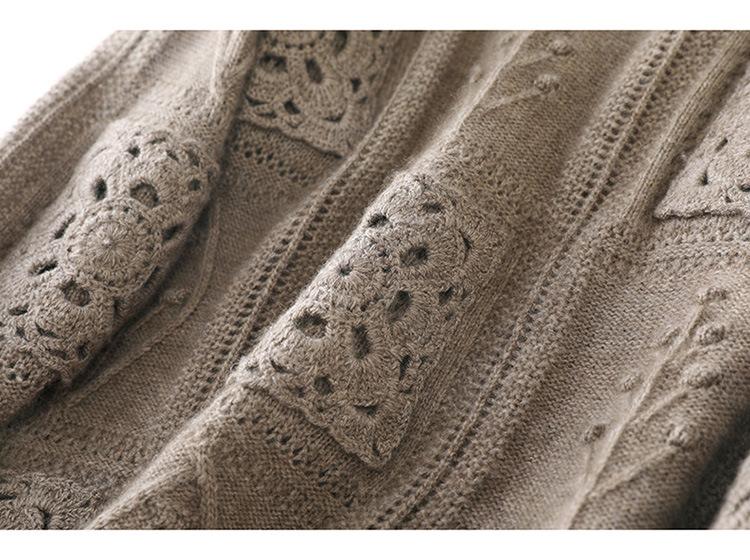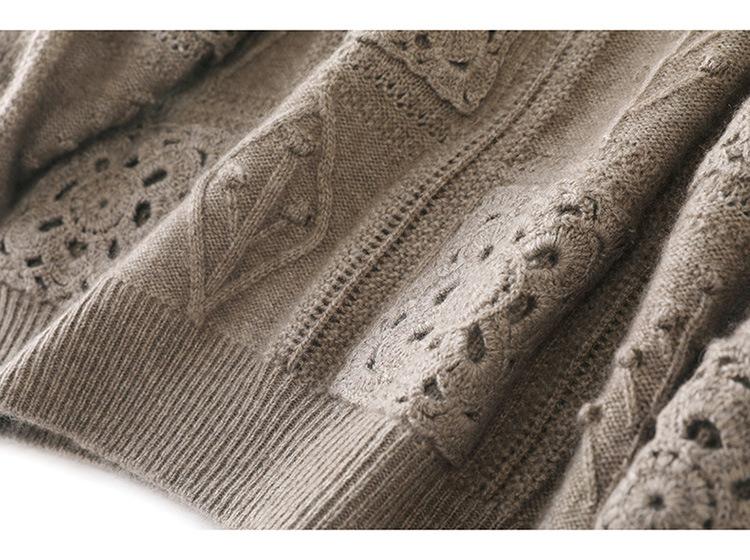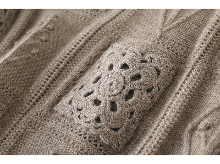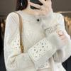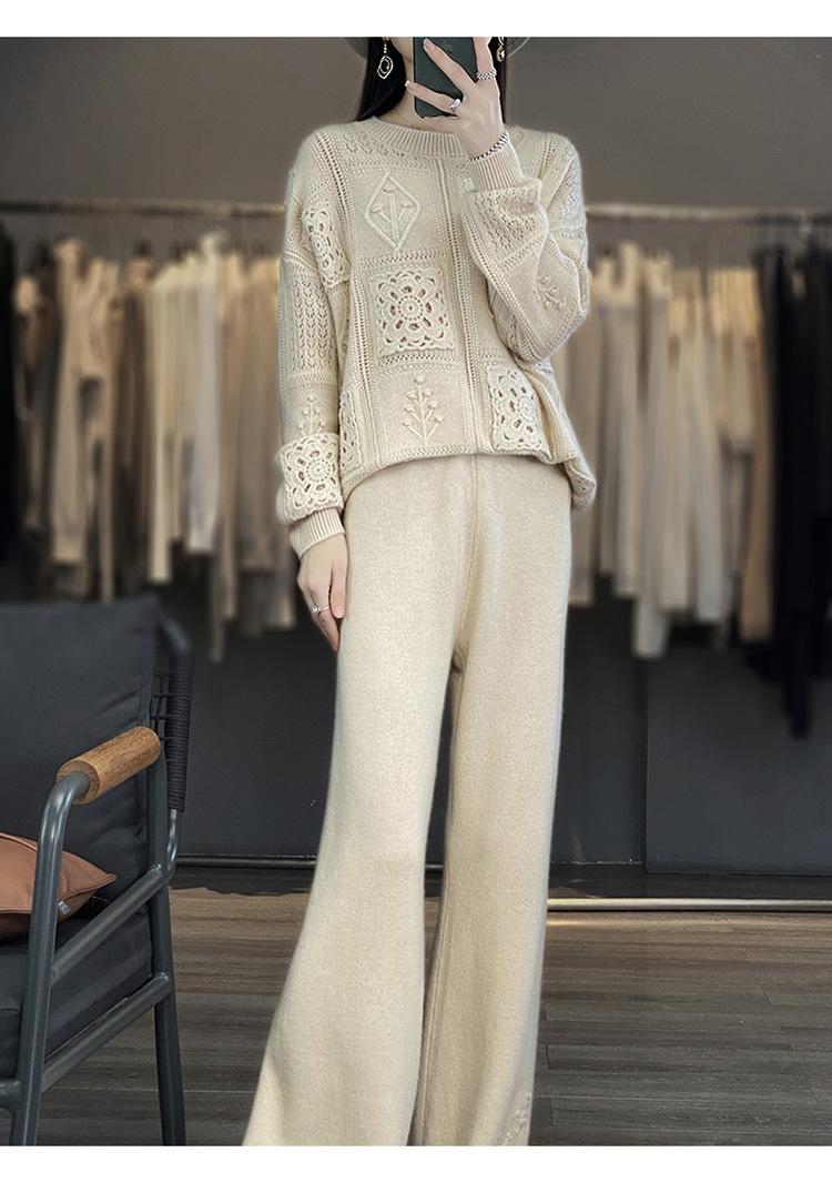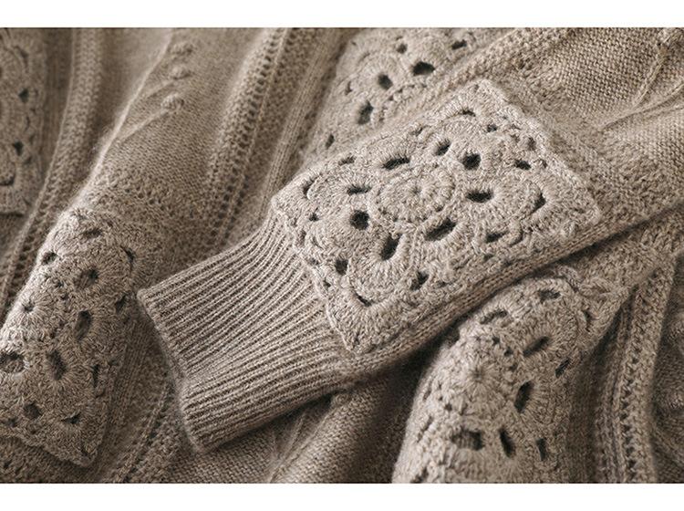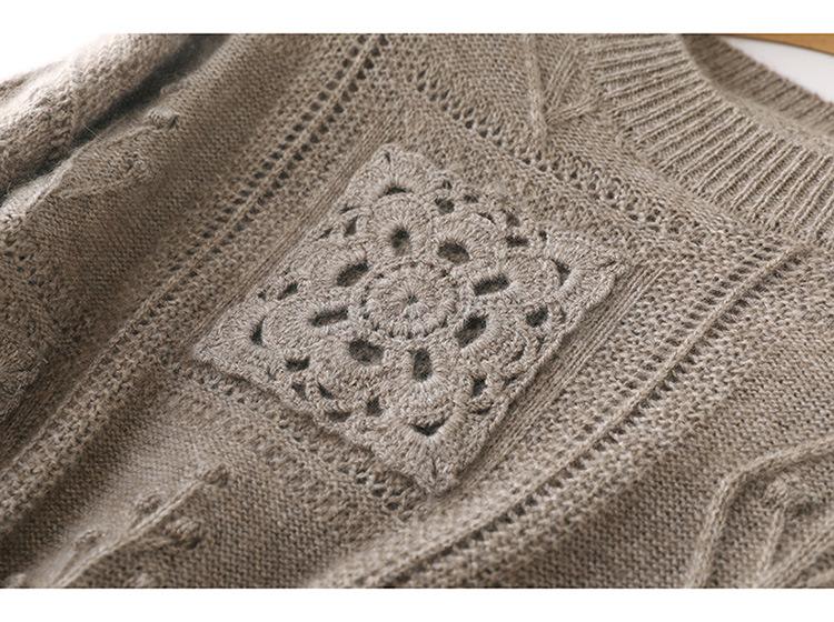 100% Lana Pura Otoño e Invierno 2025 Nuevo Tejido de Punto Base Jacquard de Color Puro de Manga Larga y Cuello Redondo Holgado para Mujer