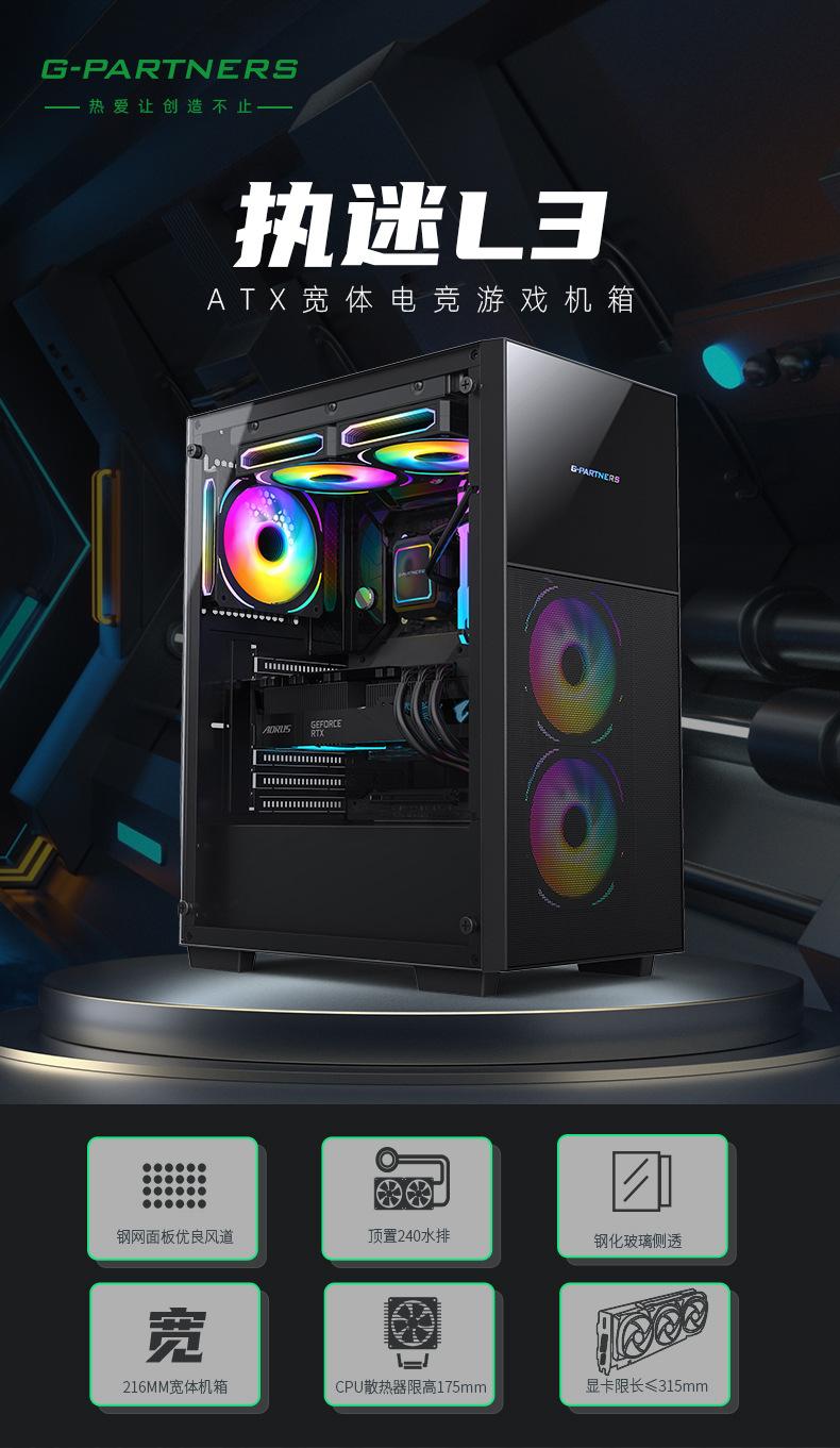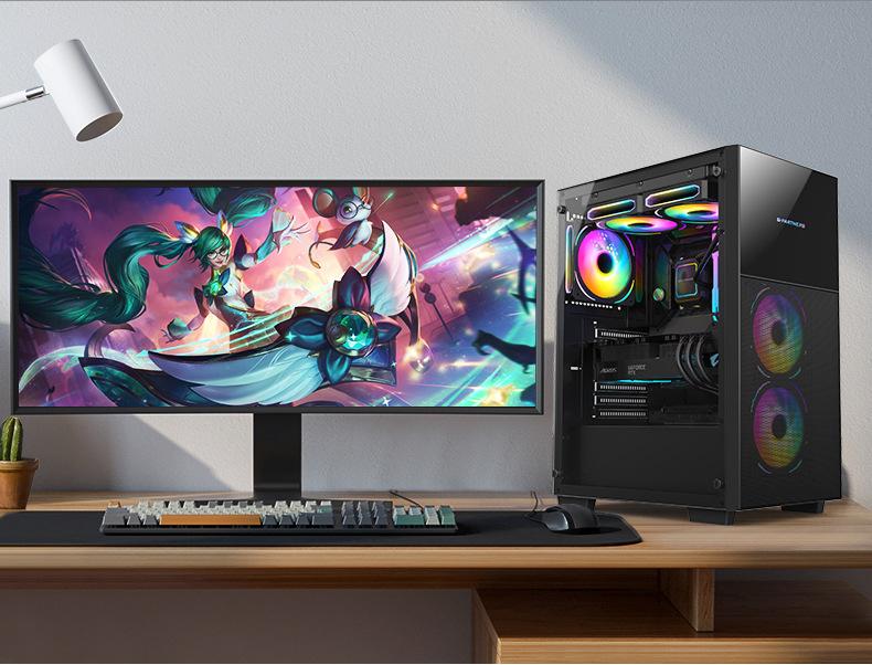 Chasis de computadora de escritorio ATX transpirable con malla de vidrio templado L3 y lateral para juegos y deportes electrónicos obsesionado con las fronteras