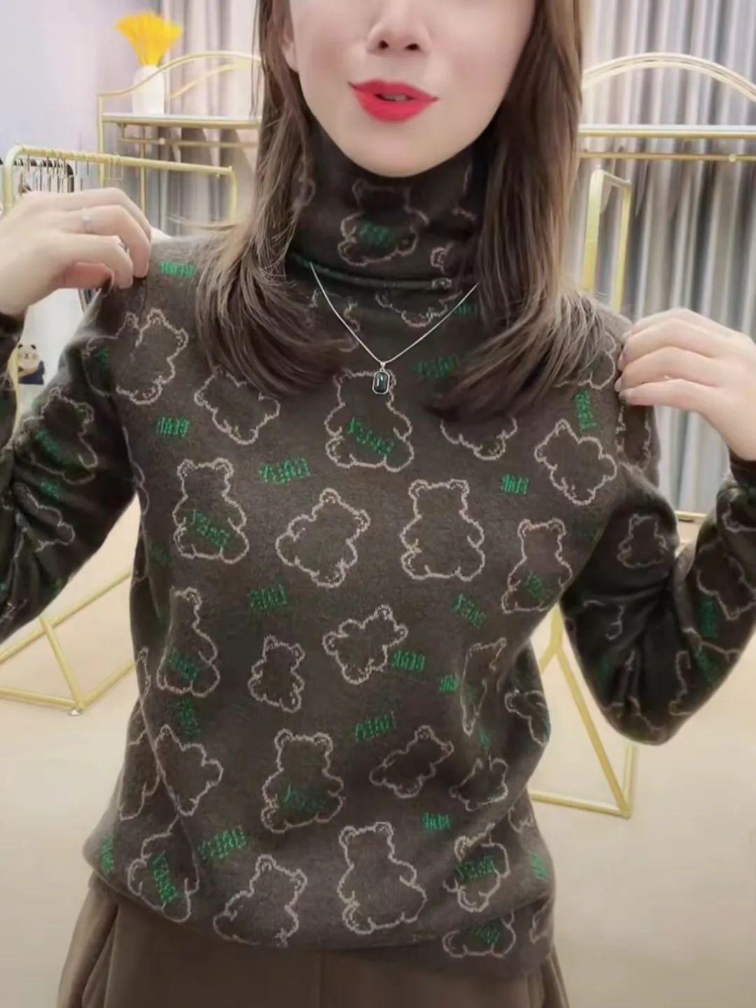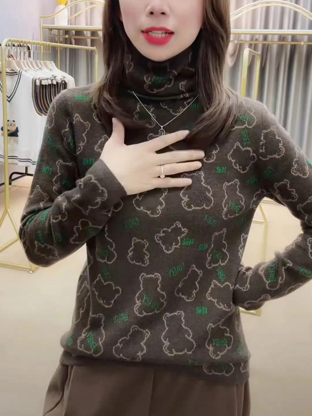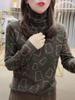 Camisa de cuello alto para mujer, forro polar grueso, otoño e invierno, estilo occidental, cálida, de manga larga, para madres de mediana edad