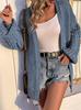 2025 Nuevo Otoño e Invierno Chaqueta de Punto de Largo Medio para Mujer Color Puro Manga Linterna Tejido de Punto Europeo y Americano Cárdigan para Mujer