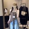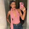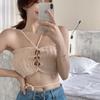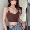 Sexy Sexy Corte Cruzado Abertura Delantera y Trasera Dos Usos Tirante Fino Corto Ajustado Fondo Chaleco Exterior para Mujer
