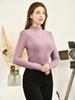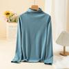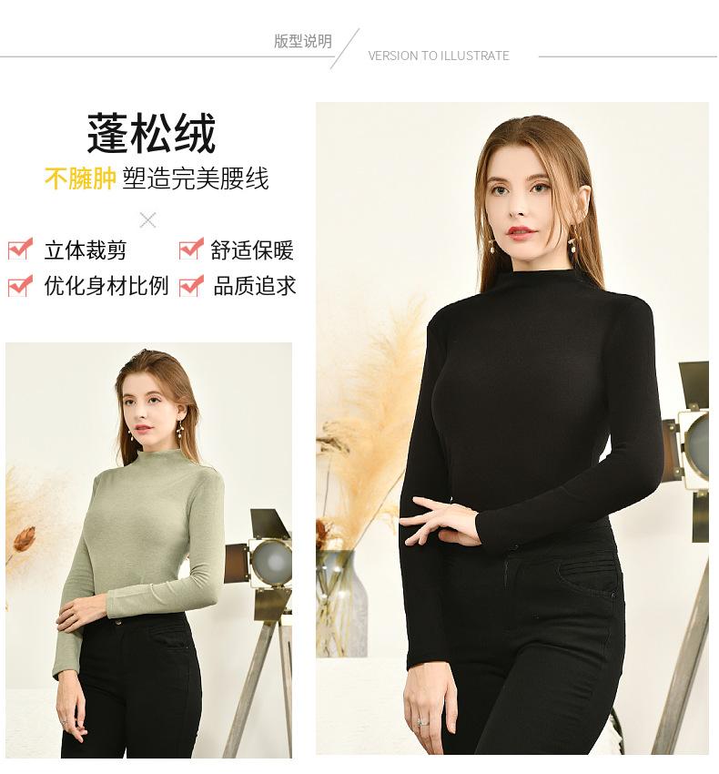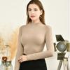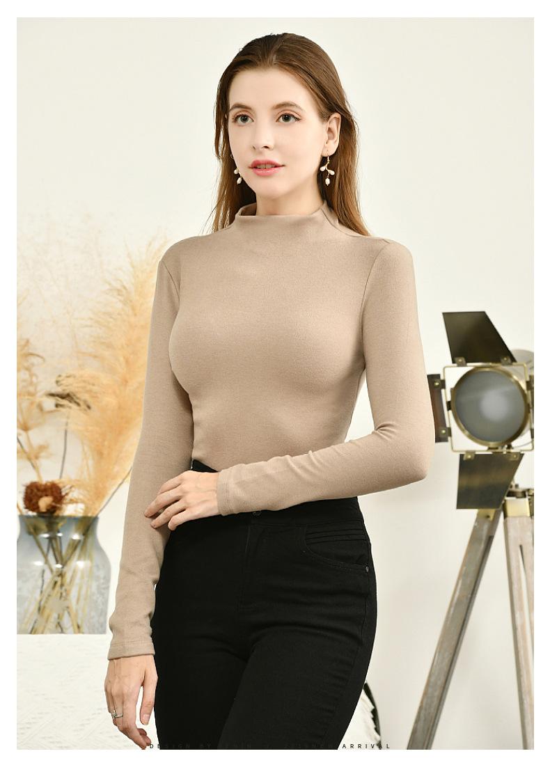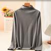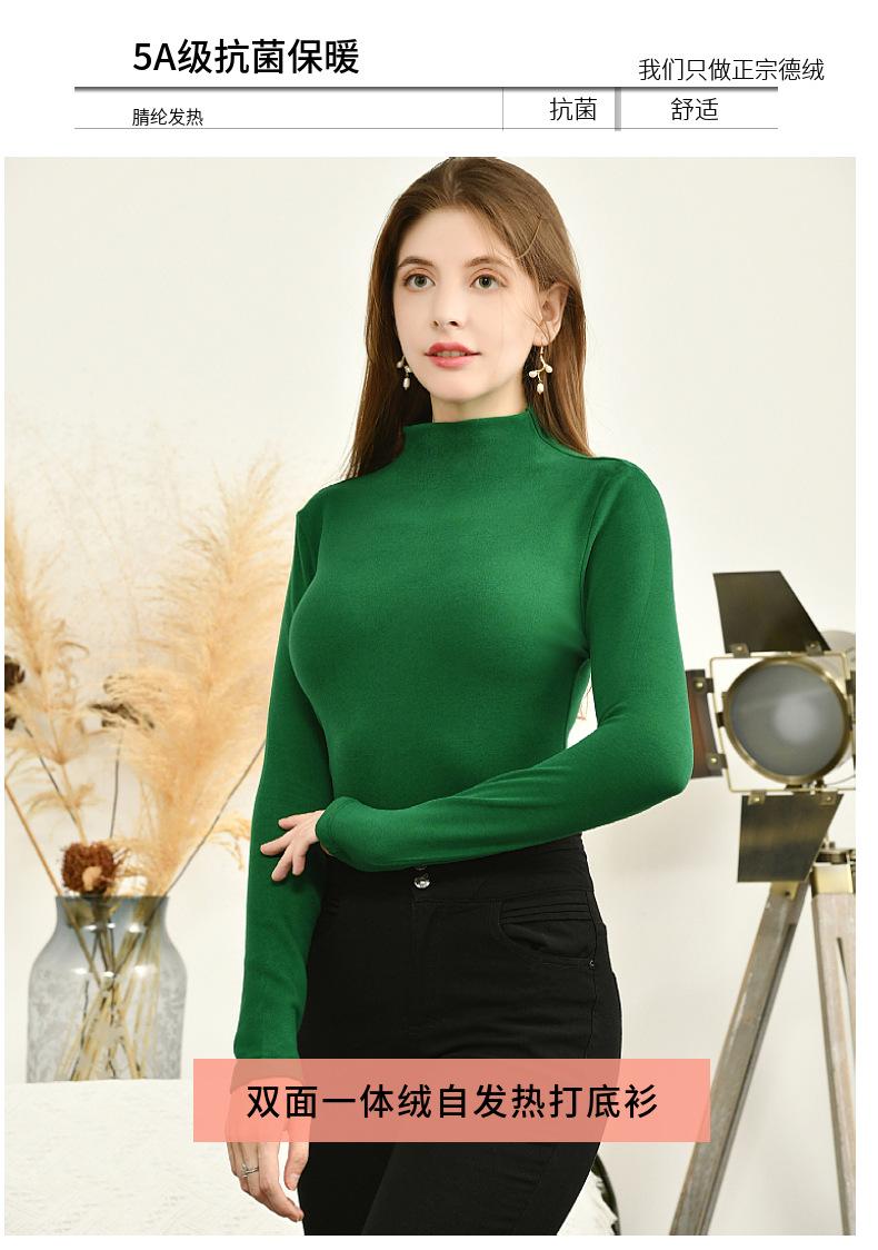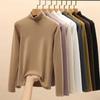 Camiseta básica de terciopelo de doble cara para mujer con cuello medio alto, otoño e invierno, nuevo estilo occidental, gruesa y cálida con forro polar, manga larga