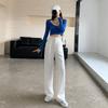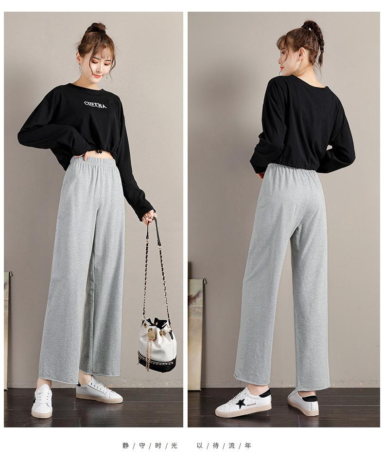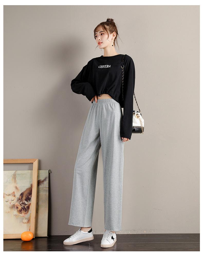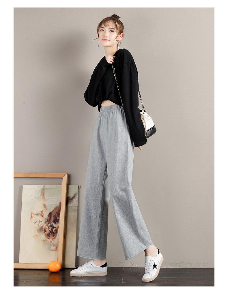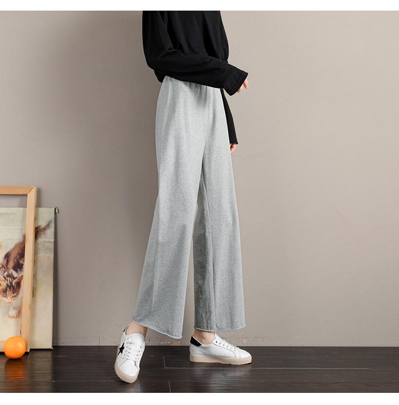 Pantalones deportivos de pierna ancha para mujer, cintura alta, drapeados, sueltos, casuales, primavera y otoño, pantalones rectos grises recortados de verano