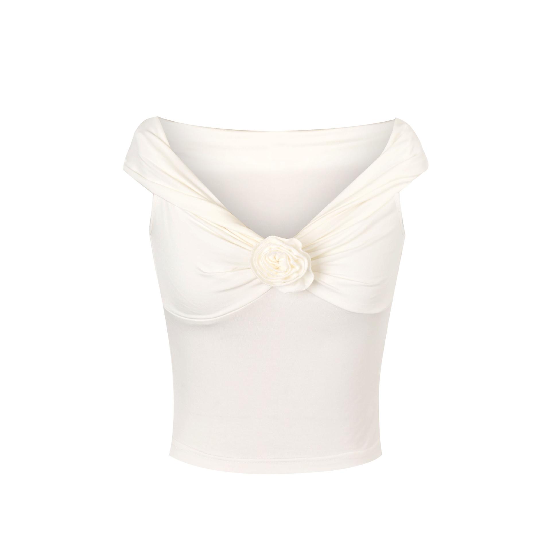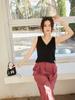 L24065-24 Chaleco básico informal de primavera, estilo americano, con costuras decorativas y flores en el pecho, estilo Pure Desire