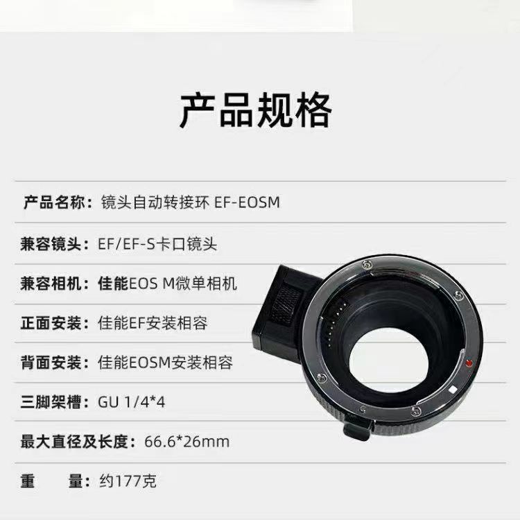 Anillo adaptador EF-EOSM compatible con objetivos Canon EF/EF-S de una sola vuelta con microescupidera pequeña EOS M2 M3 M5