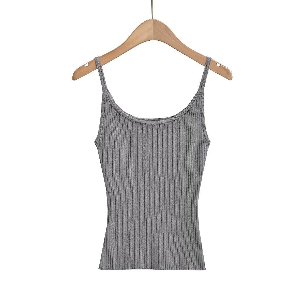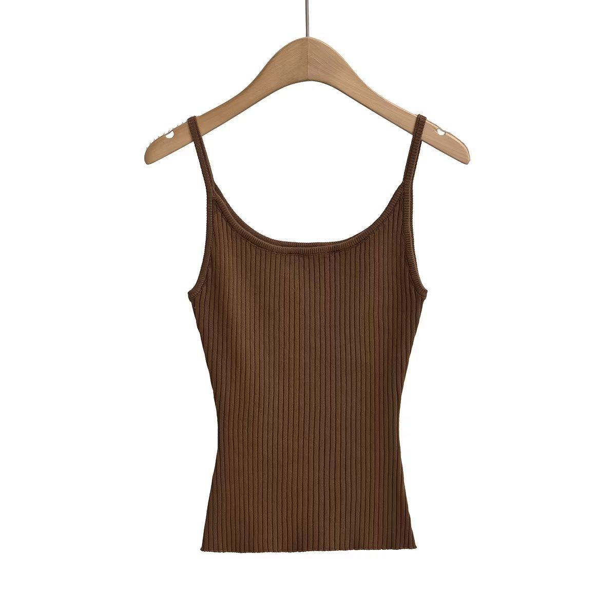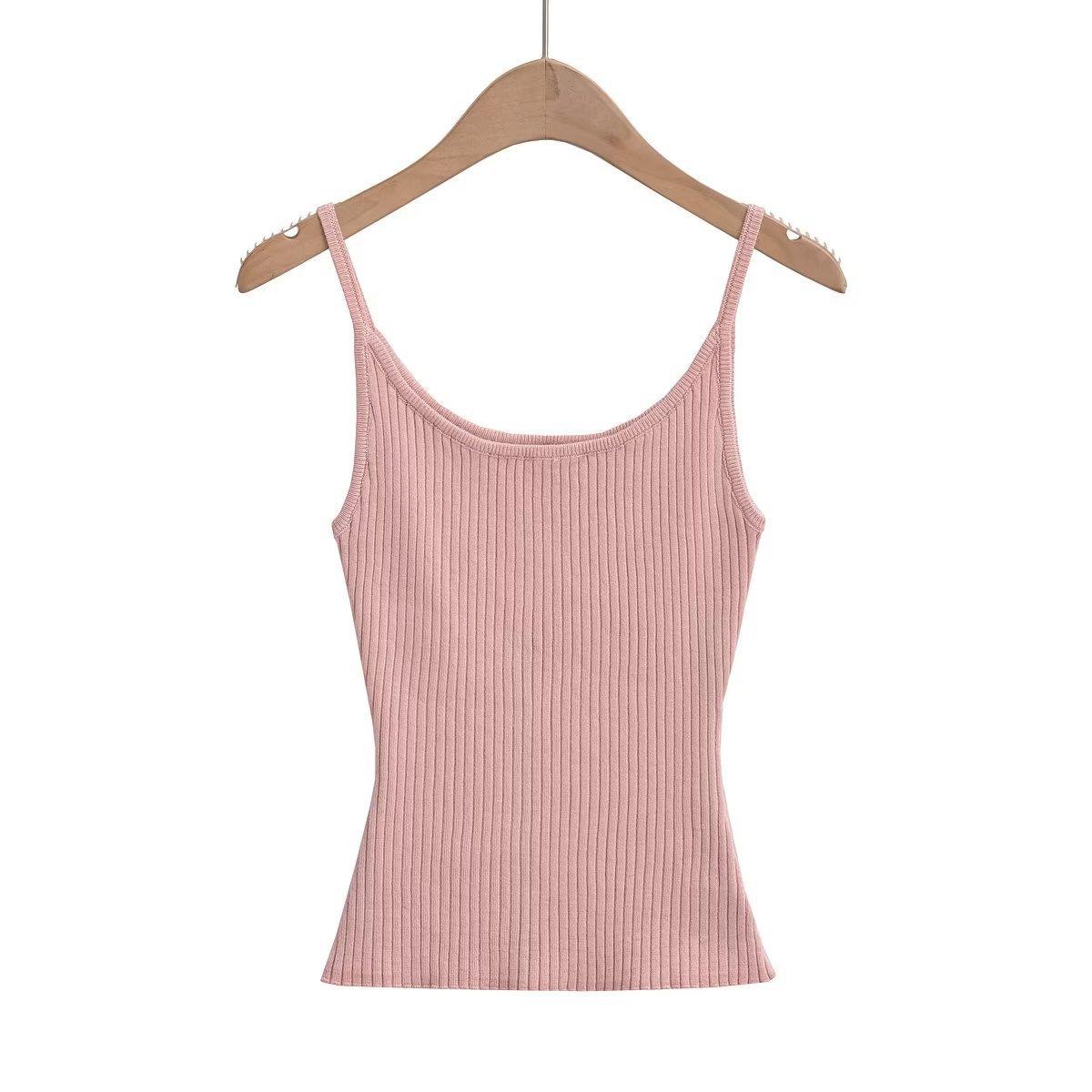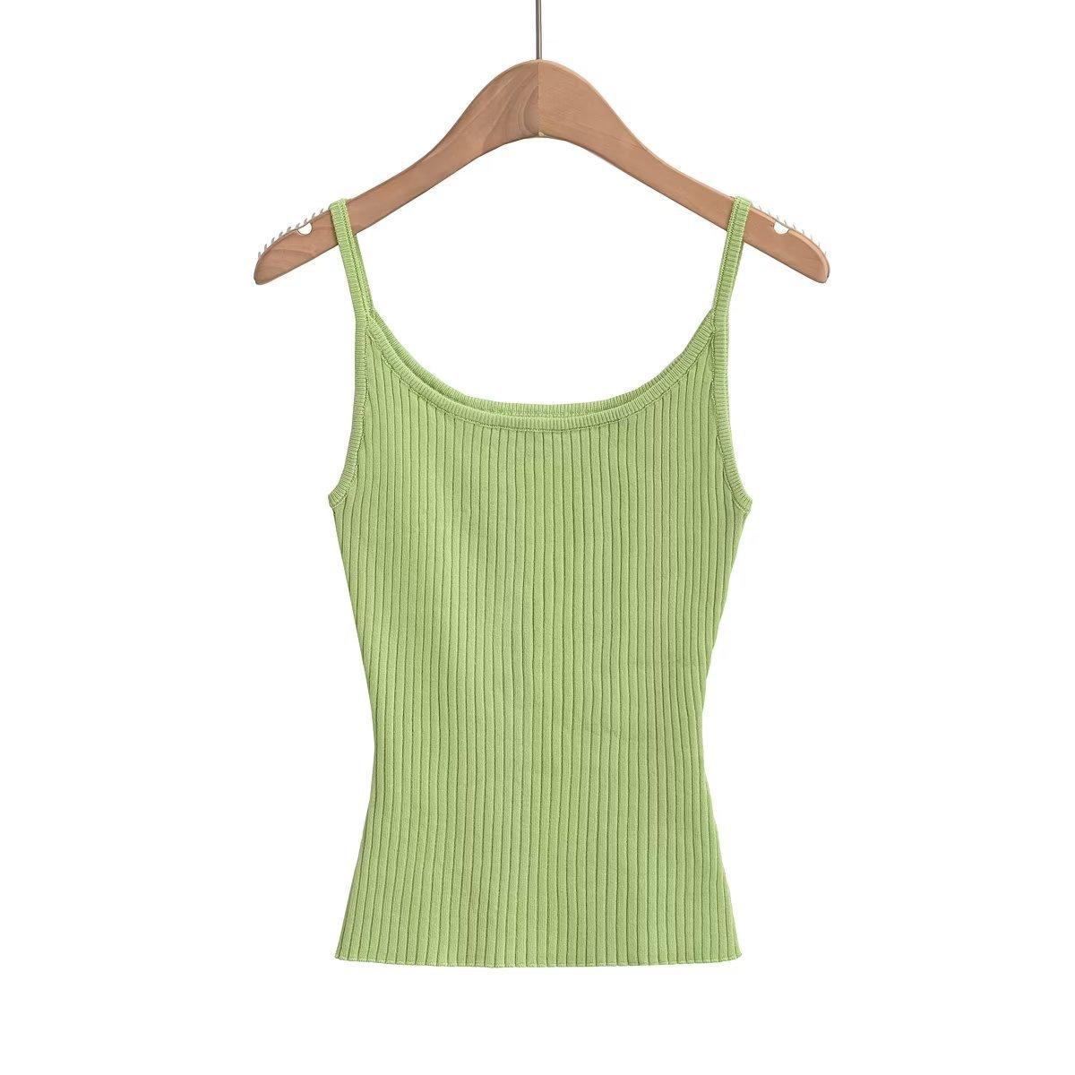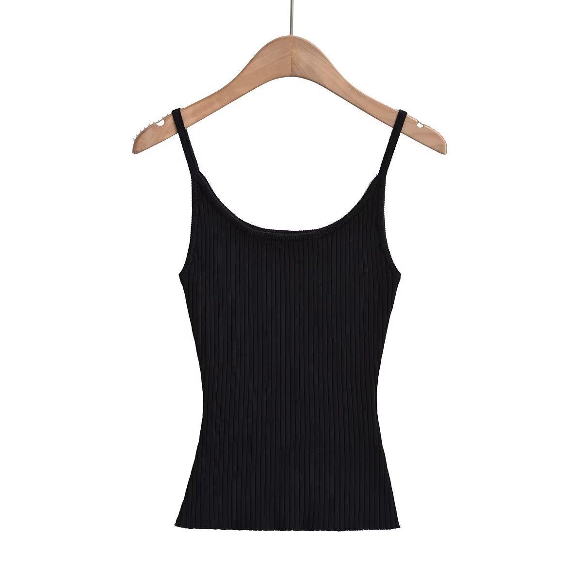 Top corto ajustado de punto con cuello en U y tirantes de color liso para chica sexy estilo americano, novedad de verano 2023, estilo europeo y americano.