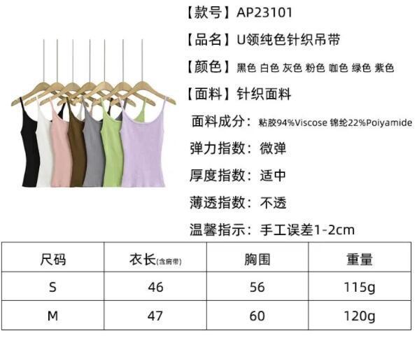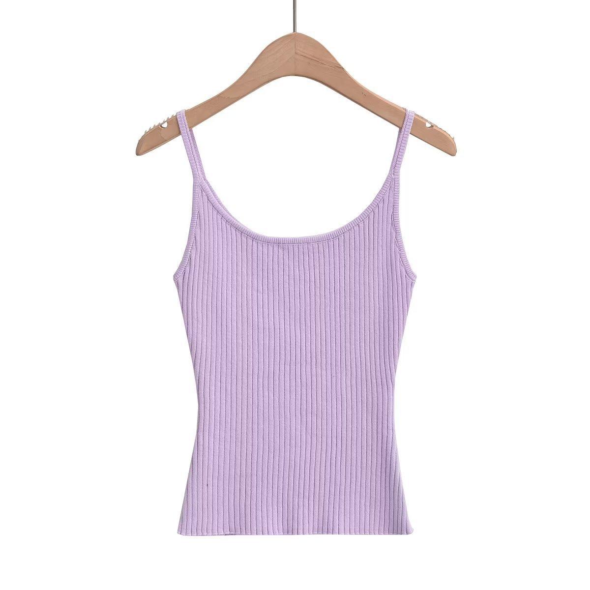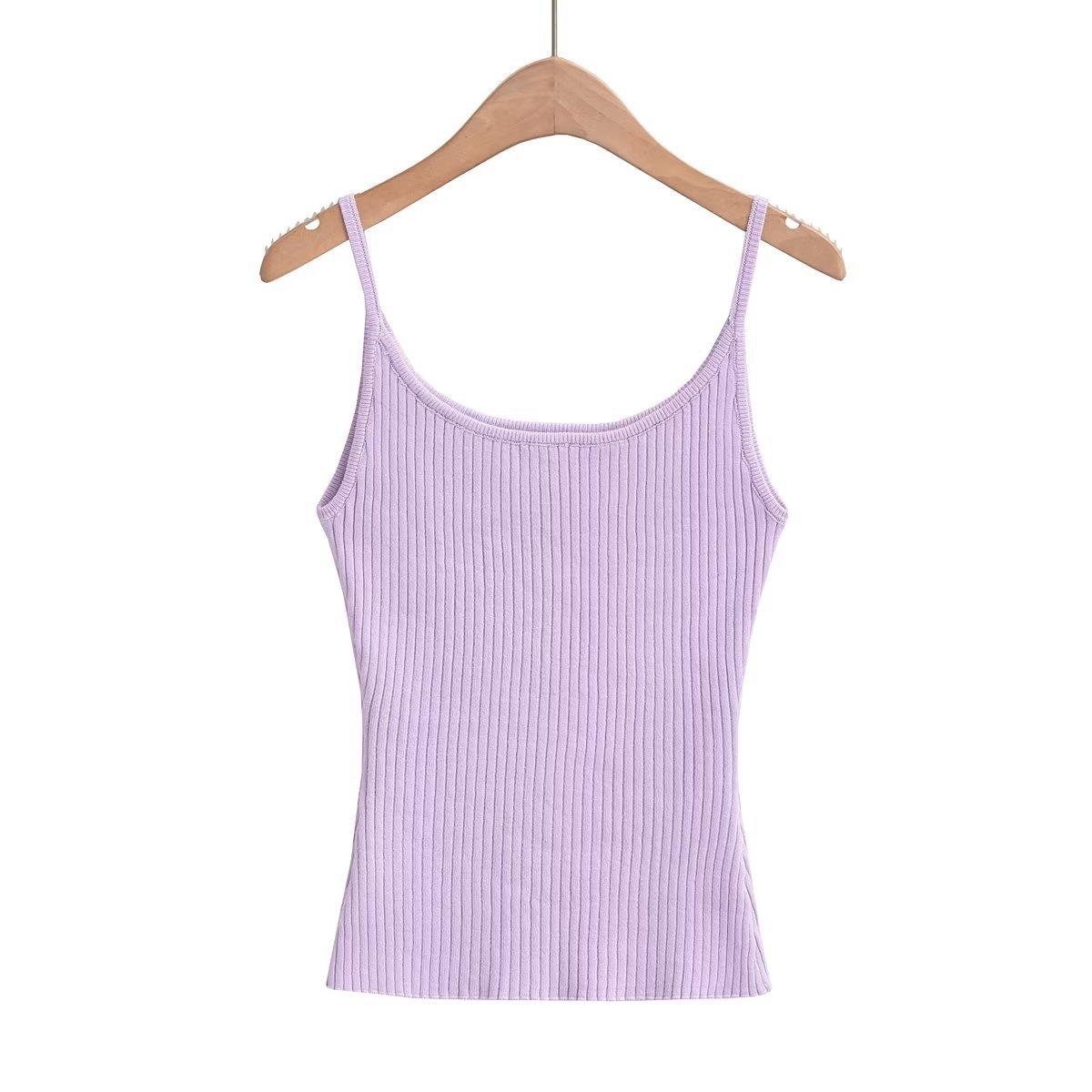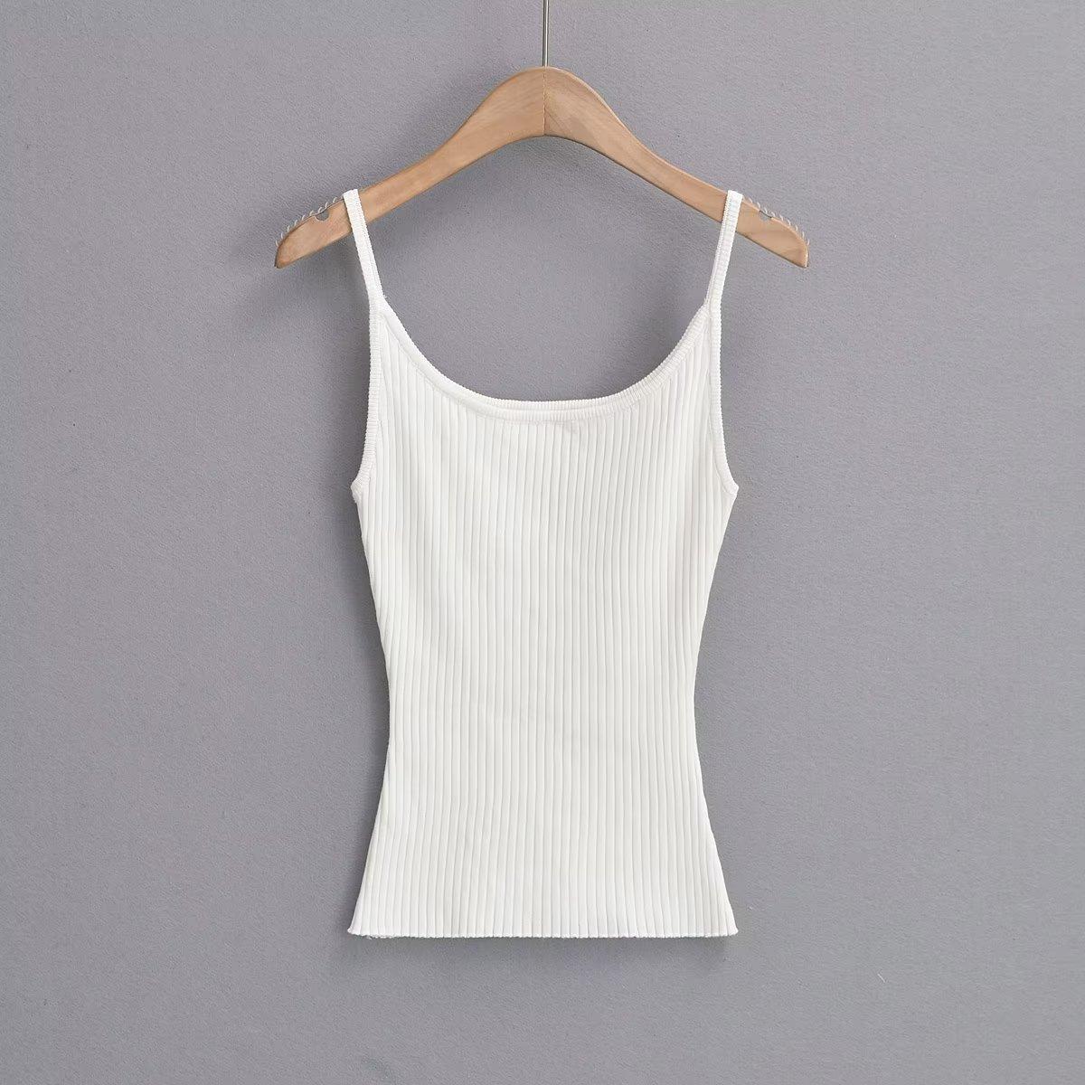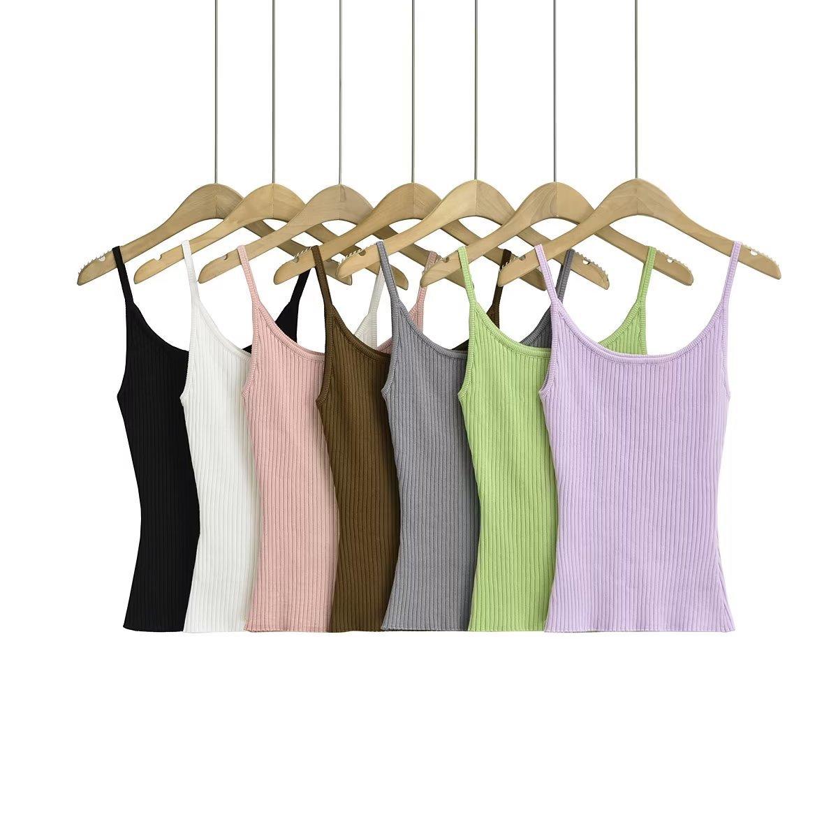 Top corto ajustado de punto con cuello en U y tirantes de color liso para chica sexy estilo americano, novedad de verano 2023, estilo europeo y americano.