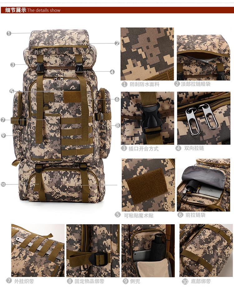 Nueva Mochila Deportiva Táctica de Camuflaje para Exteriores de Gran Capacidad 80L Impermeable Bolsa de Viaje para Montañismo para Hombre Estilo Camping Bolsa de Equipaje