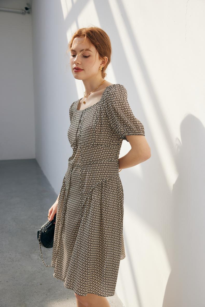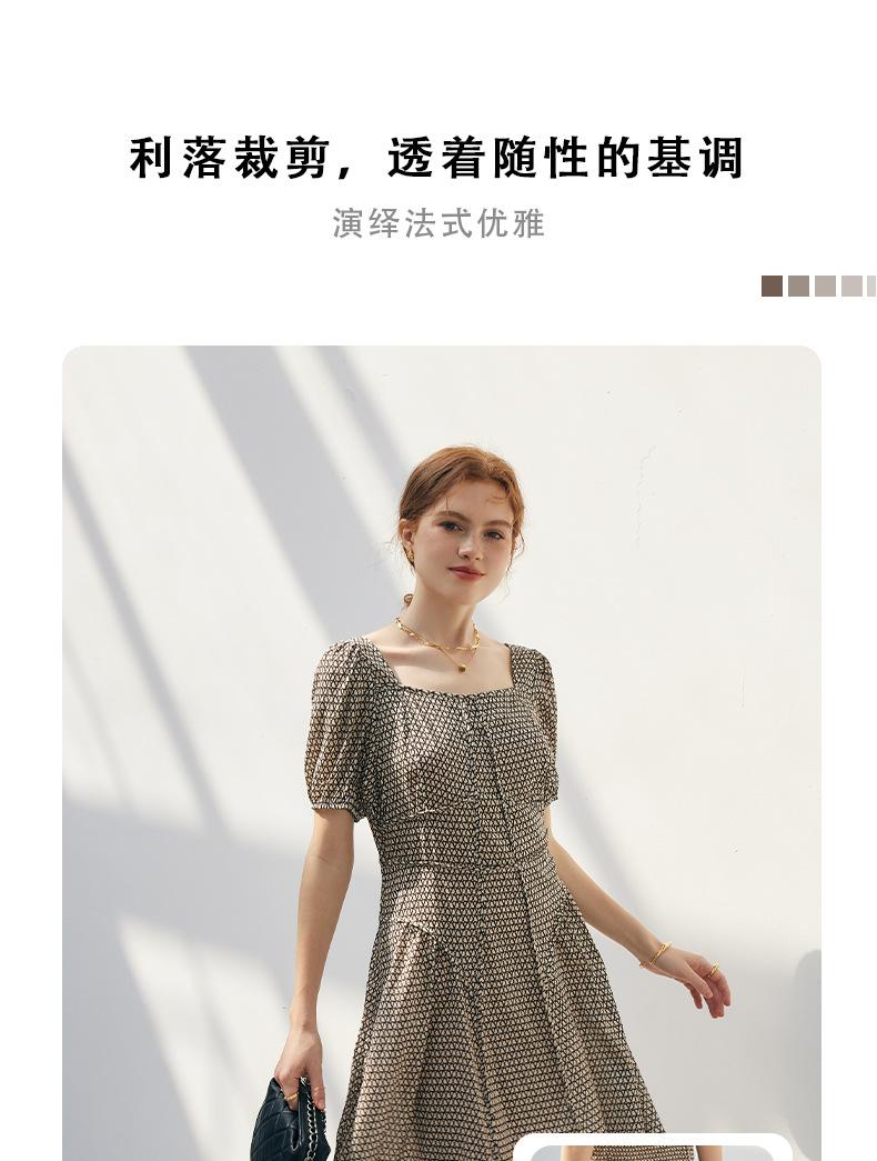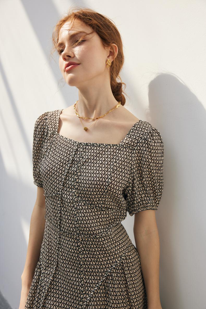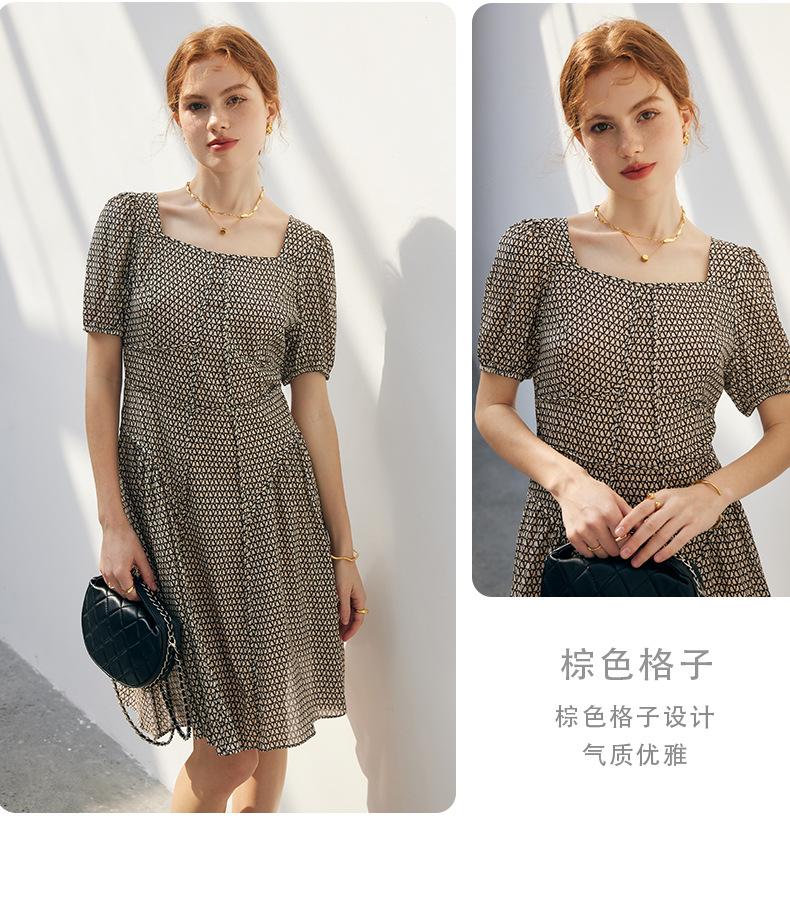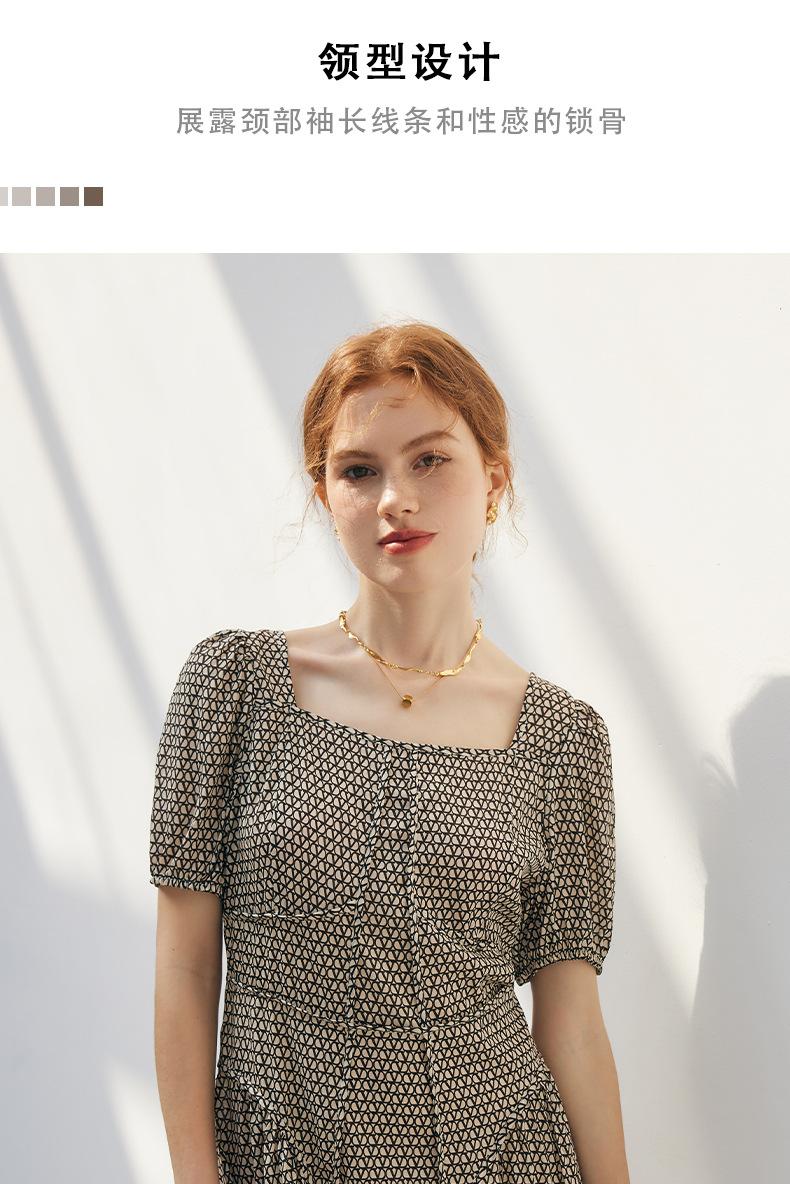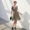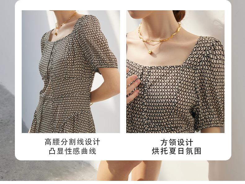 Vestido de seda de manga corta para mujer primavera y verano 2025 nuevo joven estampado cuello cuadrado 100% seda de morera falda