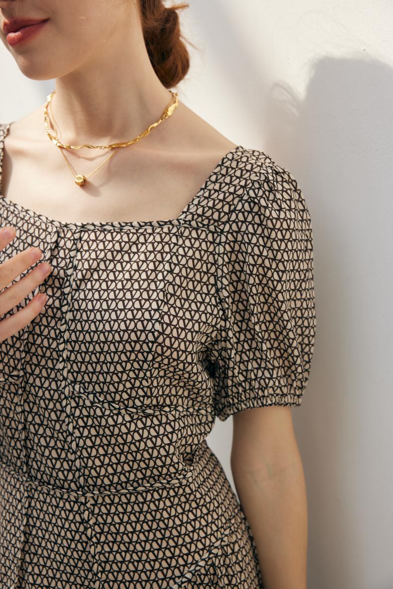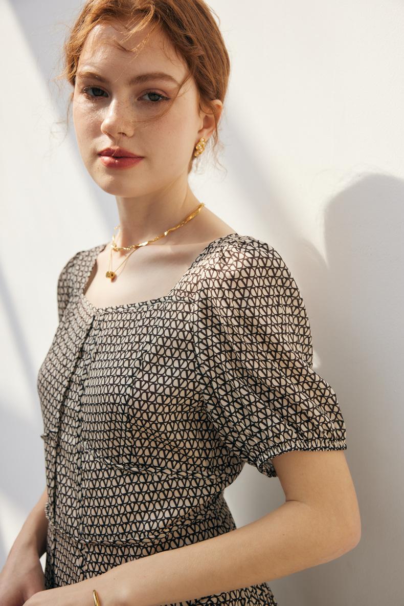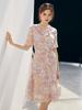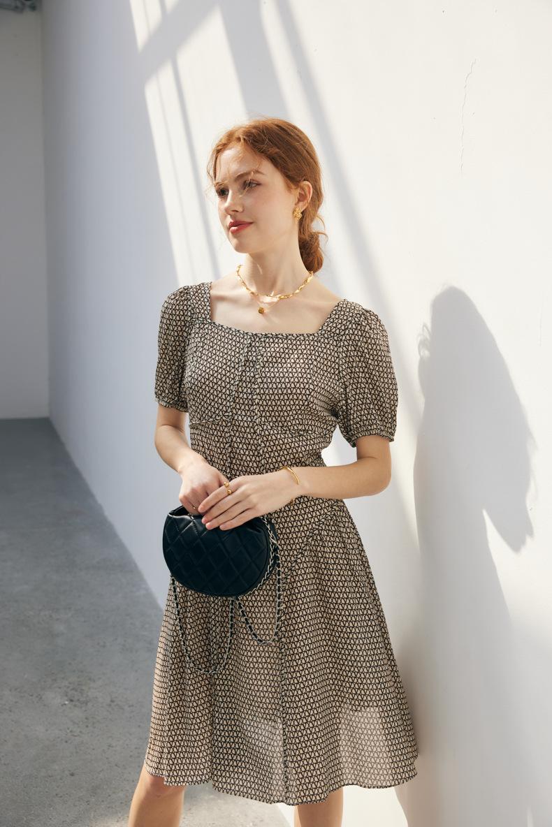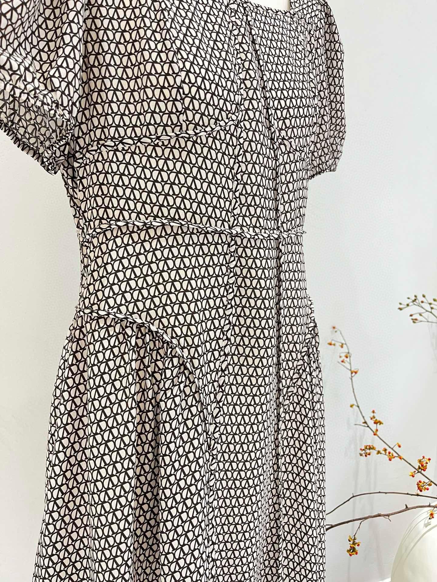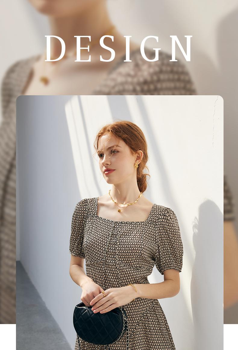 Vestido de seda de manga corta para mujer primavera y verano 2025 nuevo joven estampado cuello cuadrado 100% seda de morera falda