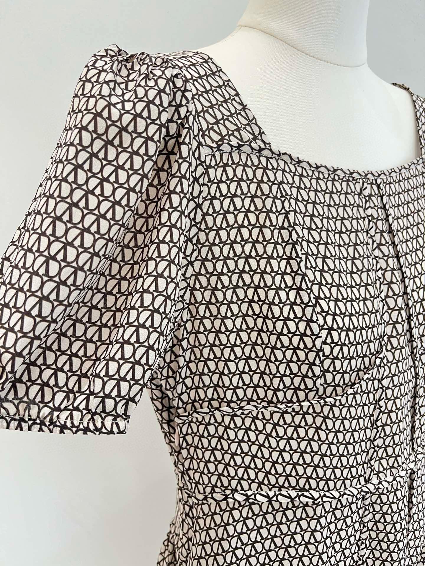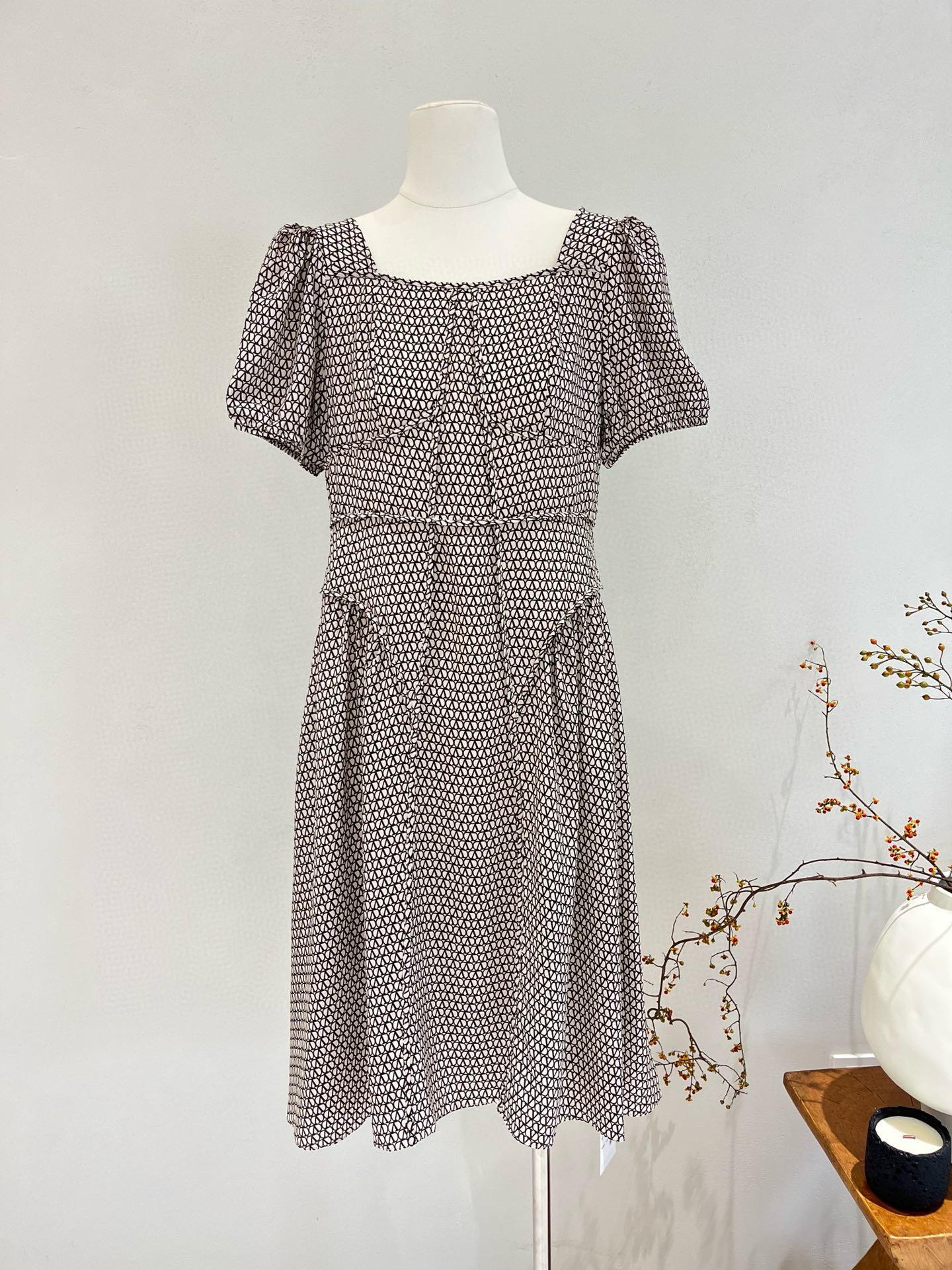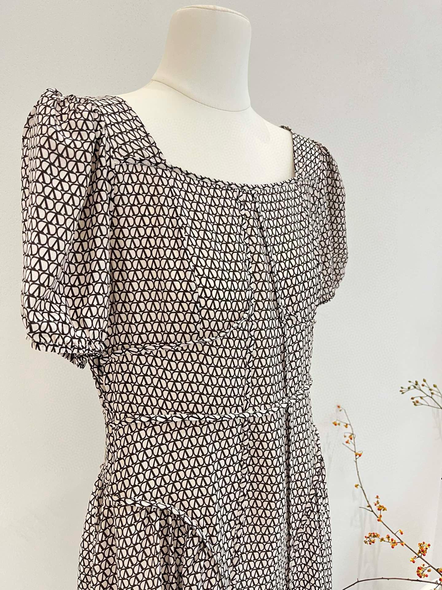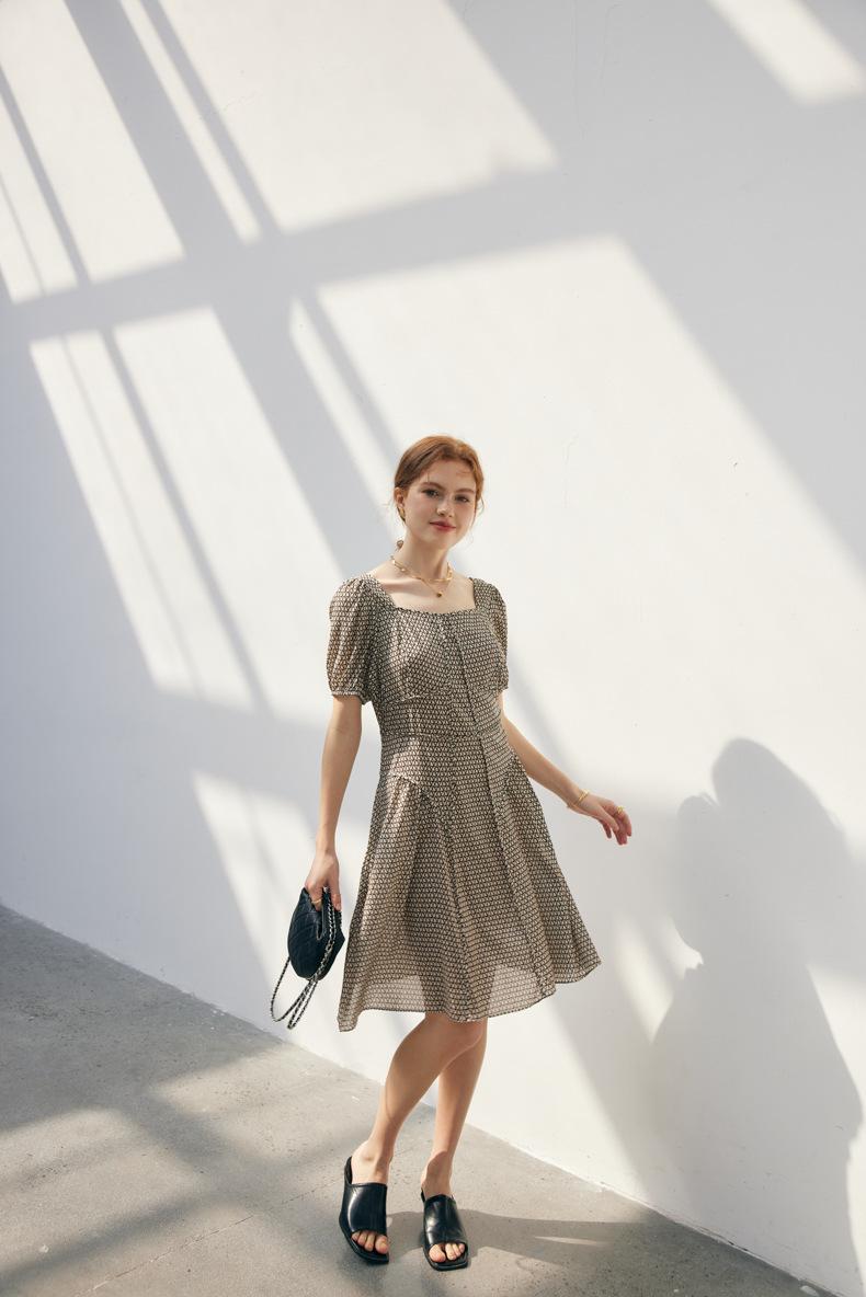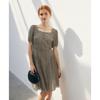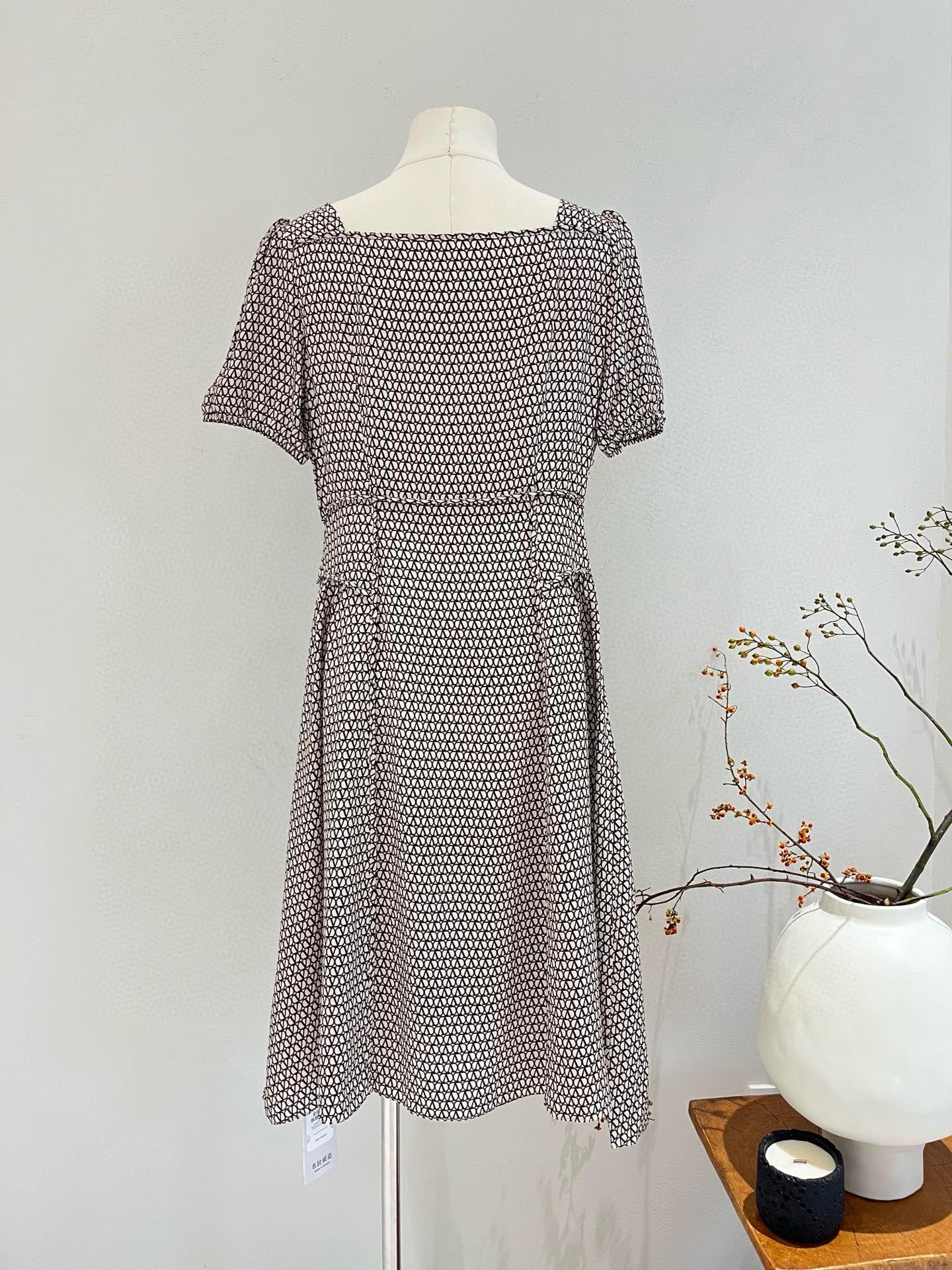 Vestido de seda de manga corta para mujer primavera y verano 2025 nuevo joven estampado cuello cuadrado 100% seda de morera falda