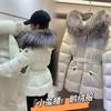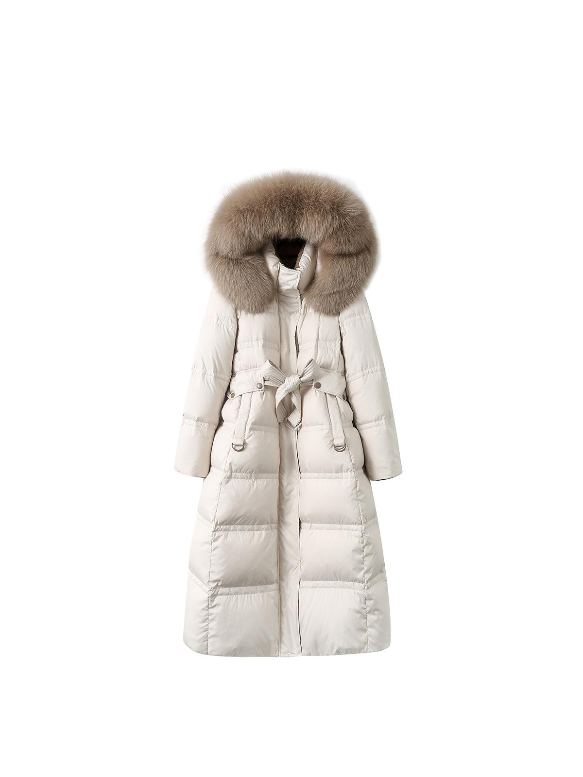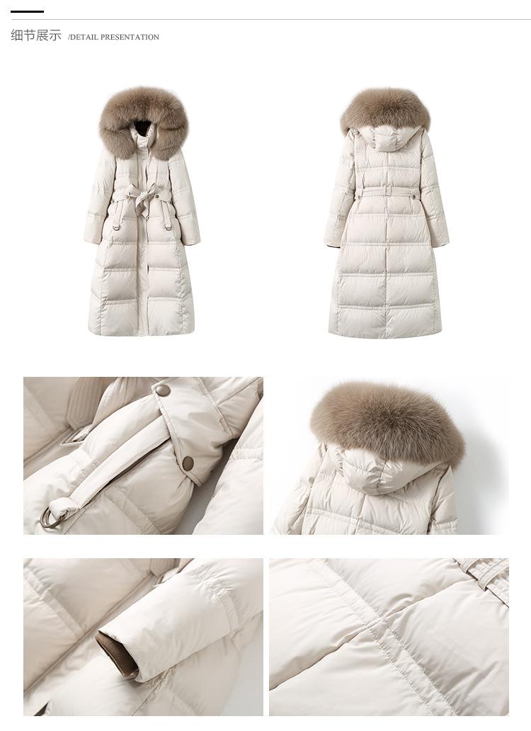 Chaqueta de Plumón con Cuello de Piel de Zorro Real para Mujer 2023 Nueva Moda Adelgazante de Cintura Media Longitud Sobre la Rodilla Chaqueta de Plumón de Pato Blanco