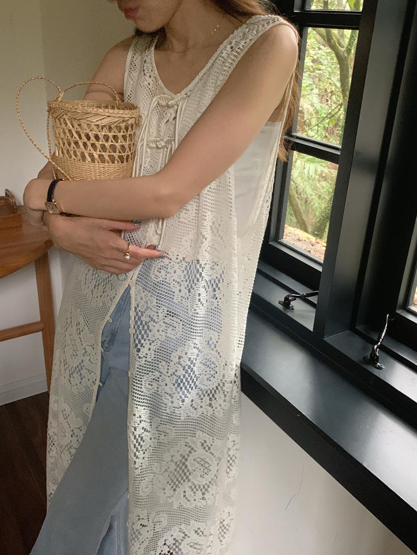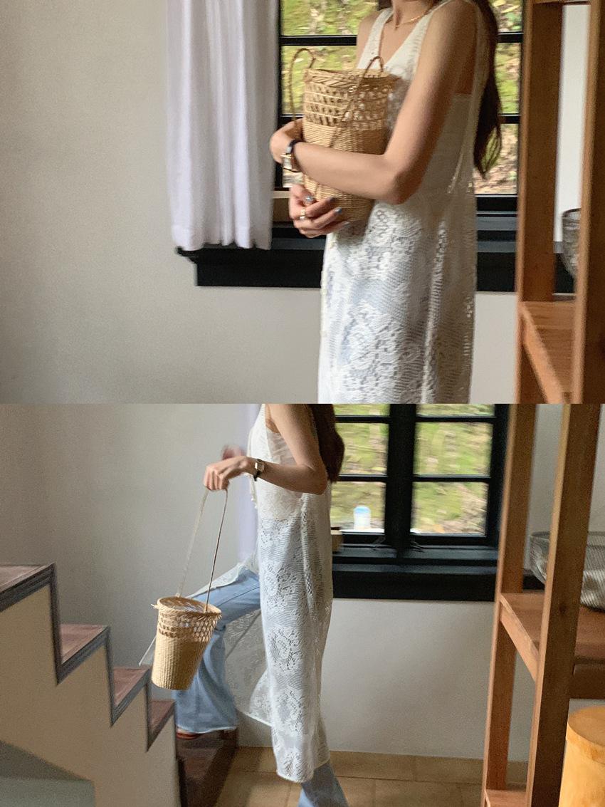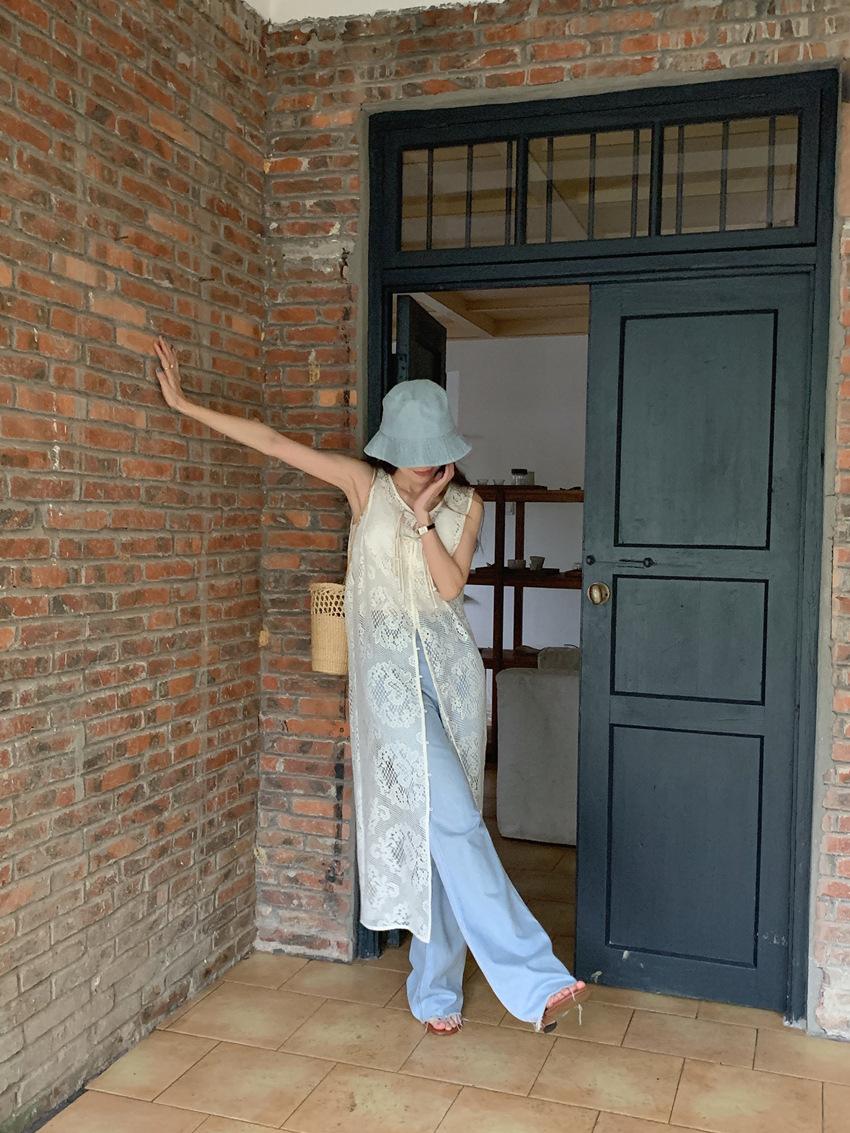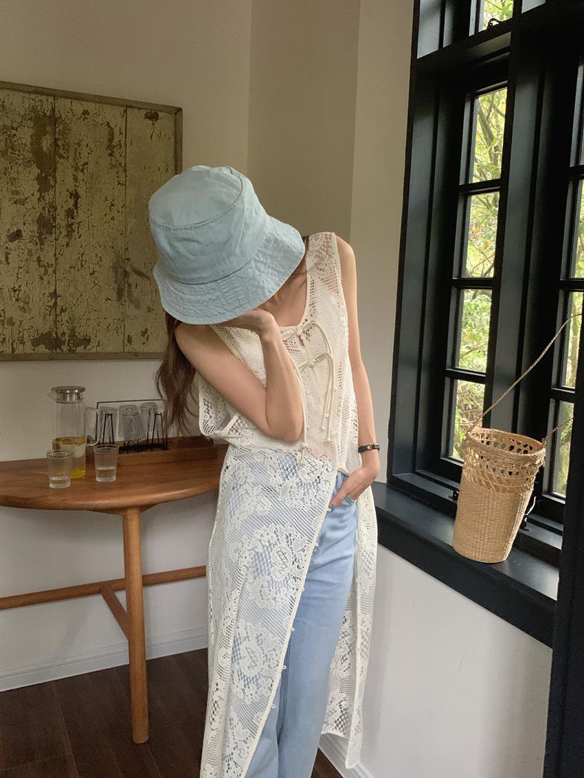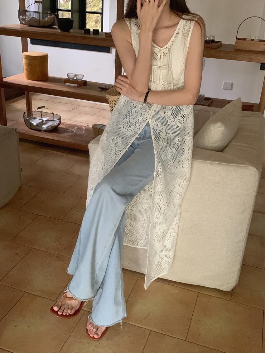 Foto Real de Vestido Chaleco sin Mangas de Diseño Nicho Nuevo Chinoiserie Hebilla Recorte Encaje Apilado Falda Larga para Mujer