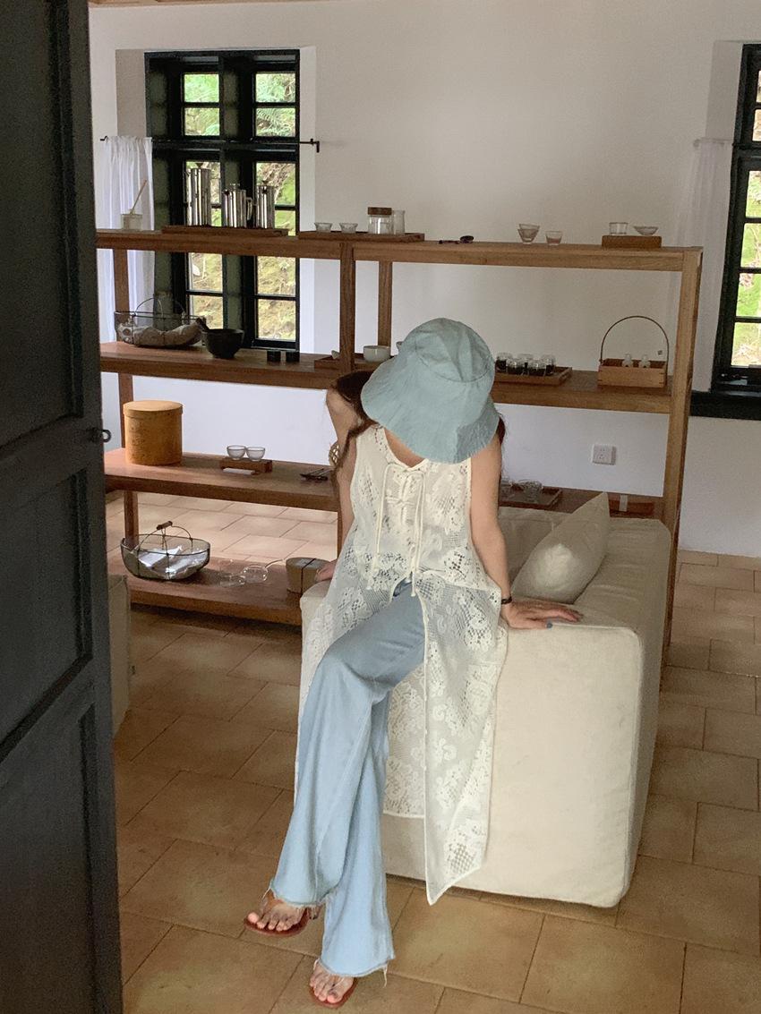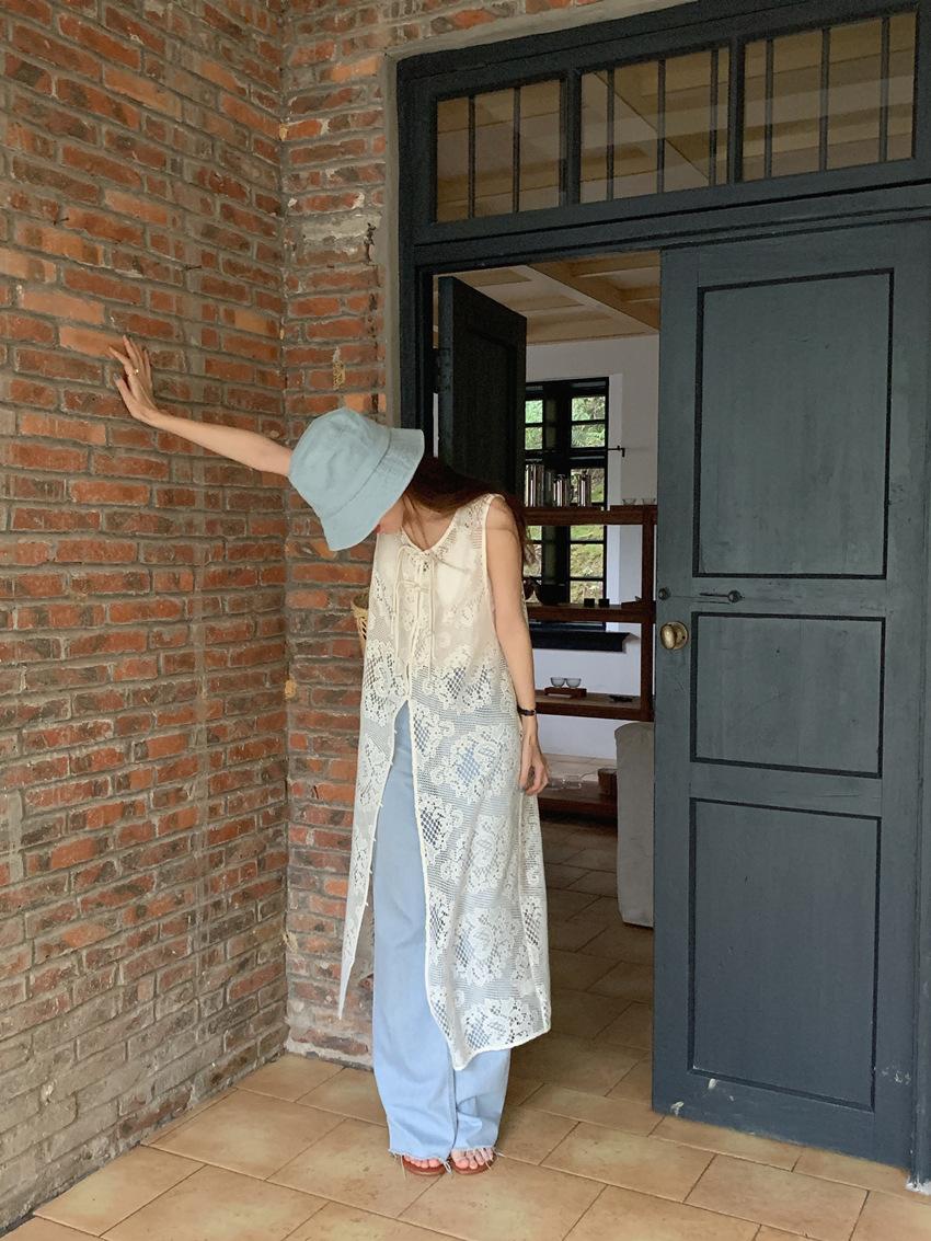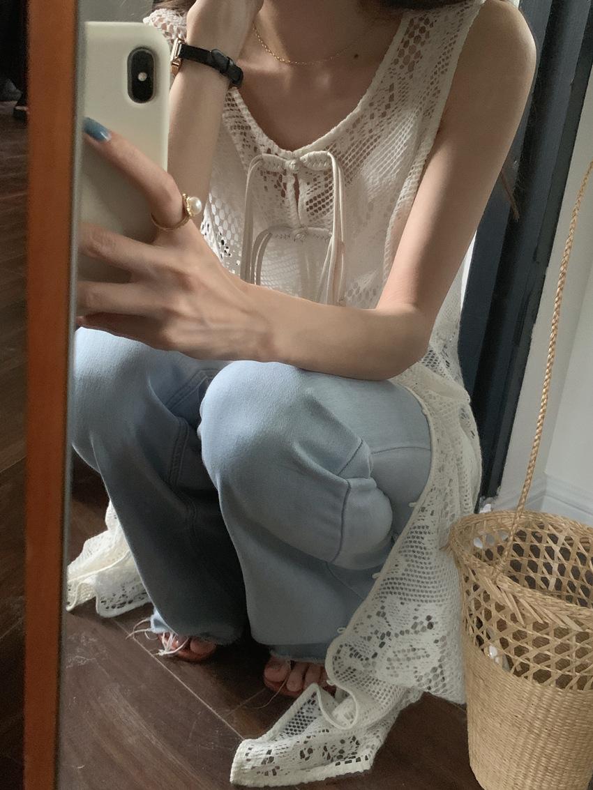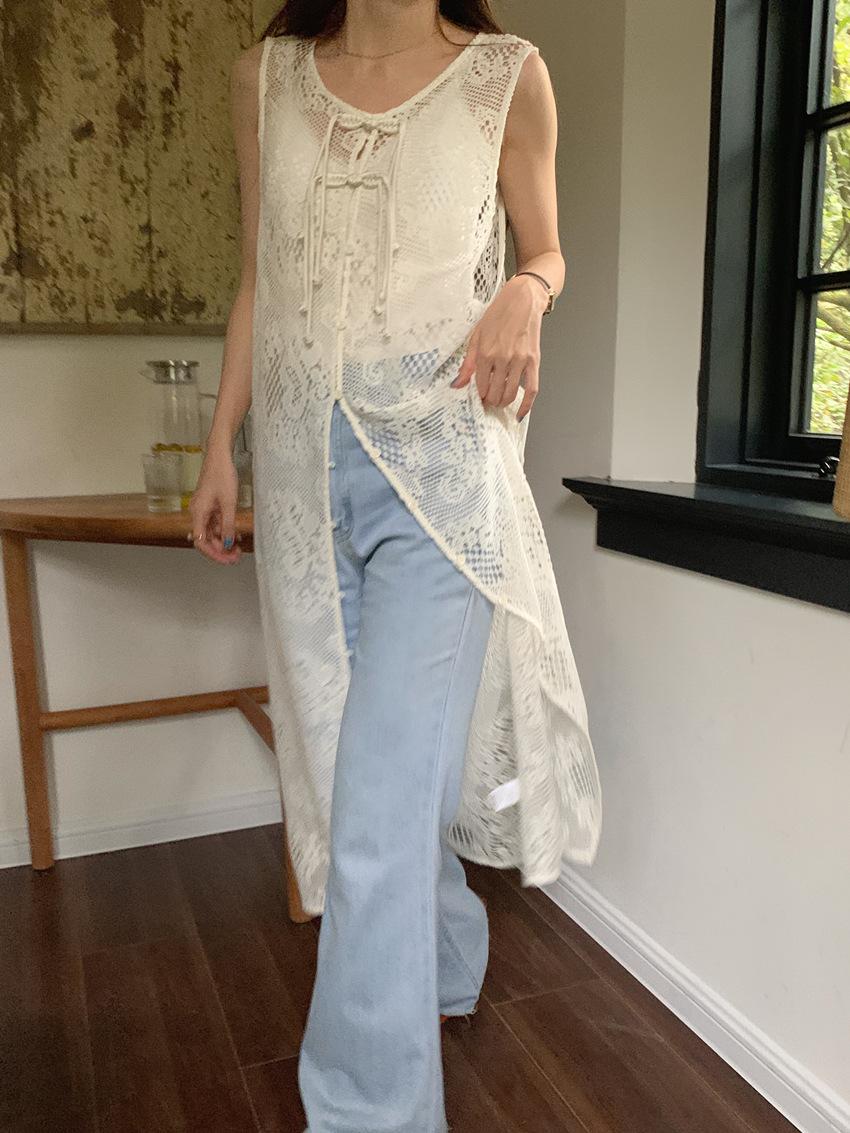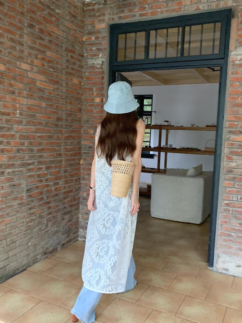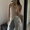 Foto Real de Vestido Chaleco sin Mangas de Diseño Nicho Nuevo Chinoiserie Hebilla Recorte Encaje Apilado Falda Larga para Mujer
