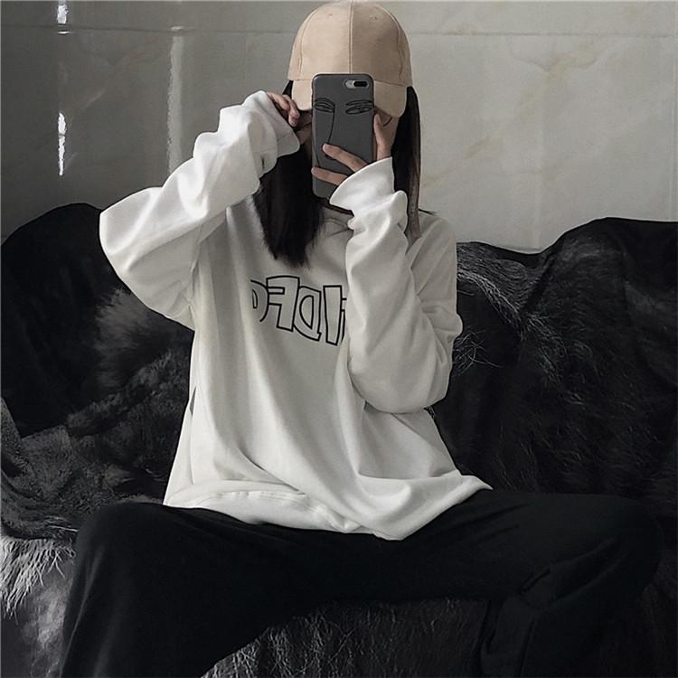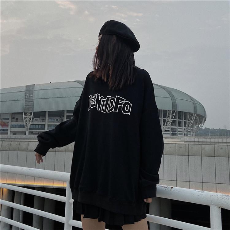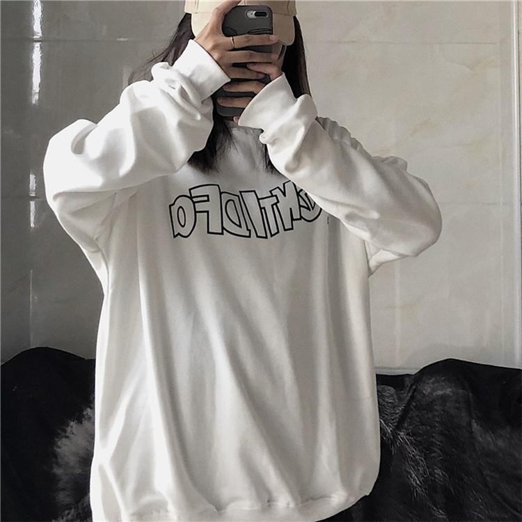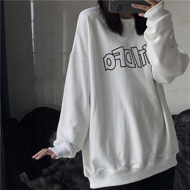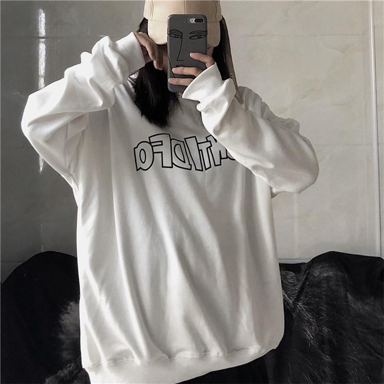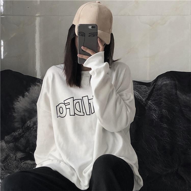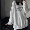 Sudadera holgada de otoño 2025 con estampado de letras, cuello redondo y manga larga al por mayor para estudiantes, chaqueta delgada, ropa para mujer