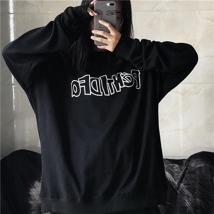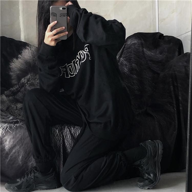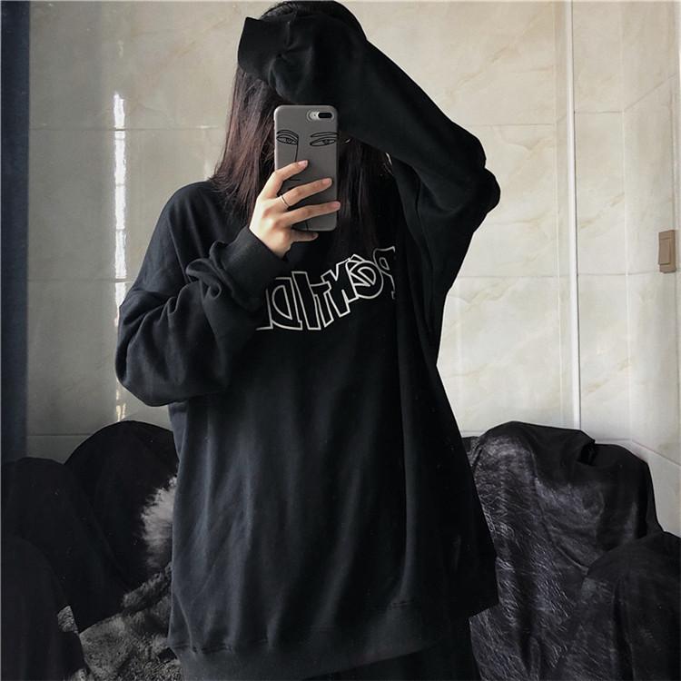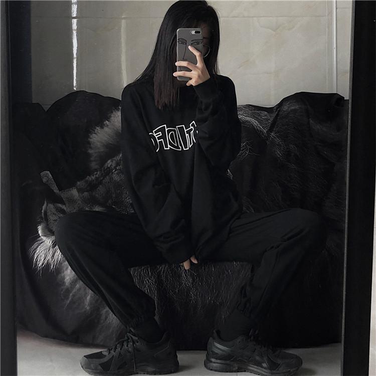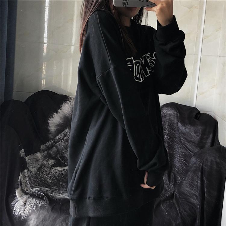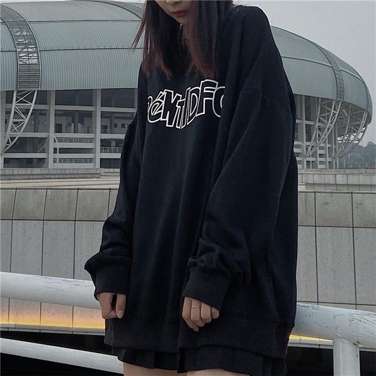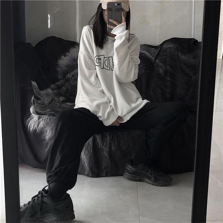 Sudadera holgada de otoño 2025 con estampado de letras, cuello redondo y manga larga al por mayor para estudiantes, chaqueta delgada, ropa para mujer