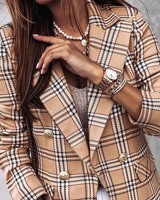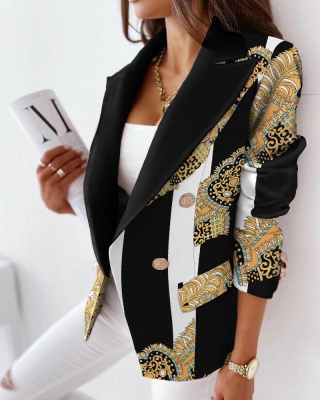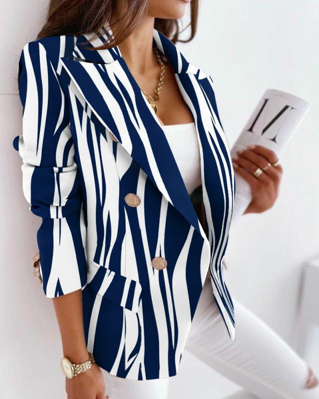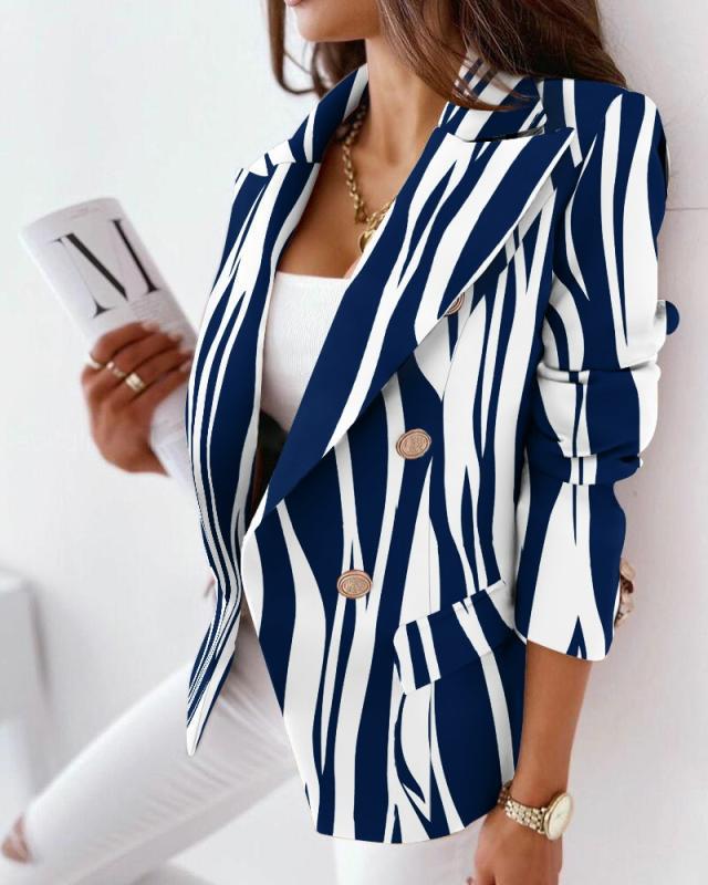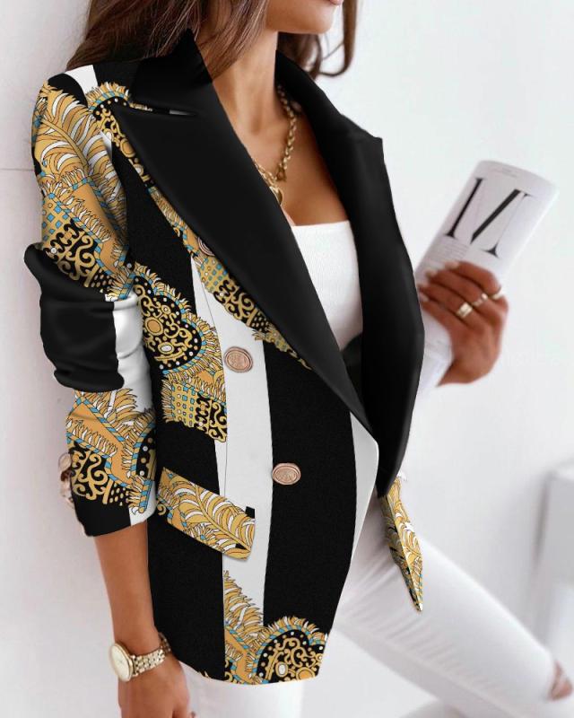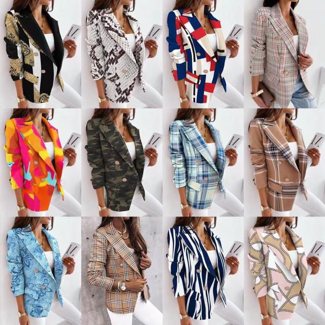 2023 estación independiente AliExpress otoño e invierno nuevo traje de moda estampado cruzado de manga larga abrigo pequeño ropa de mujer