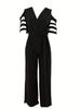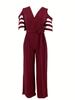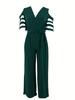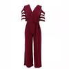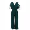 Nuevo mono transfronterizo europeo y americano de moda informal sexy con escote en V y hombros descubiertos, color sólido, cintura alta, con cordones para mujer