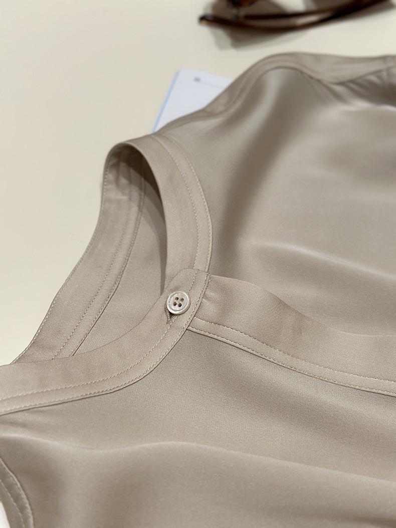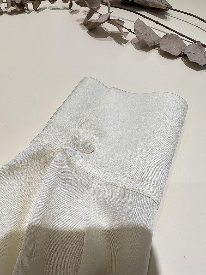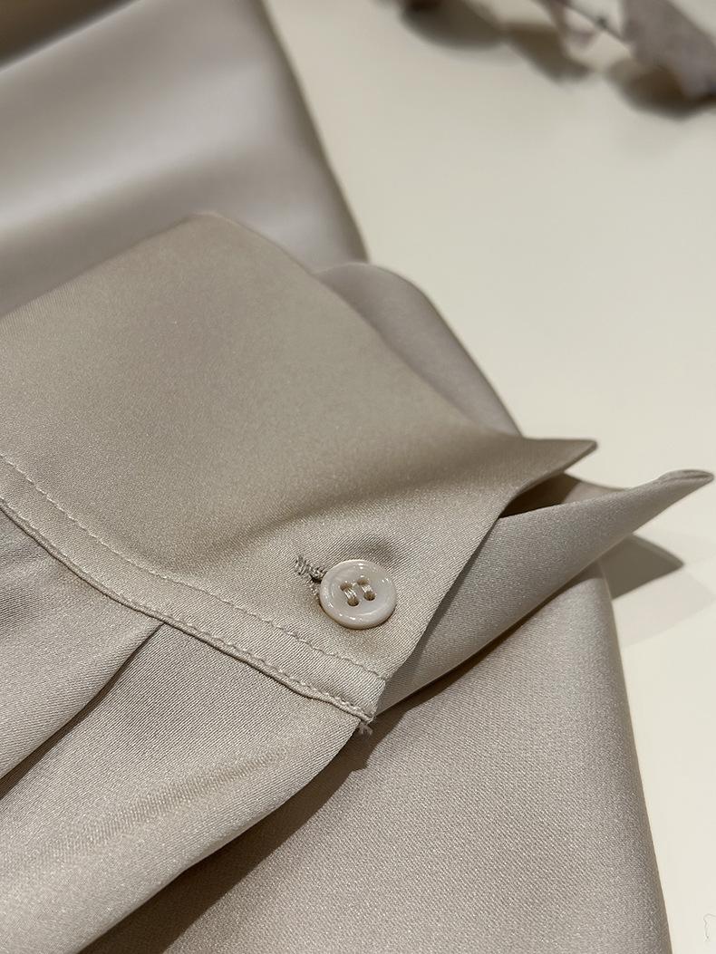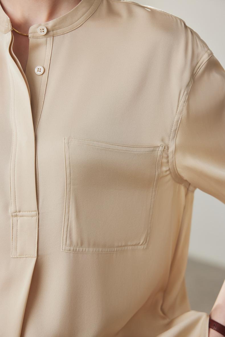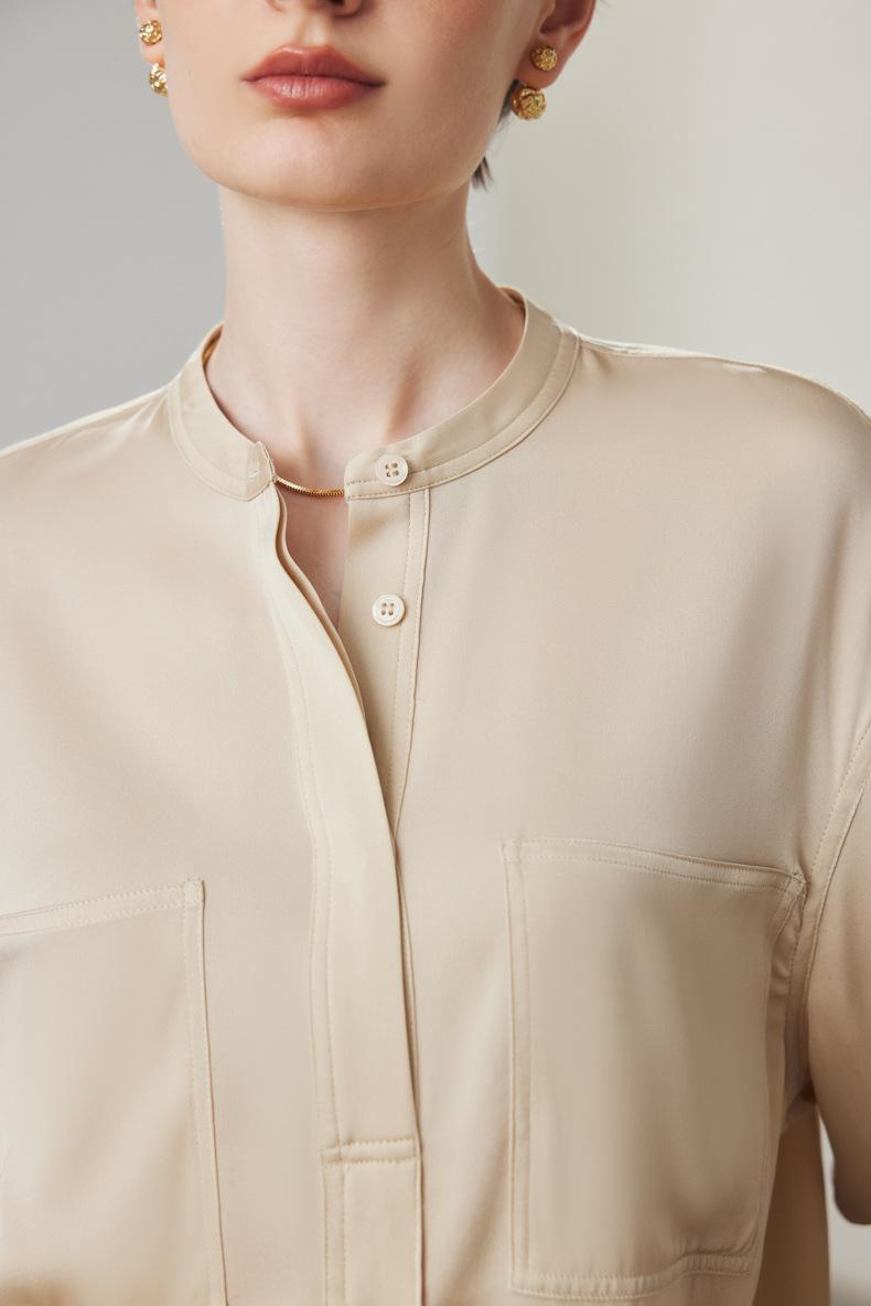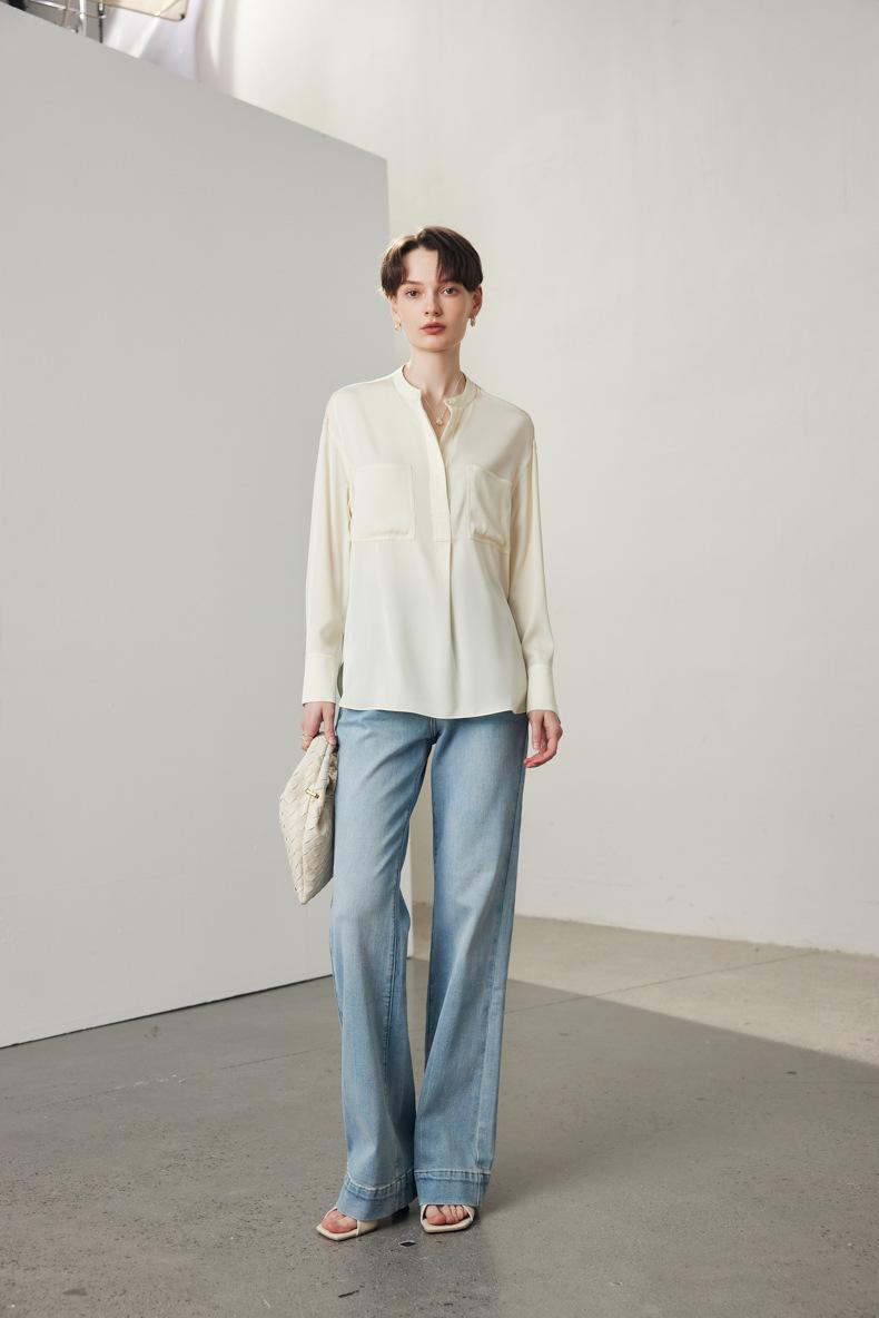 Camisa de Seda para Mujer 2025 Primavera y Verano Nueva Versión Amplia Suelta Color Puro Cuello Mao Manga Larga Commuter Top de Seda de Morera