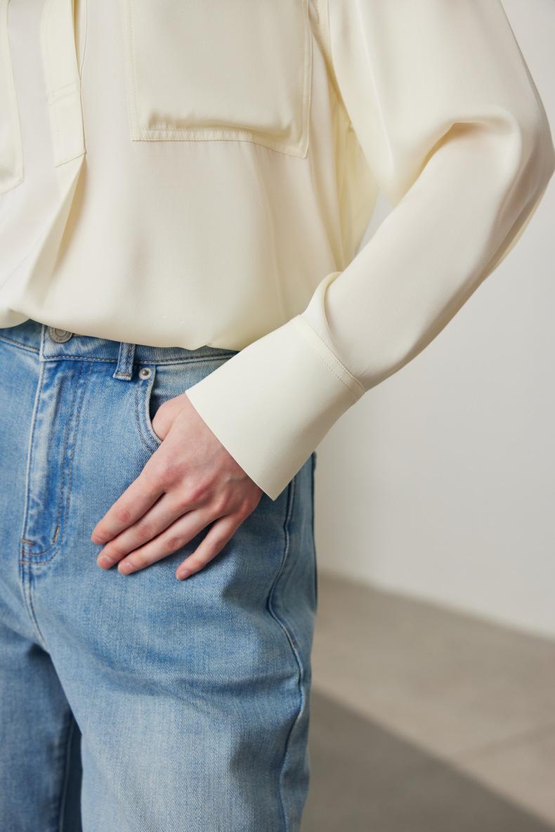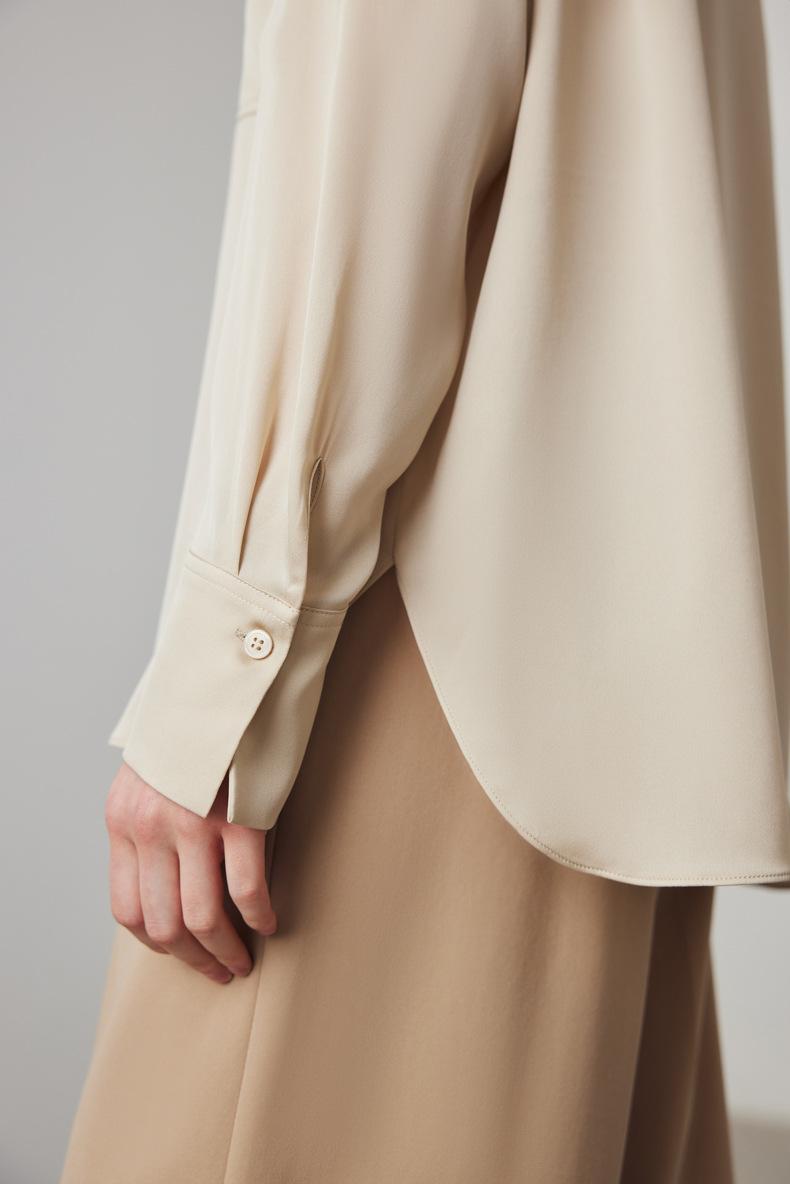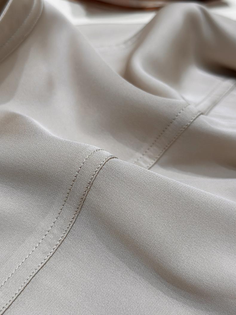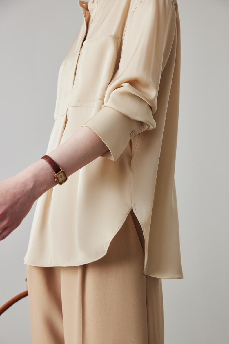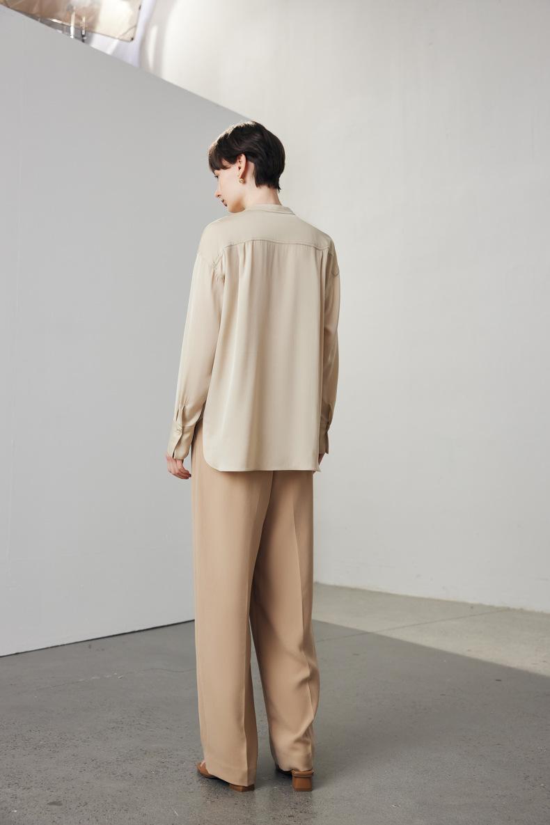 Camisa de Seda para Mujer 2025 Primavera y Verano Nueva Versión Amplia Suelta Color Puro Cuello Mao Manga Larga Commuter Top de Seda de Morera