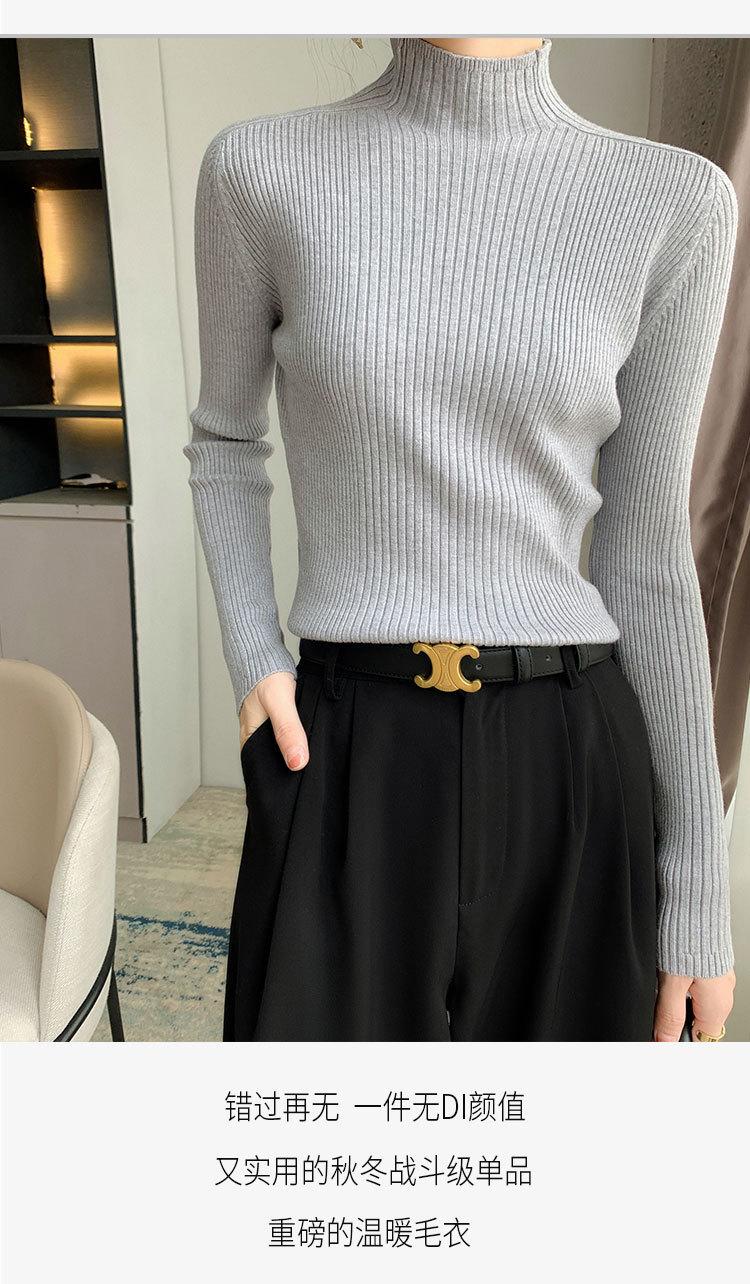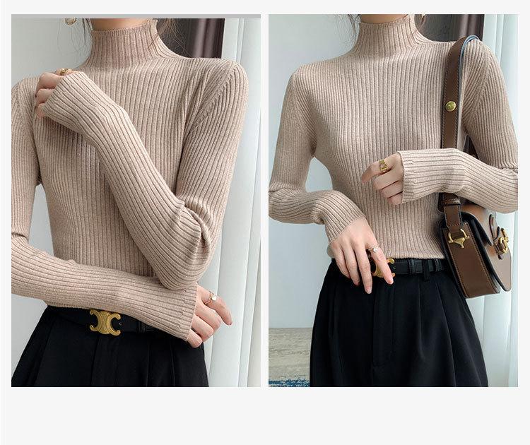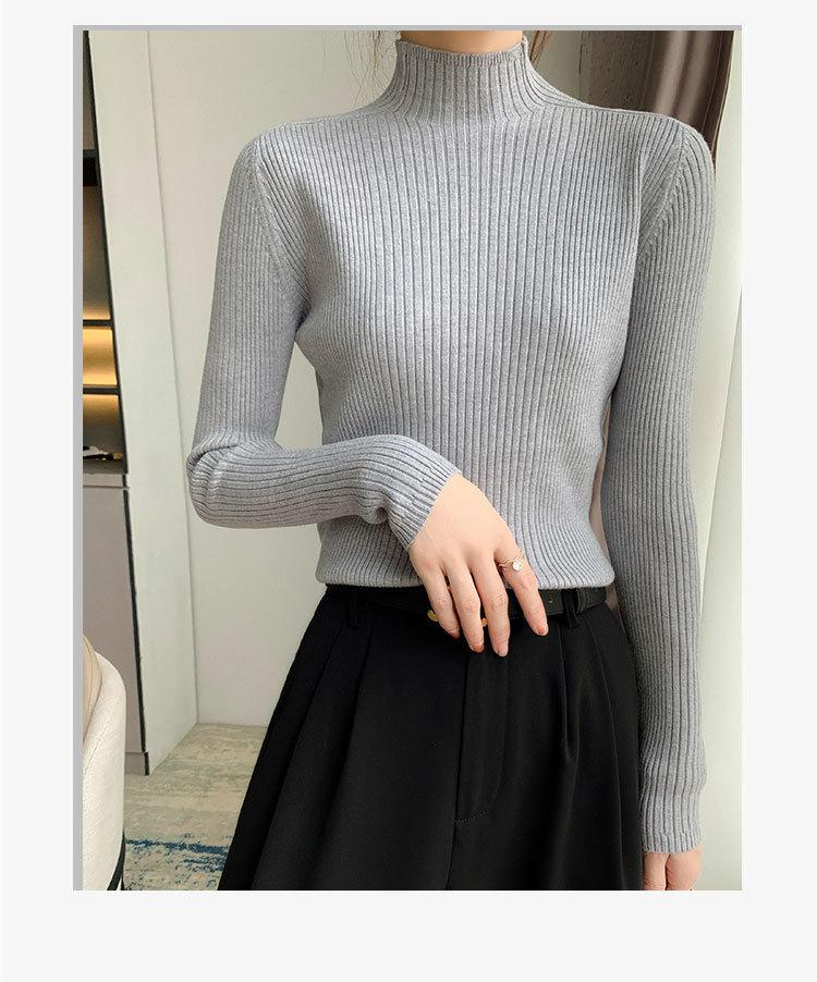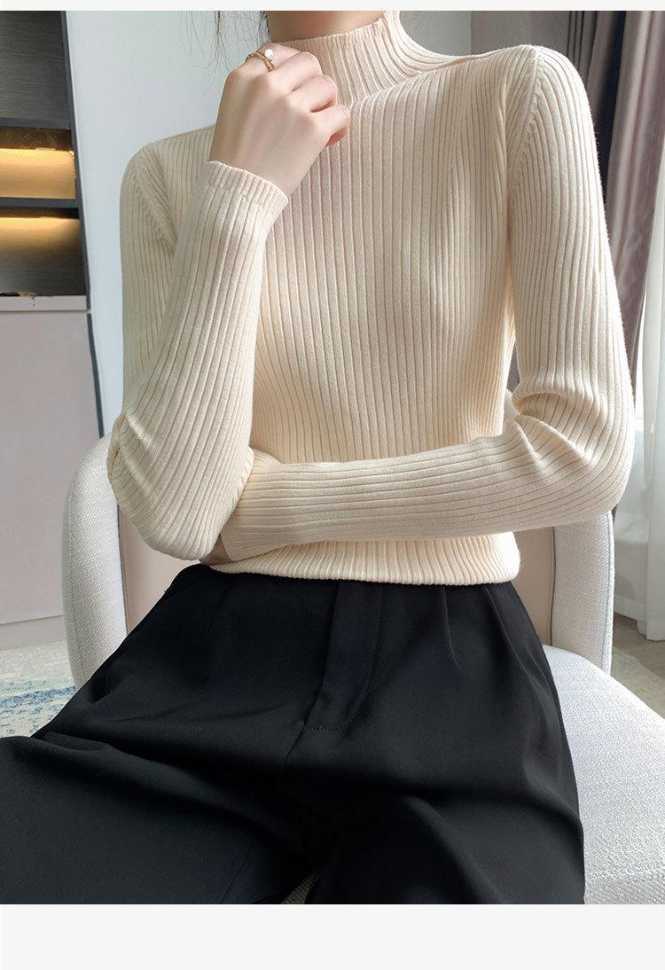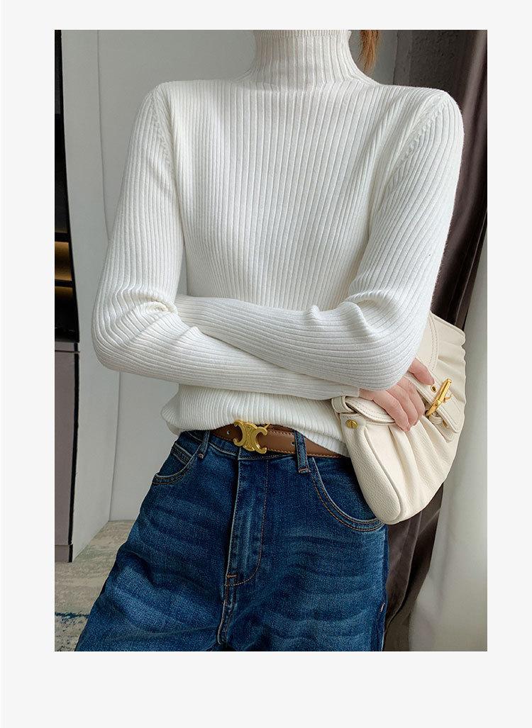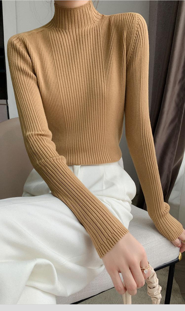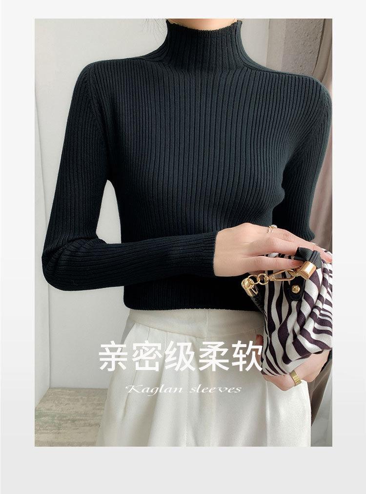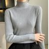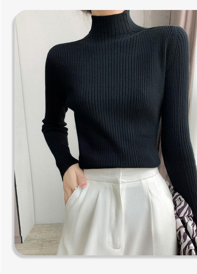 2023 Otoño/Invierno Nuevo Camiseta Base de Punto Acanalado de Cuello Medio Alto Casual Versátil Ajuste Delgado Suéter de Alta Elasticidad