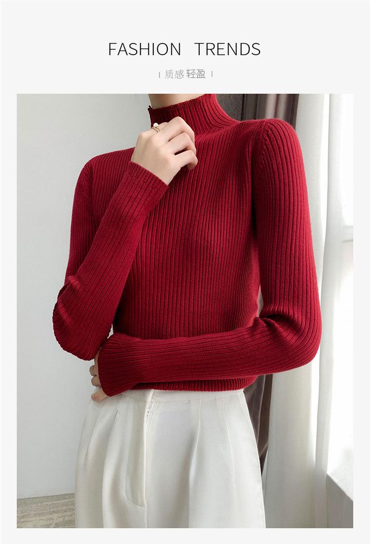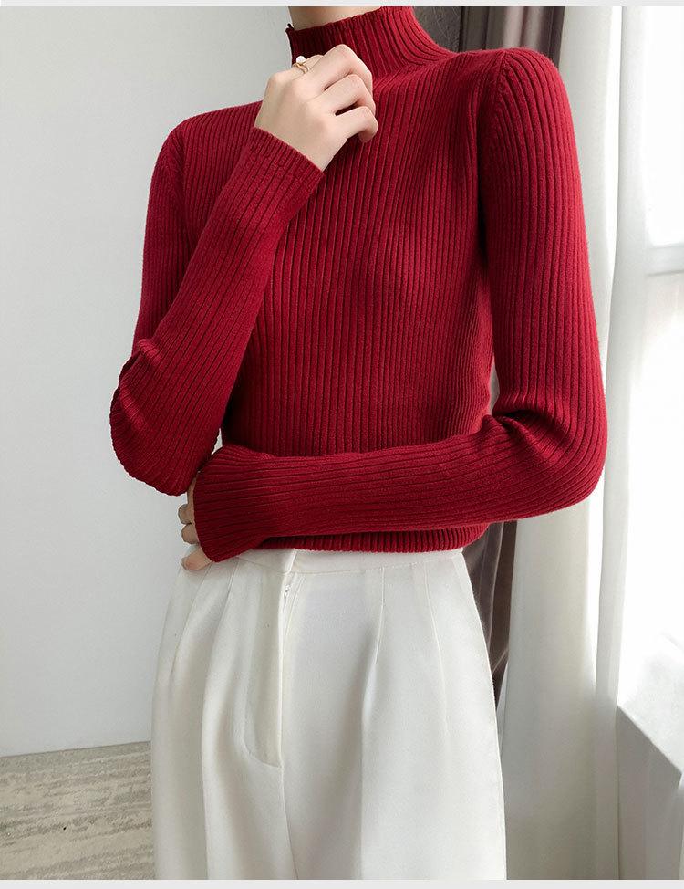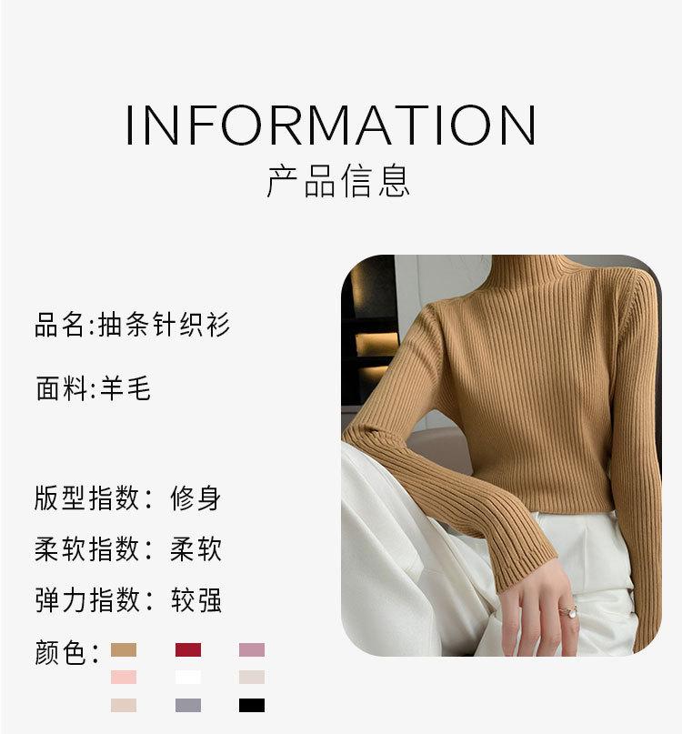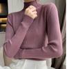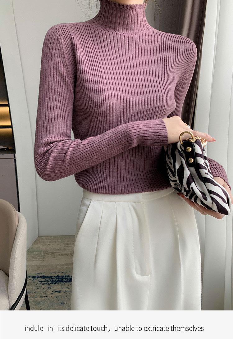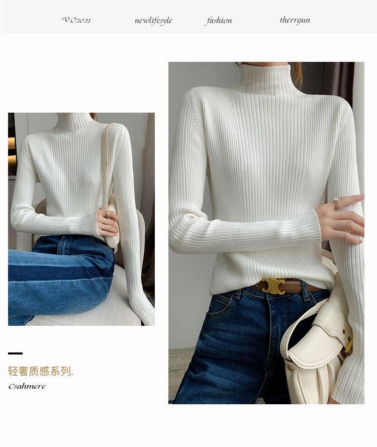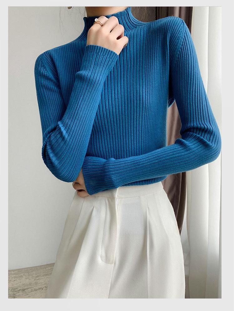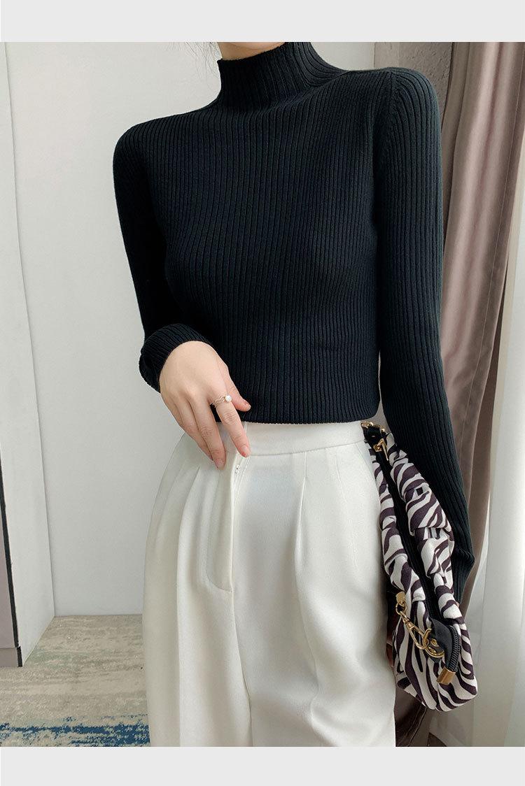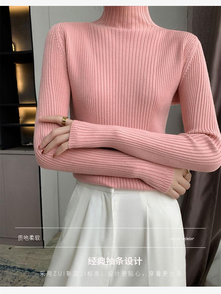 2023 Otoño/Invierno Nuevo Camiseta Base de Punto Acanalado de Cuello Medio Alto Casual Versátil Ajuste Delgado Suéter de Alta Elasticidad