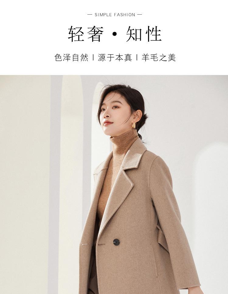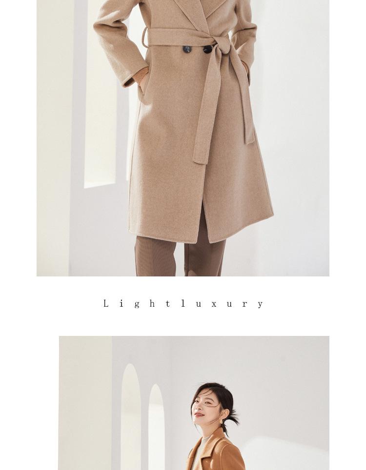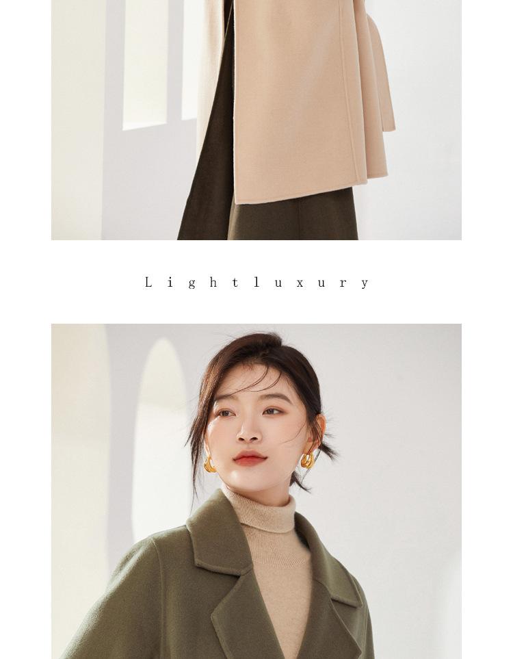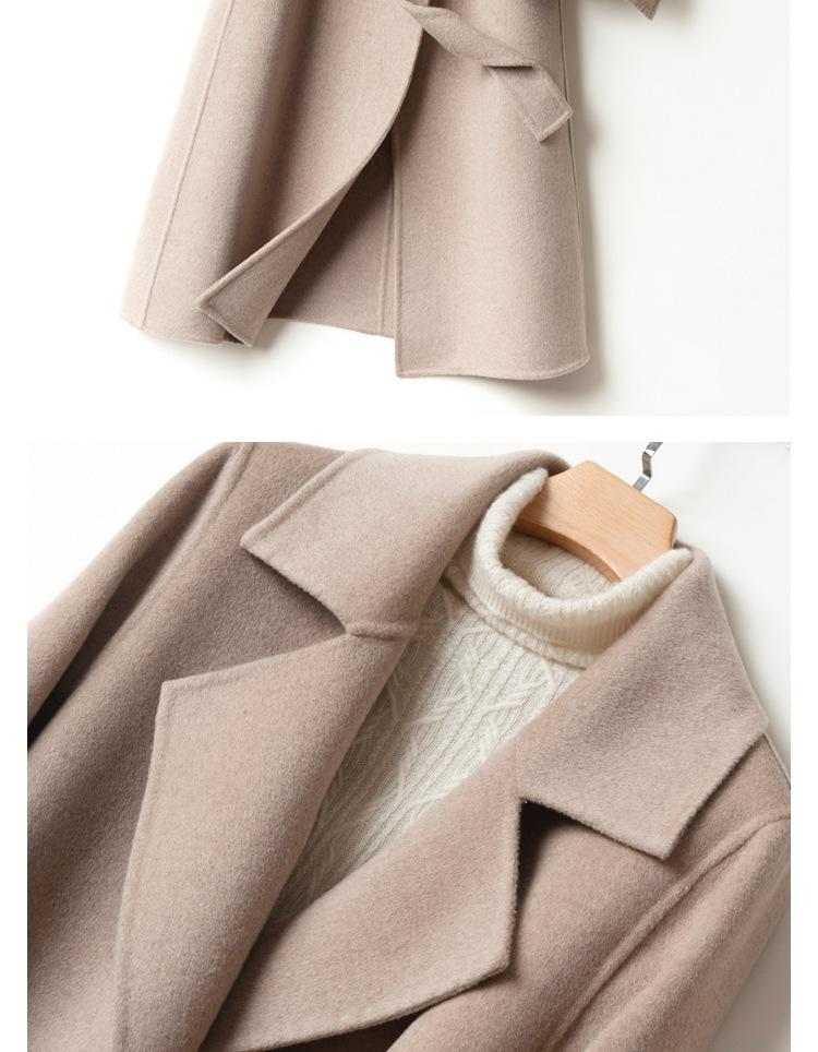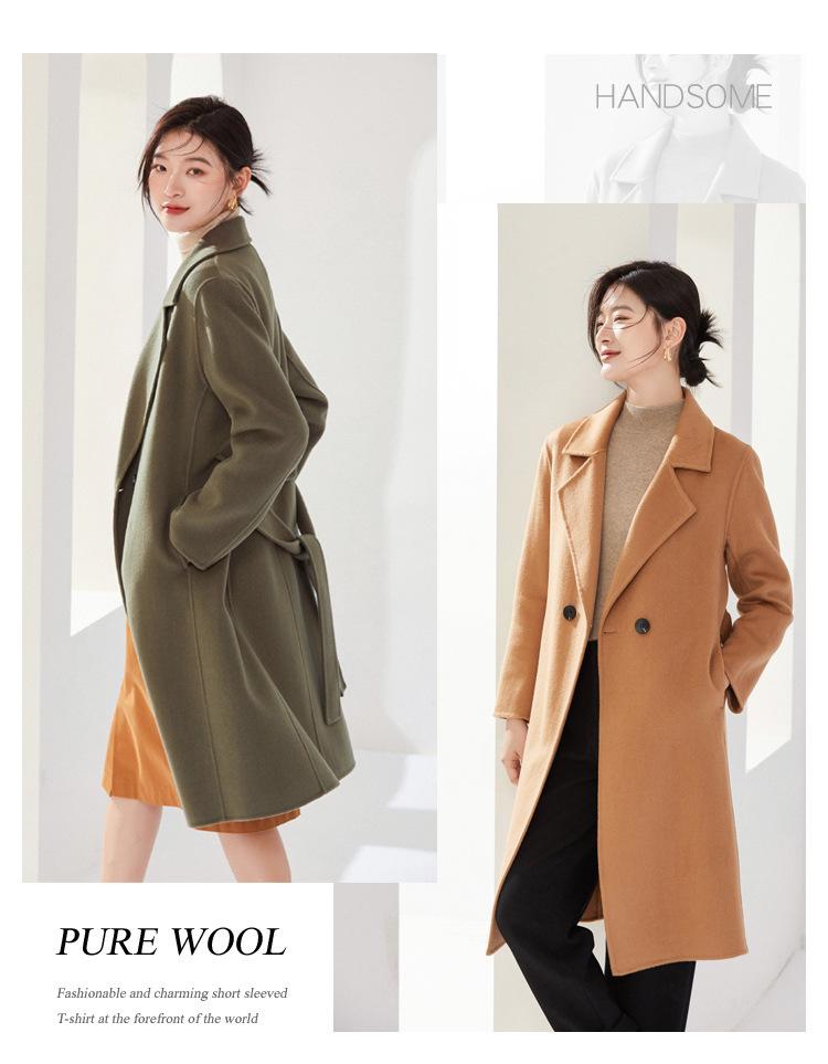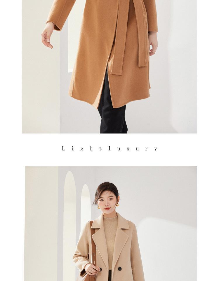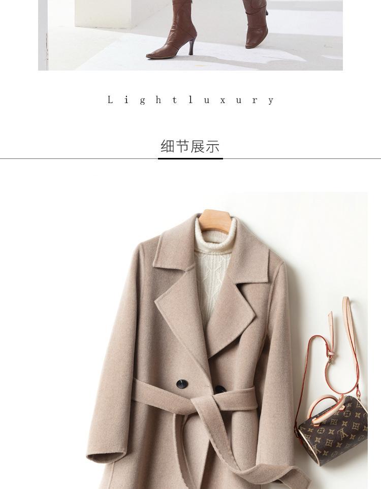 Abrigo de Lana de Doble Vista de Largo Medio para Mujer 2024 Otoño e Invierno Nuevo Estilo Cortavientos Elegante Abrigo de Lana con Cinturón