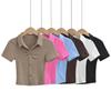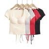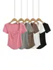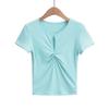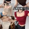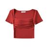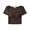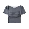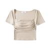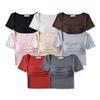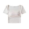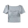 Camiseta plisada de manga corta para mujer con almohadilla en el pecho y cuello cuadrado, novedad de verano 2024, top corto ajustado de Spice Girl francesa.