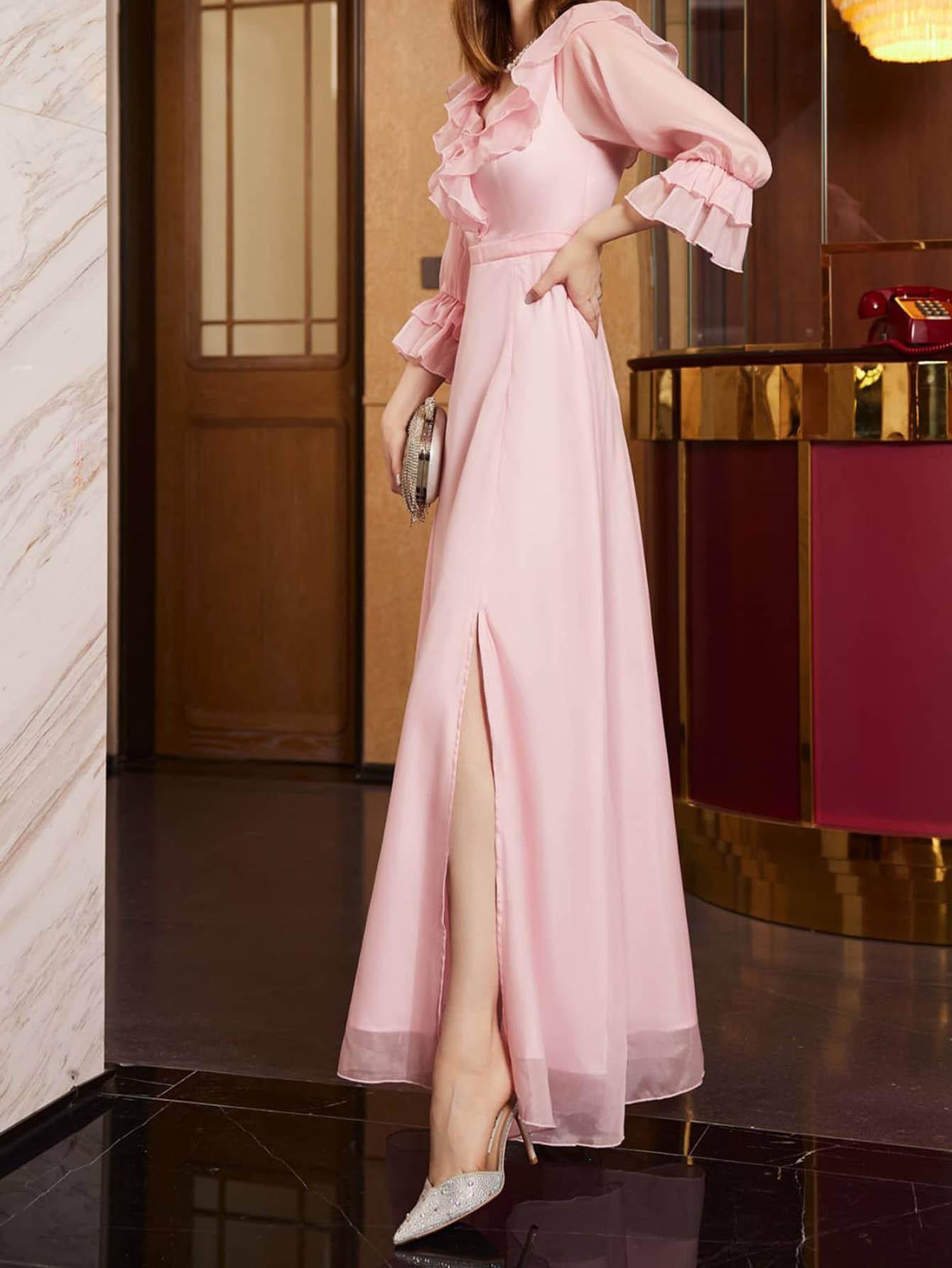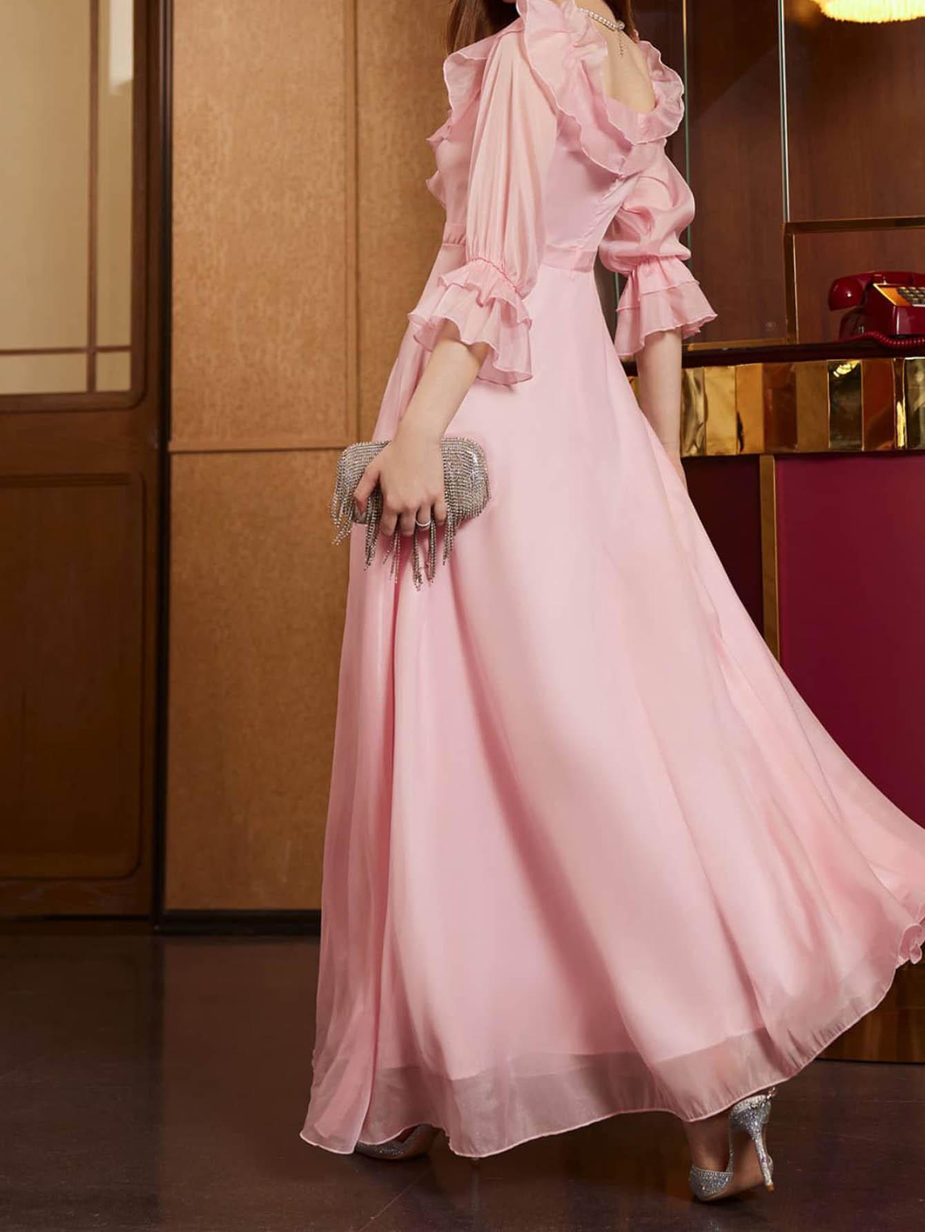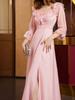 Vestido nuevo de mujer de comercio exterior europeo y americano, vestido sexy de Amazon con media manga, vestido largo rosa, vestido de fiesta.