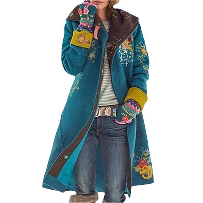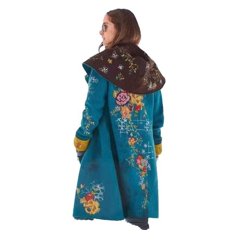 2025 otoño e invierno nuevo ropa de mujer de comercio exterior transfronterizo europeo y americano Amazon abrigo largo estampado abrigo de paño de lana de manga larga