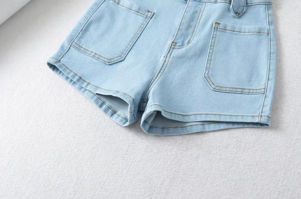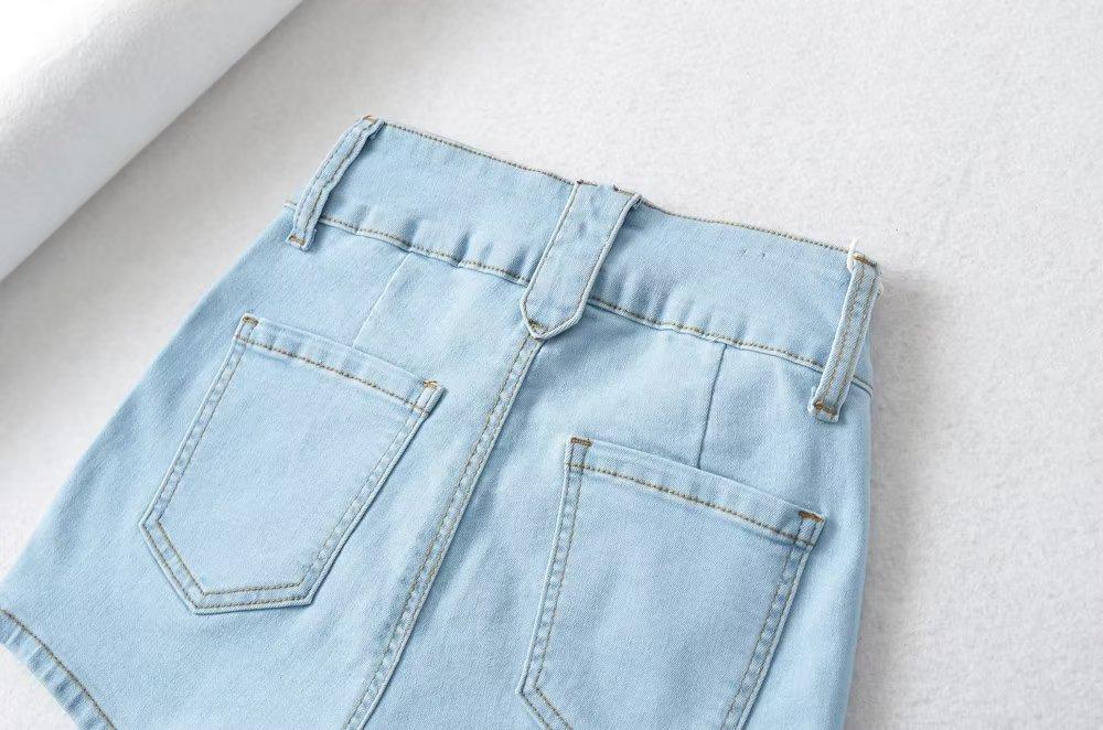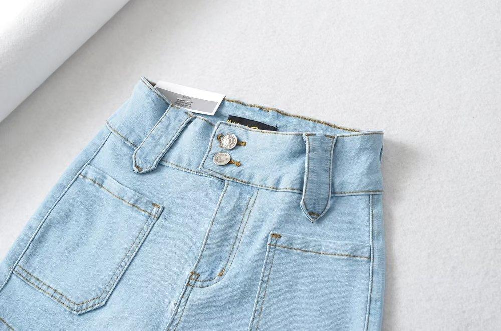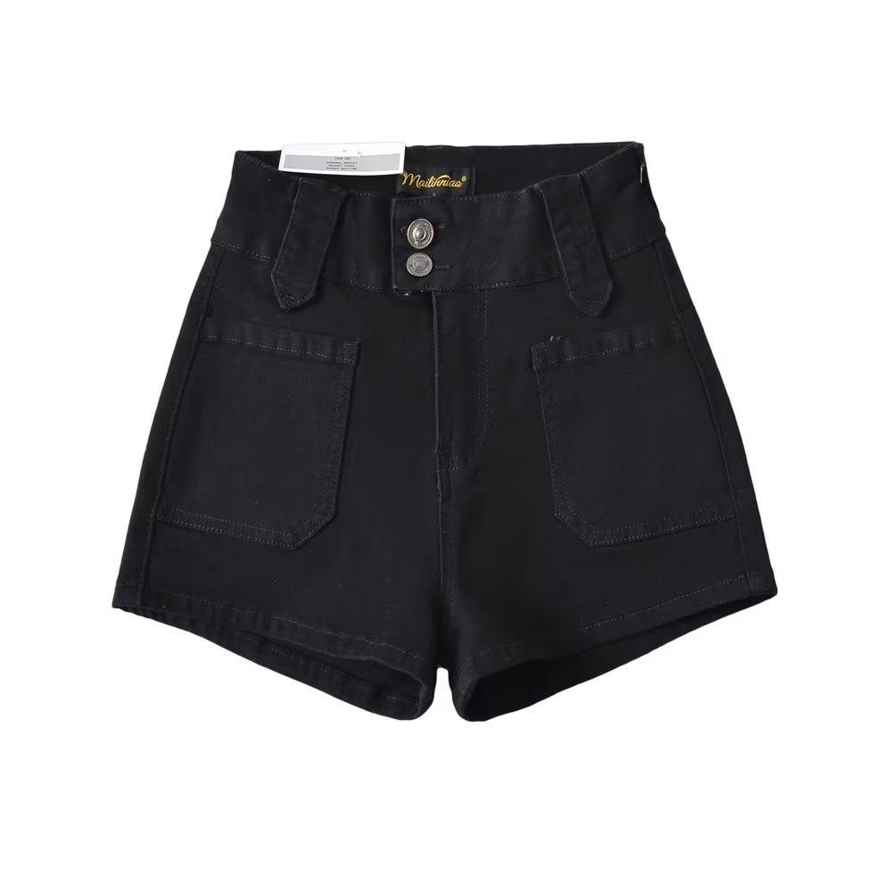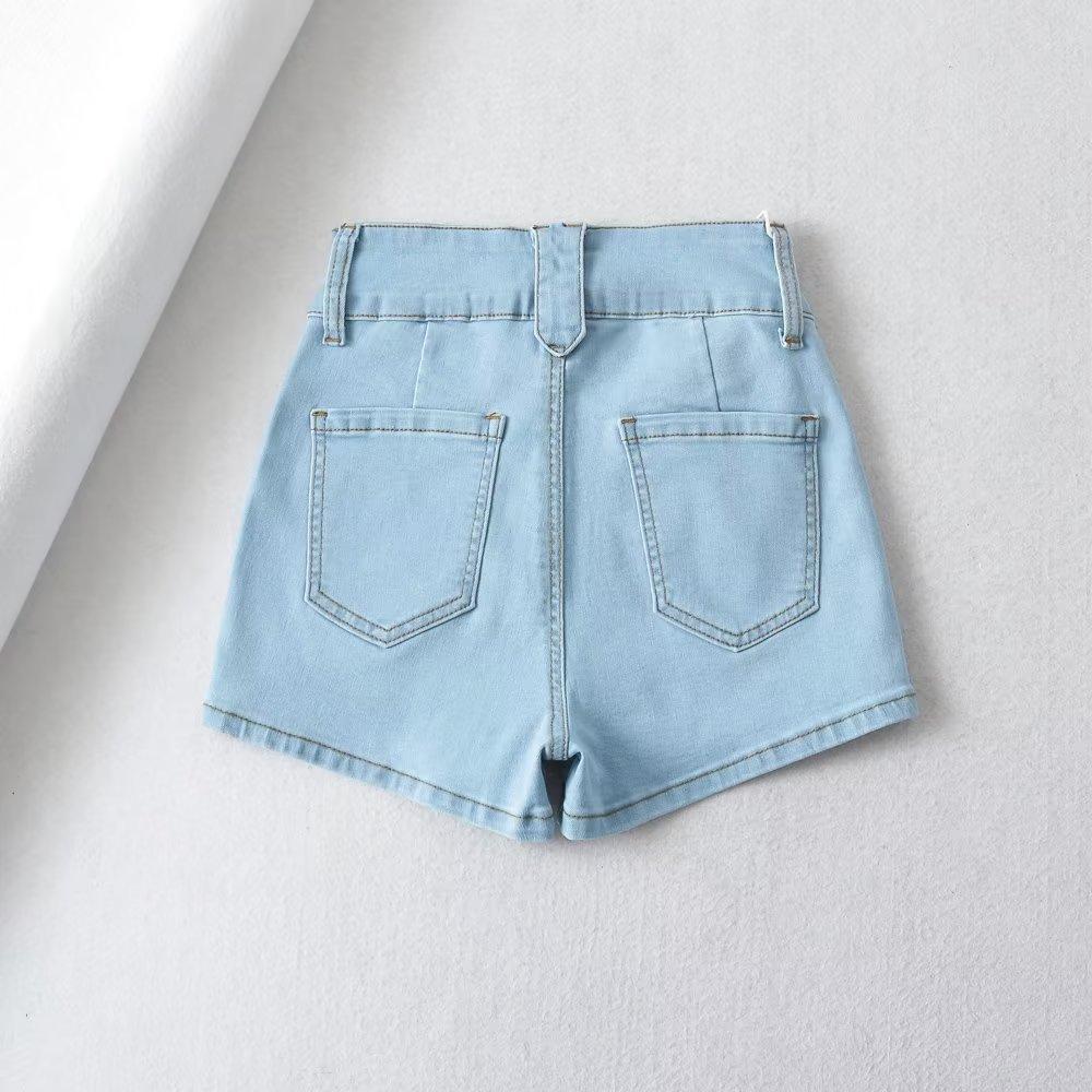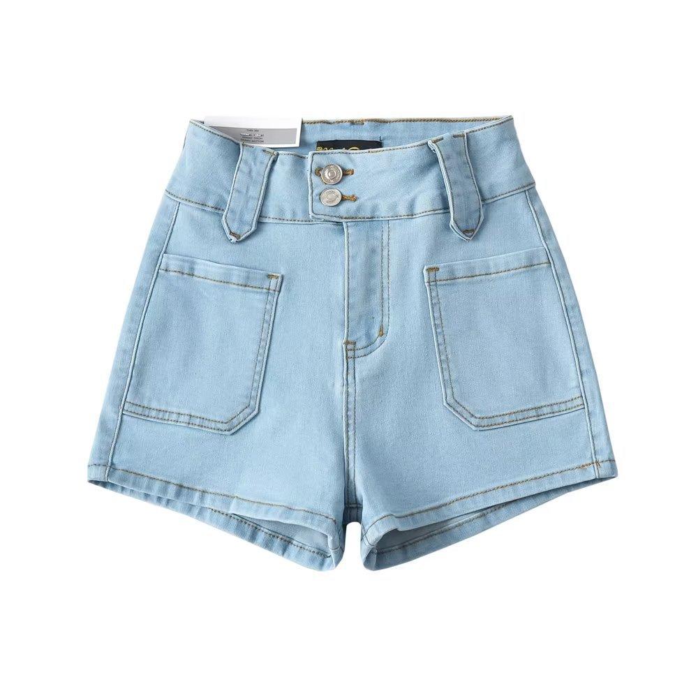 Pantalones cortos vaqueros elásticos de cintura alta para mujer, sexys, de verano 2023, estilo europeo y americano, con doble bolsillo en la cadera.
