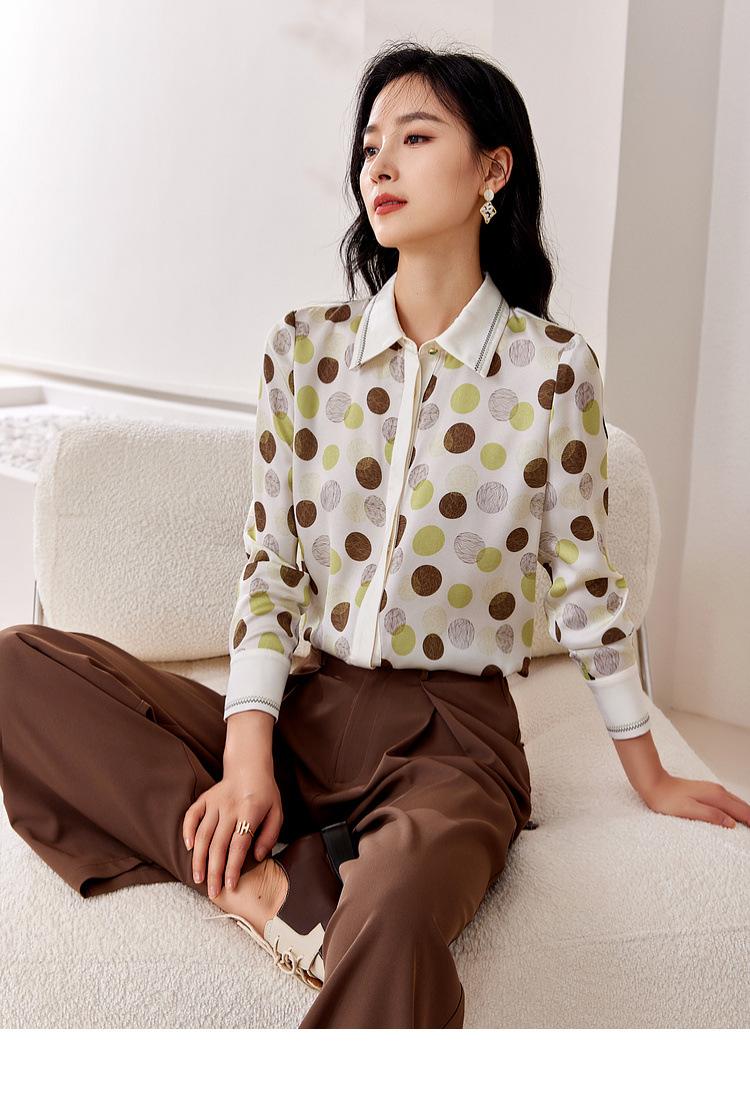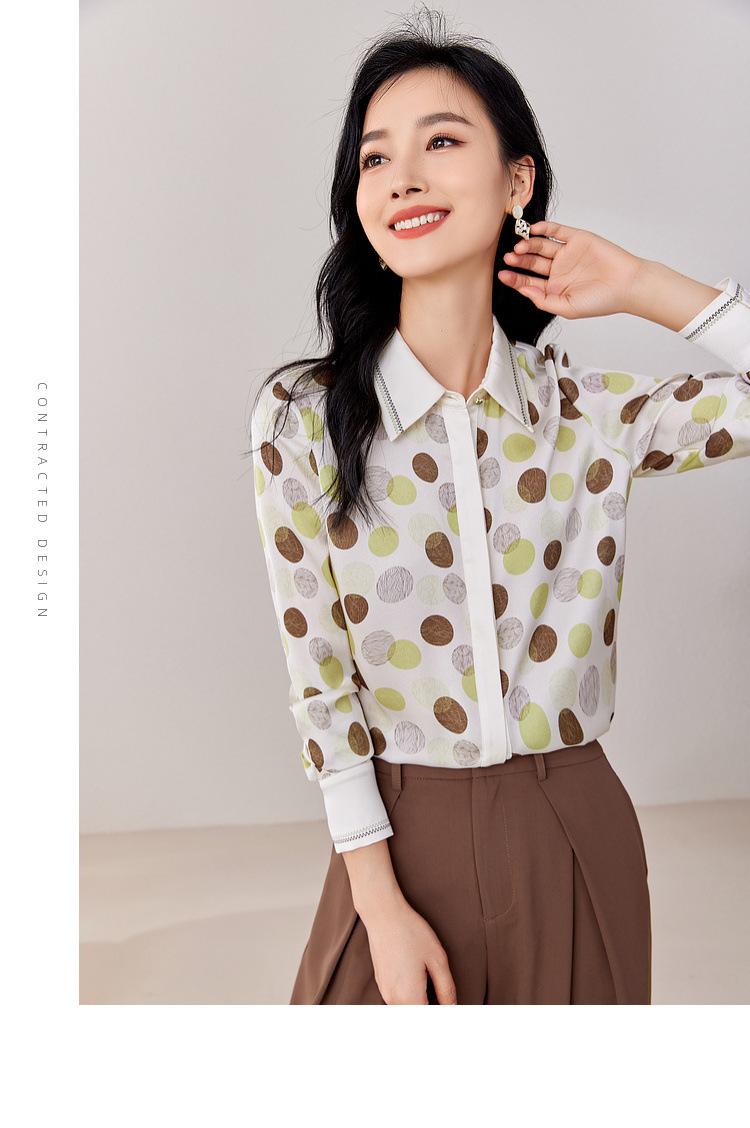 Camisa Zhenqi de nueva moda con solapa bordada y lunares para mujer, camisa recta de manga larga, top de nicho SK567