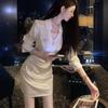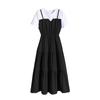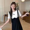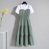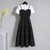 Procesando Moda Verano 2025 Tirantes Falso Dos Piezas Falda Larga Hermana Gorda Cintura Adelgazante Look Vestido de Manga Corta para Mujer