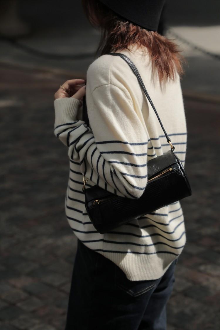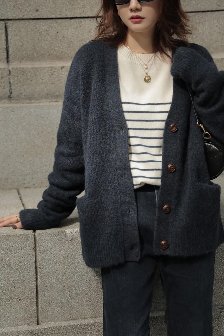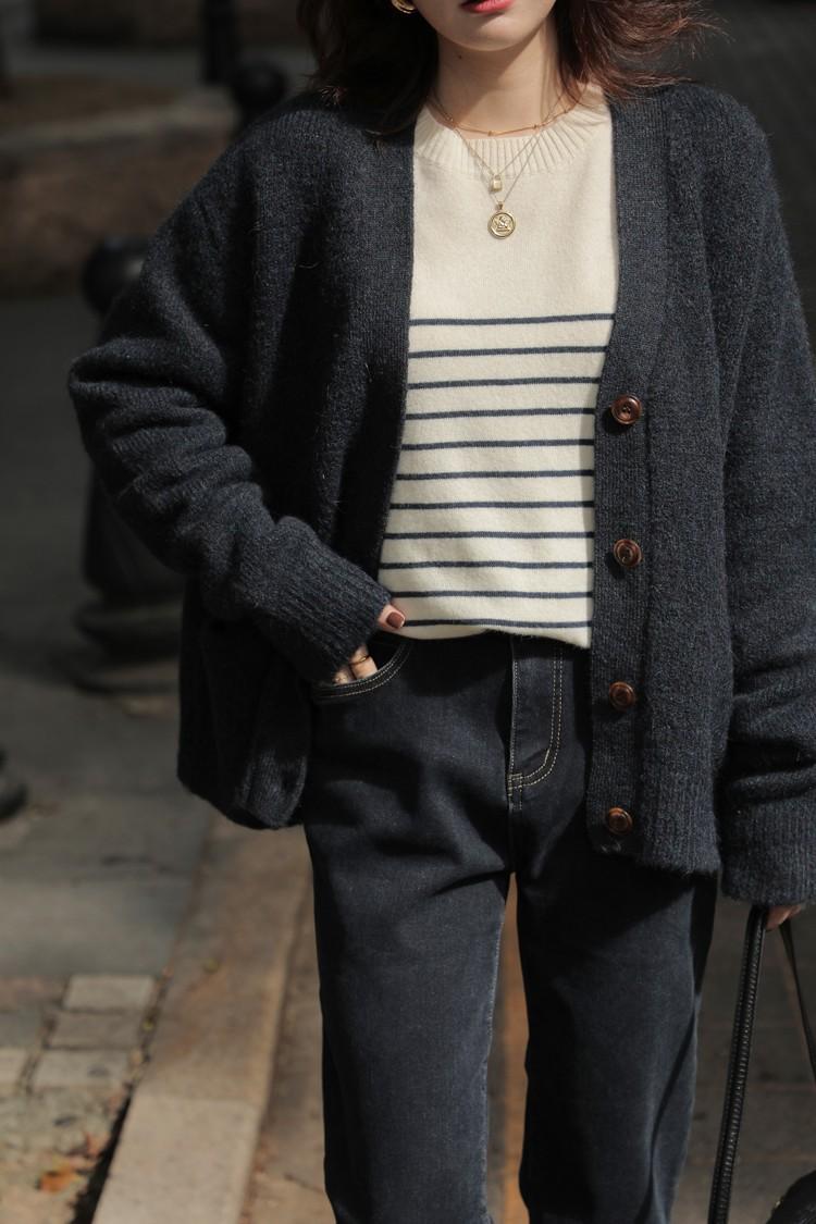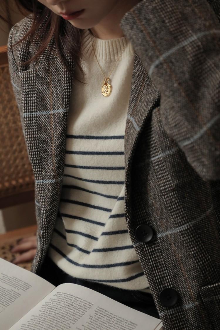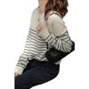 2025 Nuevo Otoño e Invierno Tejido de Punto de Lana Pura para Mujer Estilo Coreano Cuello Redondo Rayado Jersey Tejido de Punto Suelto Tejido de Punto de Cachemira Base