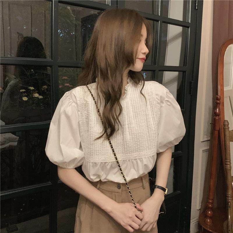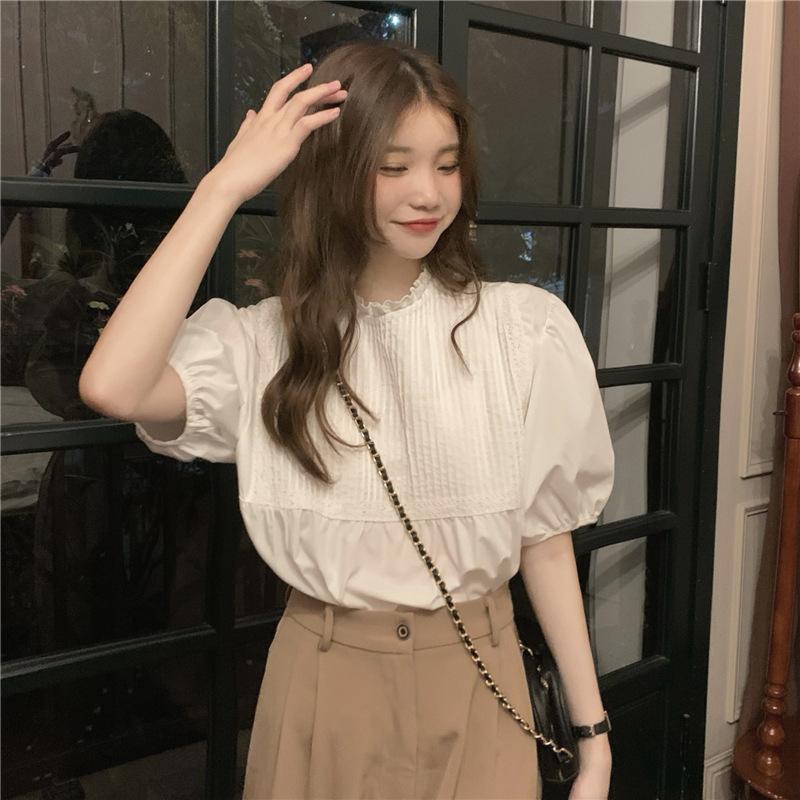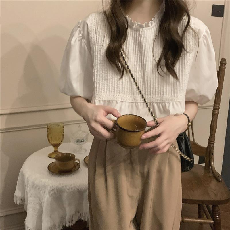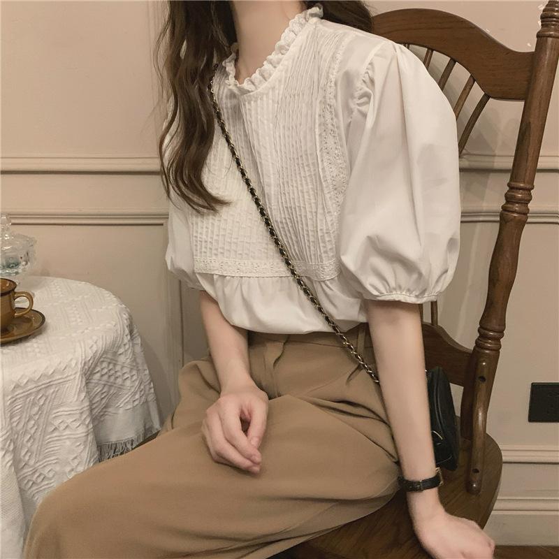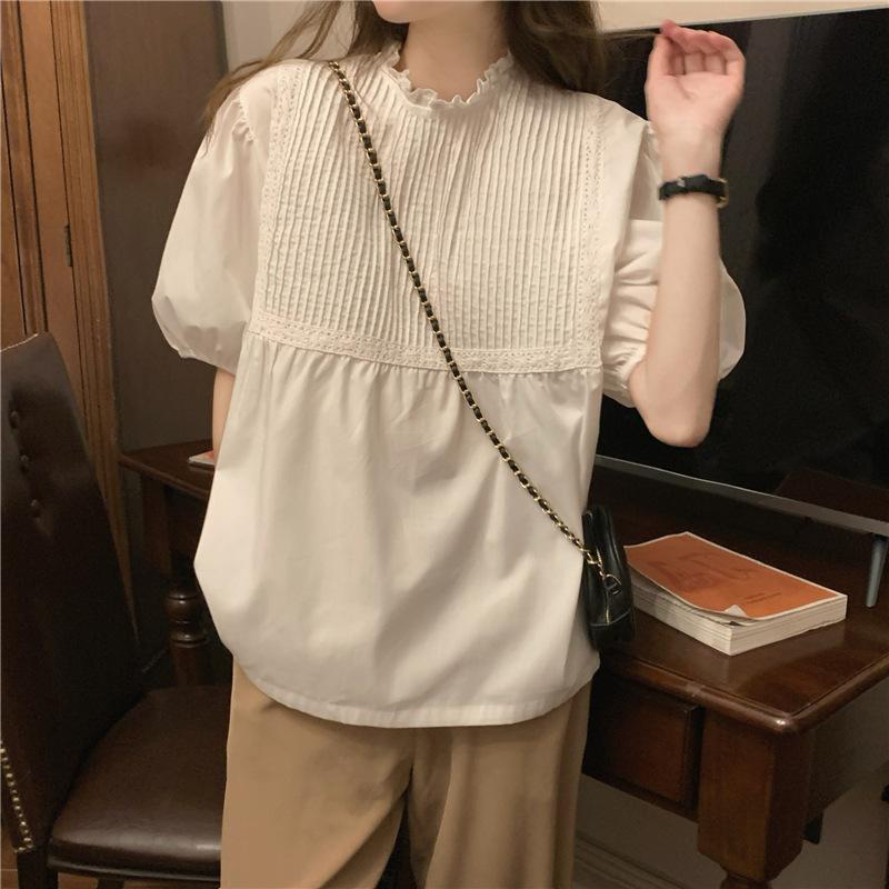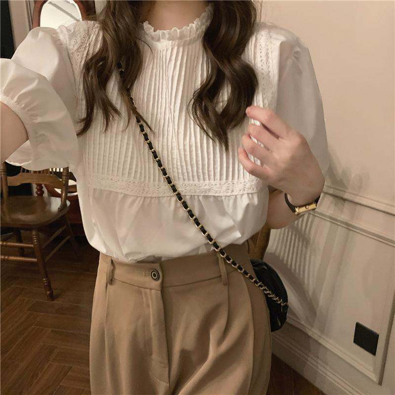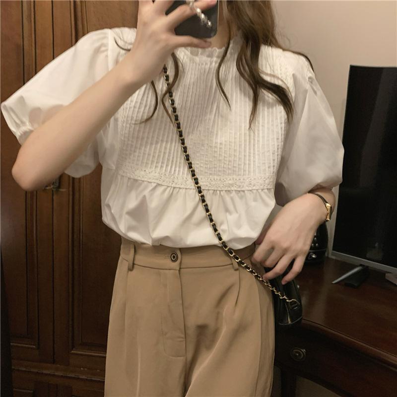 Pequeños pliegues tridimensionales y pequeñas tiras de encaje en el pecho