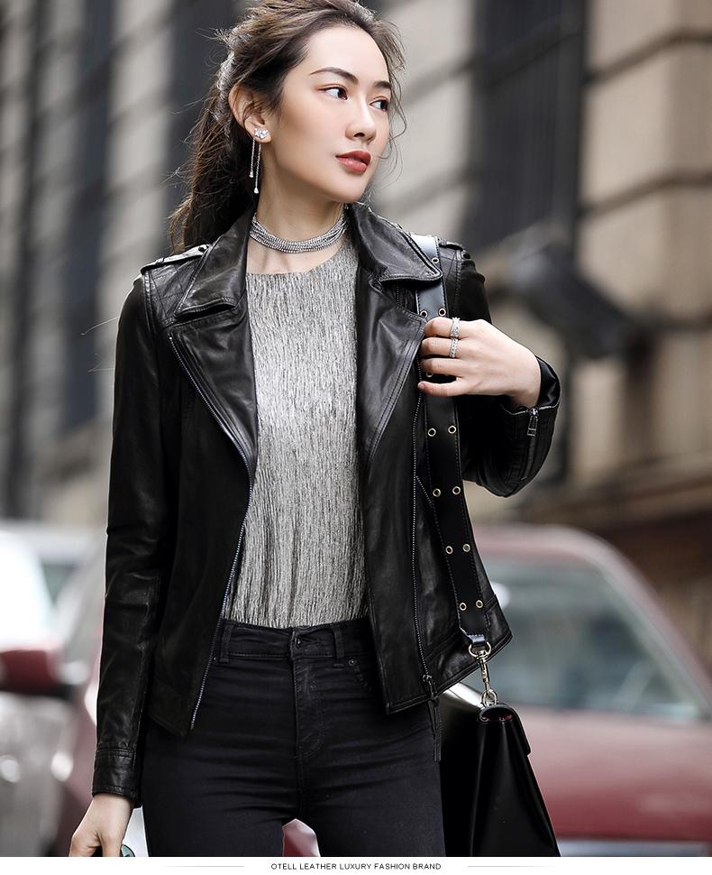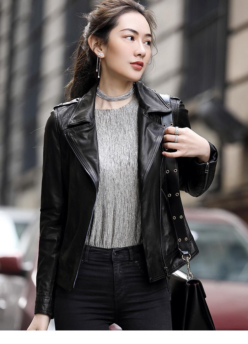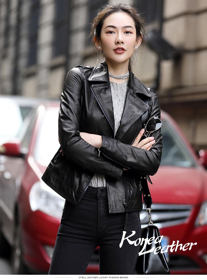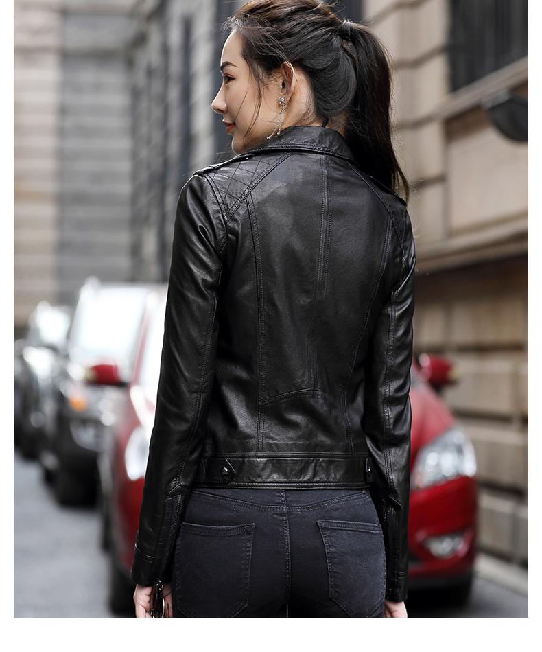 Nuevo abrigo de piel auténtica Haining para primavera y otoño para mujer, chaqueta de piel de oveja de corte entallado para motocicleta, chaqueta de piel corta para mujer