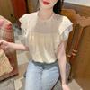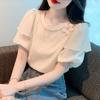 Camisa de gasa con cuello redondo y mangas abullonadas de Design Sense Niche para mujer, elegante, de verano 2022, que cubre el vientre.