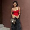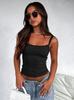 Camisola de Mujer 2025 Ropa Europea y Americana Verano Sexy Versátil Ajustada Corta Sexy Color Puro Camiseta Básica Transfronteriza